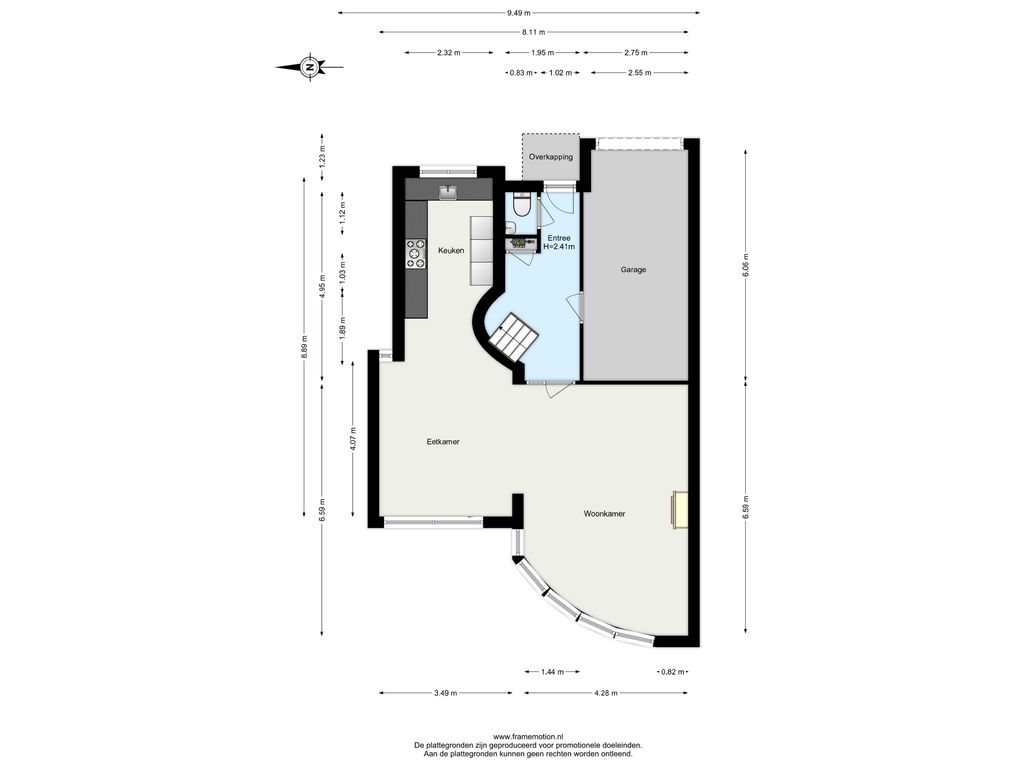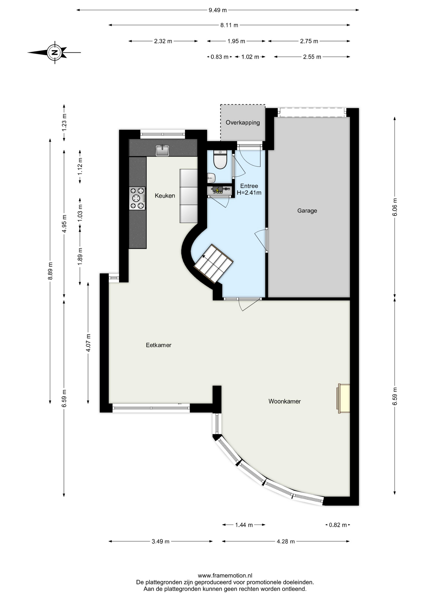 Bij binnenkomst valt direct de ruimte en het licht op. De royale hal biedt toegang tot de garage, het toilet en de woonkamer.