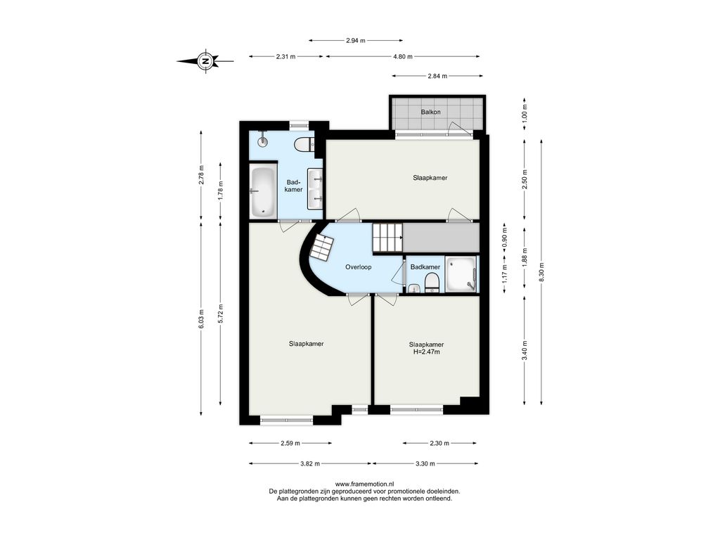 De overloop biedt toegang tot drie slaapkamers en de tweede badkamer.