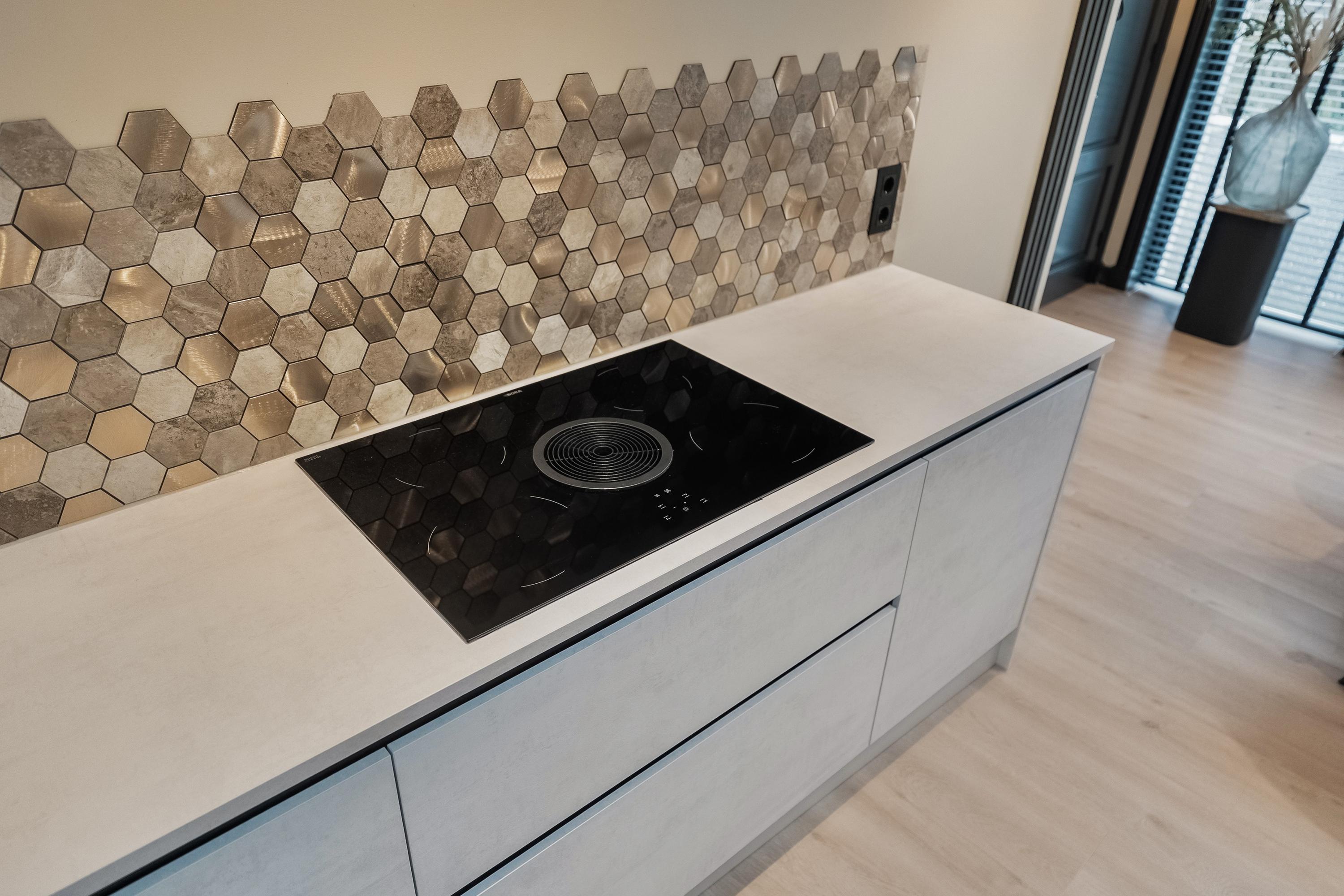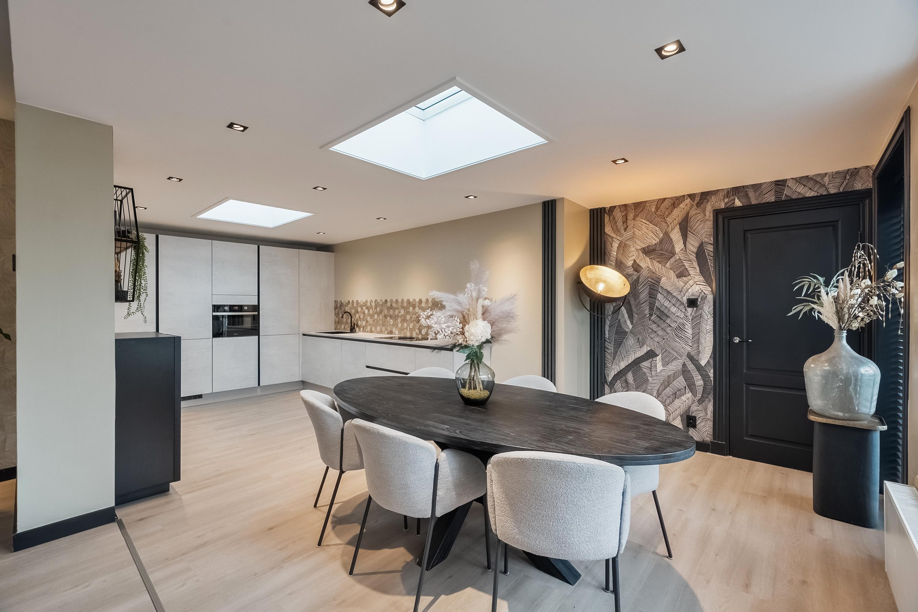 De keuken is in 2023 volledig vernieuwd en uitgevoerd in een moderne lichtgrijze hoekopstelling. Voorzien van twee koel-/vriescombinaties, vaatwasser, combi-oven en een Bora inductiekookplaat met geïntegreerde afzuiging. Inbouwspots in het plafond, twee dakramen (waarvan één elektrisch bedienbaar) en een sfeervolle erker met brede vensterbank maken dit een heerlijke leefruimte. Vanuit de keuken is de voorraadkast bereikbaar, waar zich ook de elektrameter bevindt.