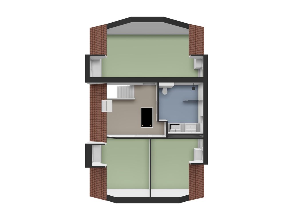 De ruime overloop geeft toegang tot alle vertrekken en is voorzien van een Velux dakraam, inbouwspotjes en een laminaatvloer. Via een vlizotrap is de bergvliering bereikbaar.
