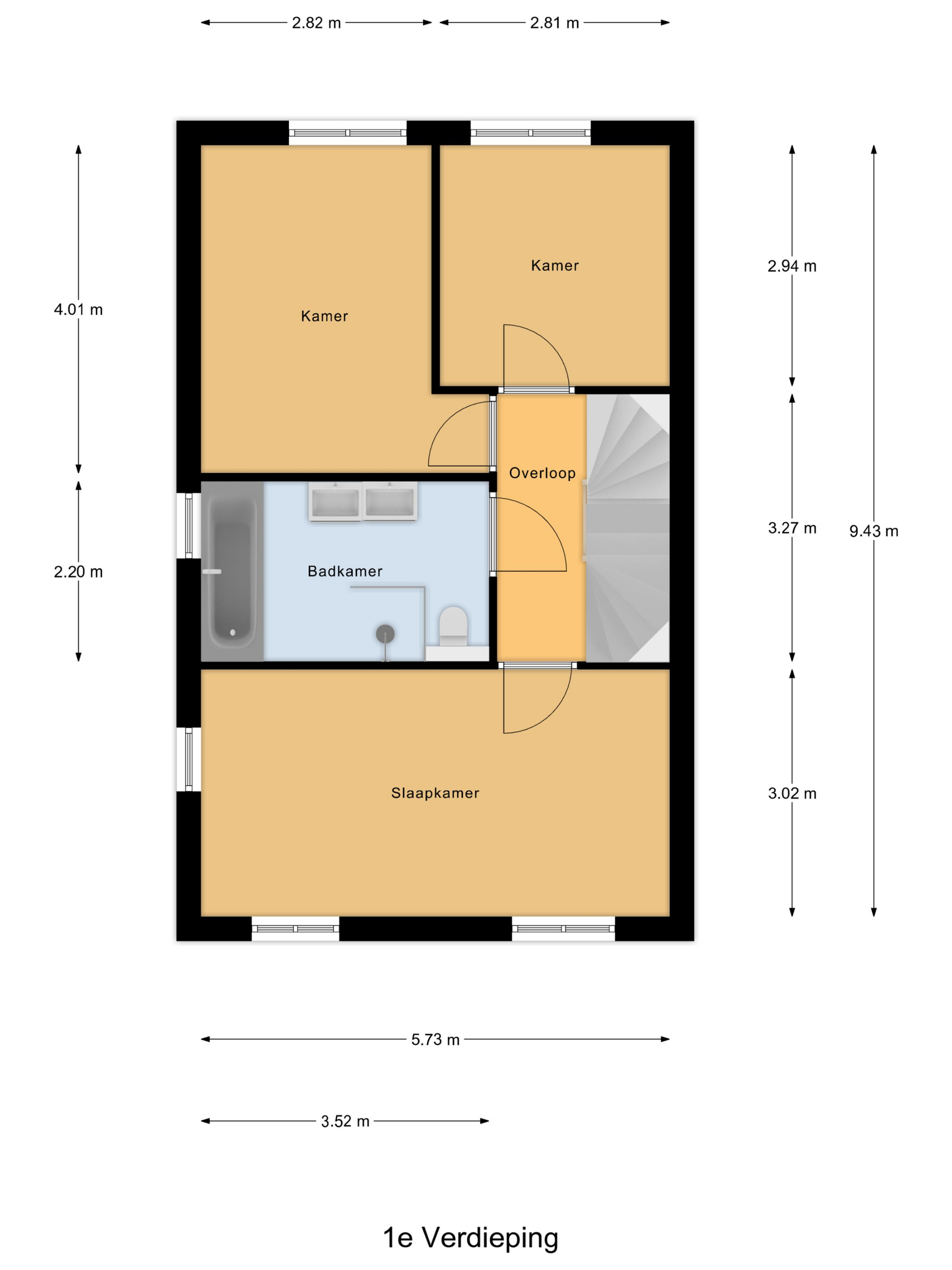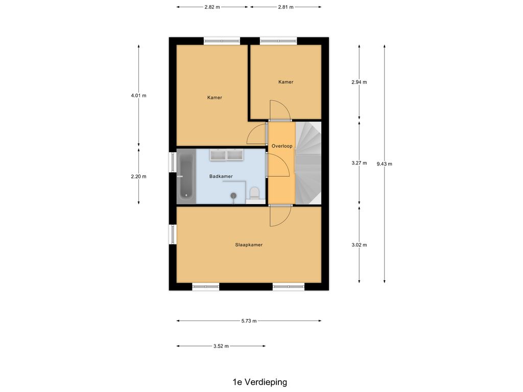 Op de eerste verdieping bevinden zich drie slaapkamers en een ruime badkamer.