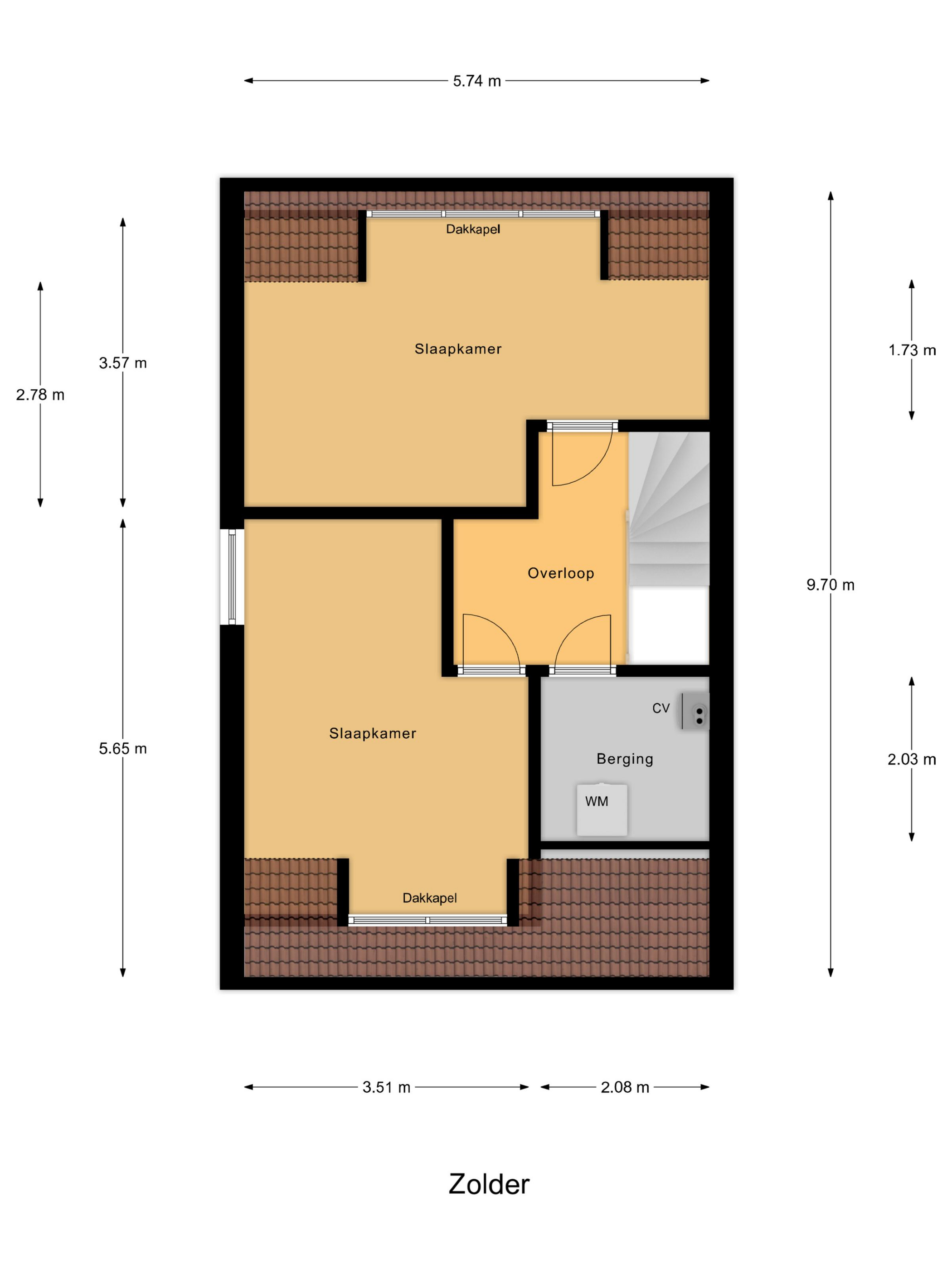 De zolderverdieping is verrassend ruim en slim ingedeeld. Hier vindt u nog twee slaapkamers, beide voorzien van dakkapel en een prettige lichtinval. Beide kamers fungeren uitstekend als tienerkamer, thuiskantoor of als logeerkamer.