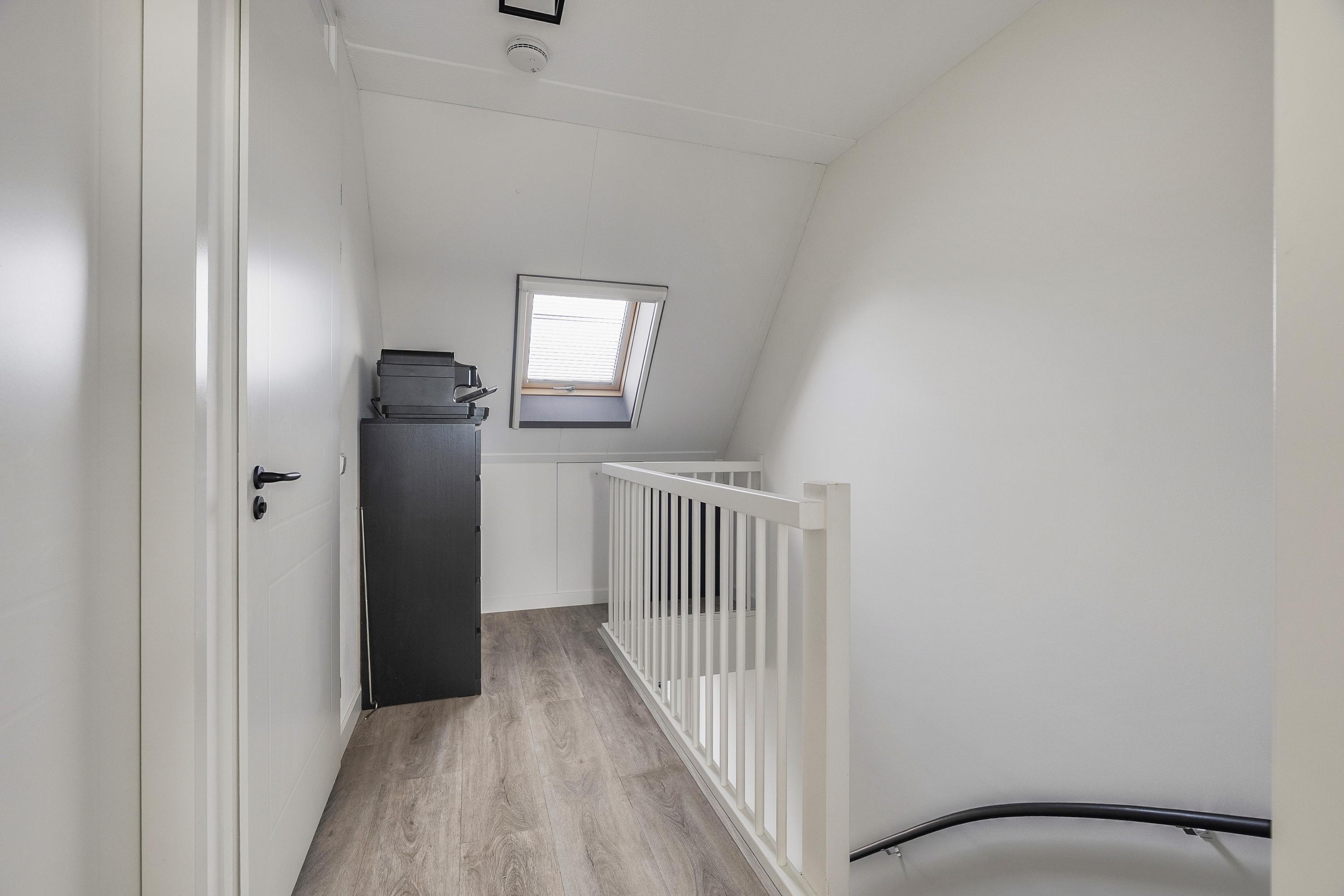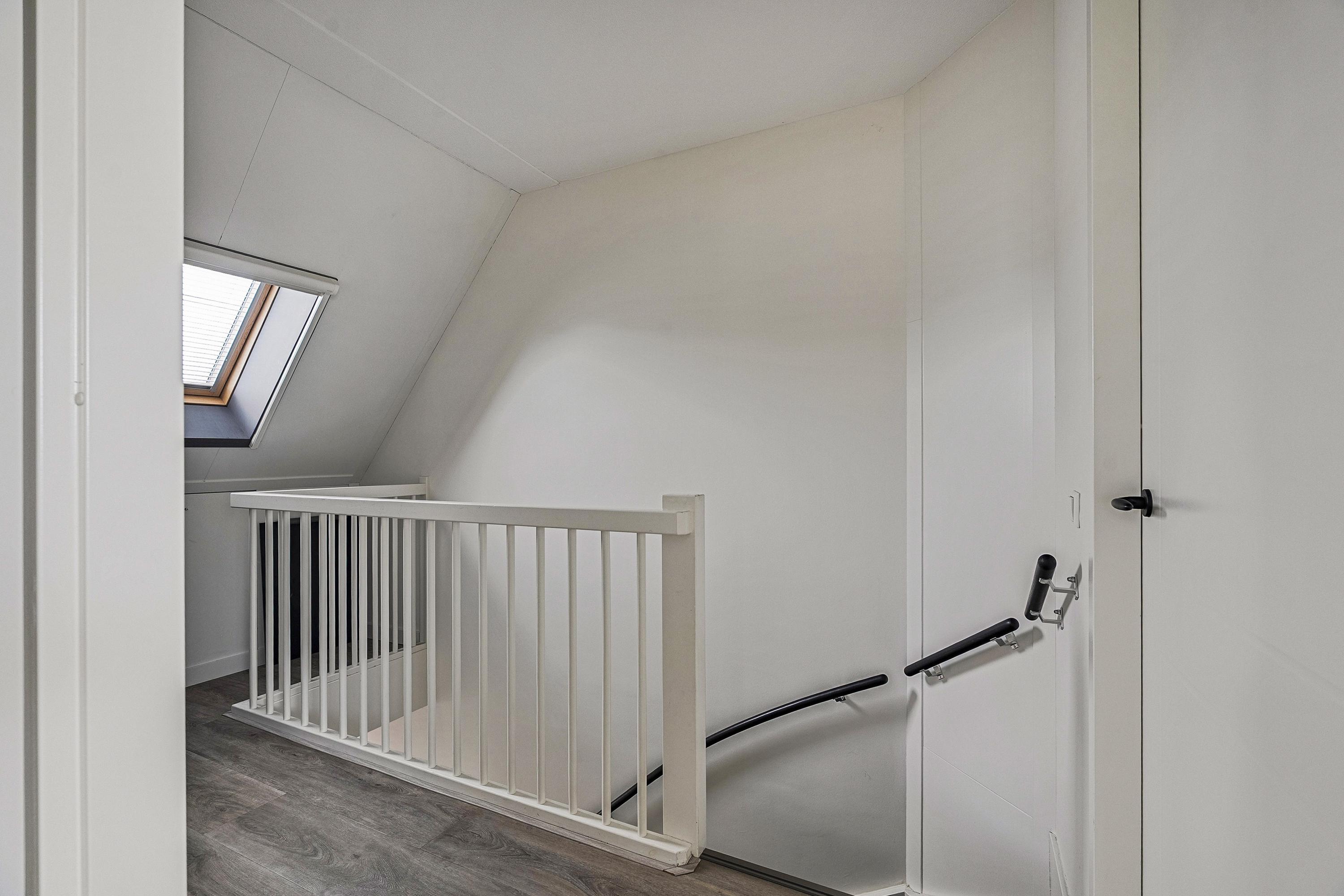 Overloop met toegang tot alle vertrekken, bergruimte achter het knieschot en een dakraam met hor en luxaflex. Via een vlizotrap heeft u toegang tot de bergvliering.