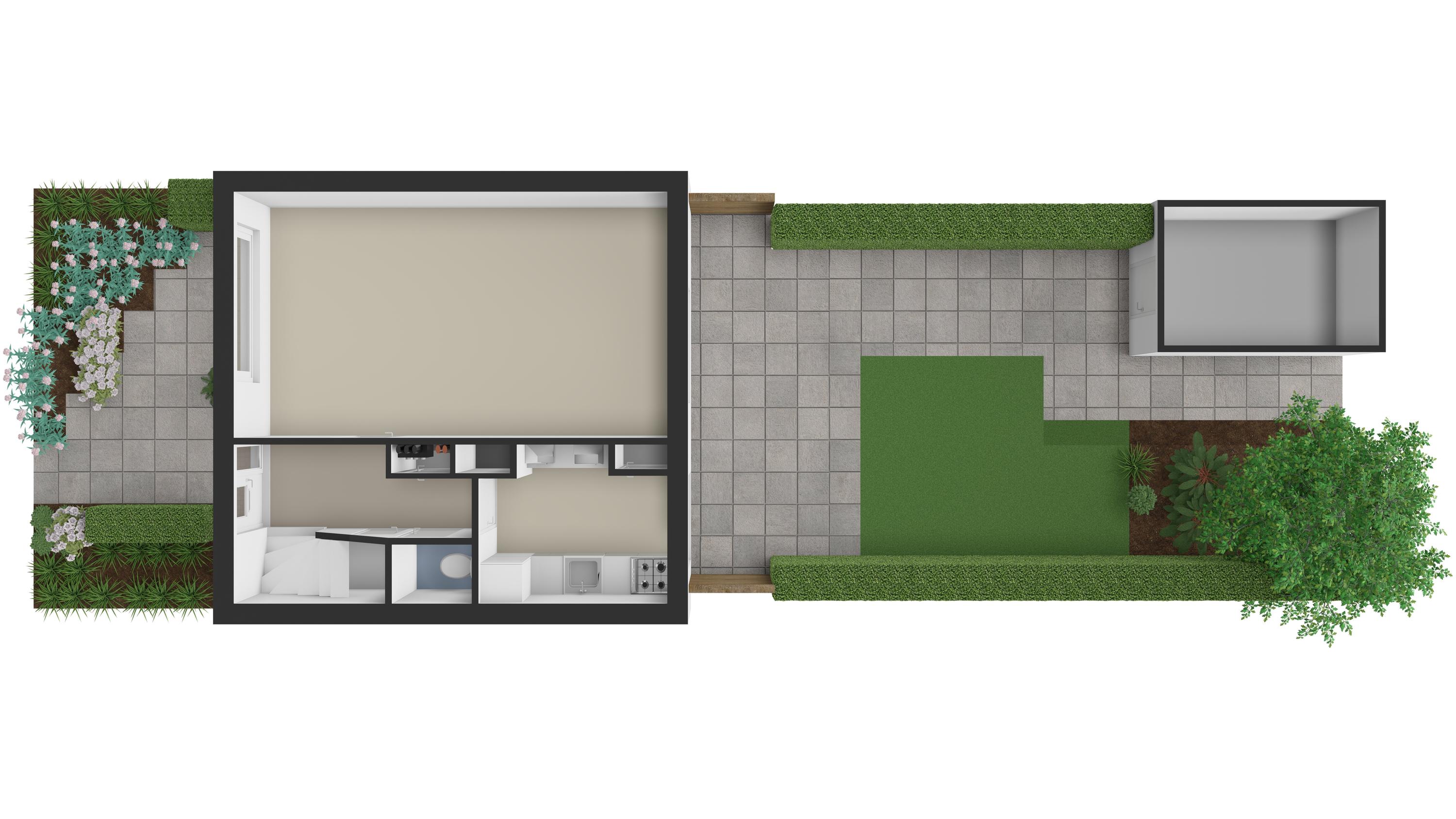 - Vrijstaande berging, ideaal voor fietsen en tuingereedschap;