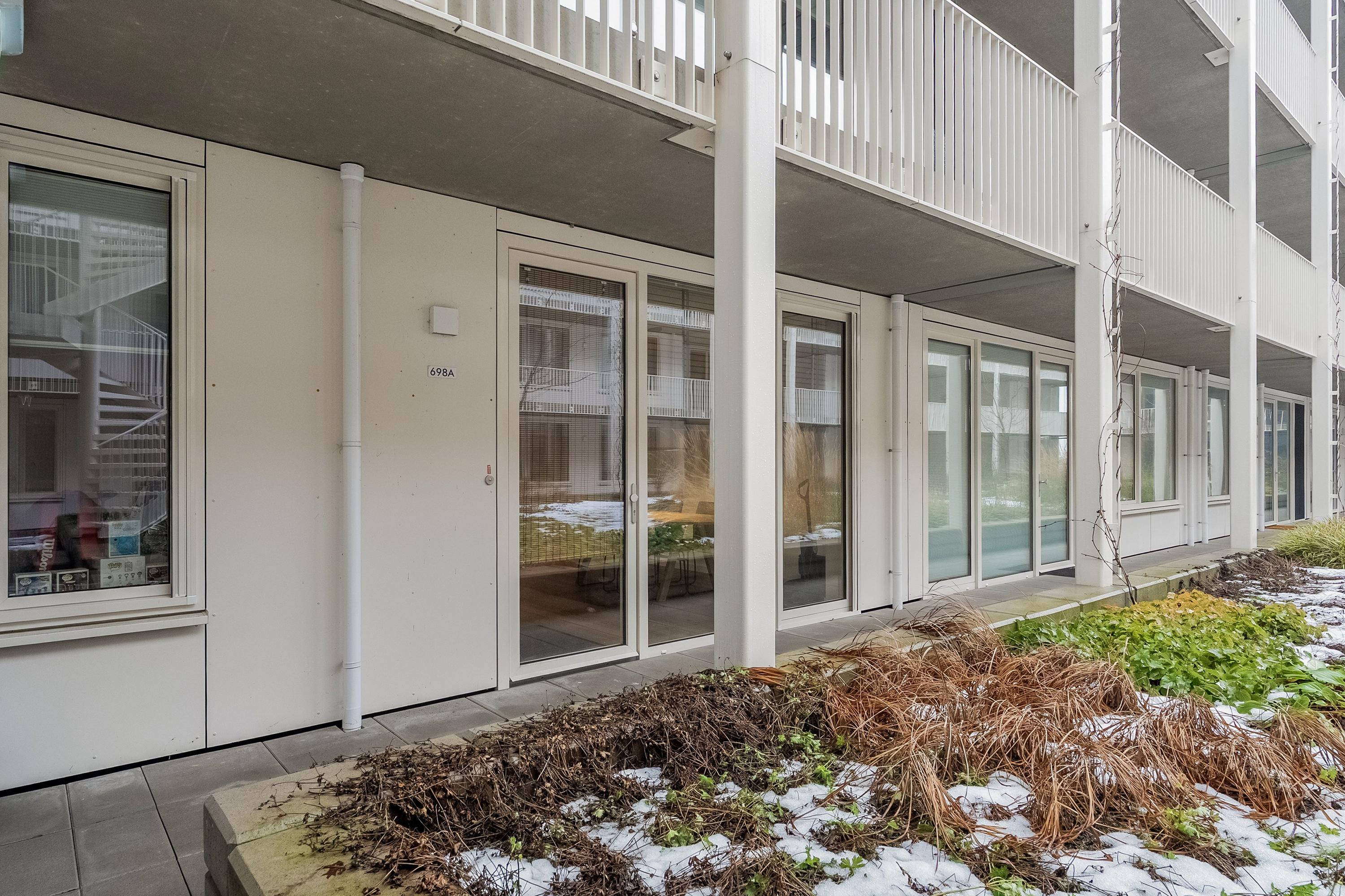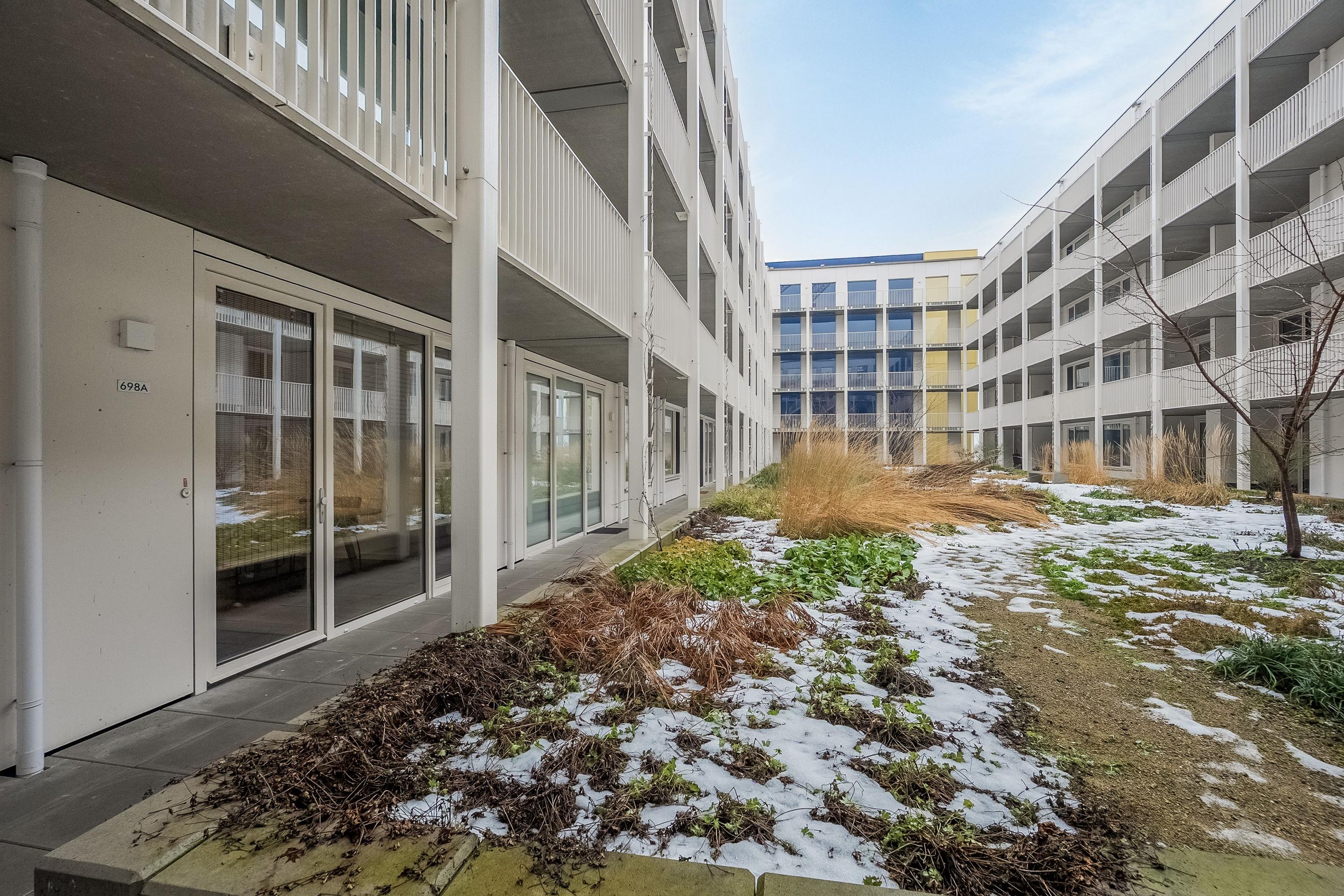 Het appartement is bereikbaar via de fraai aangelegde gezamenlijke binnentuin, rijk aan groen en keurig onderhouden door de VvE. Een rustige en prettige binnenkomst die direct een gevoel van ruimte en privacy geeft.