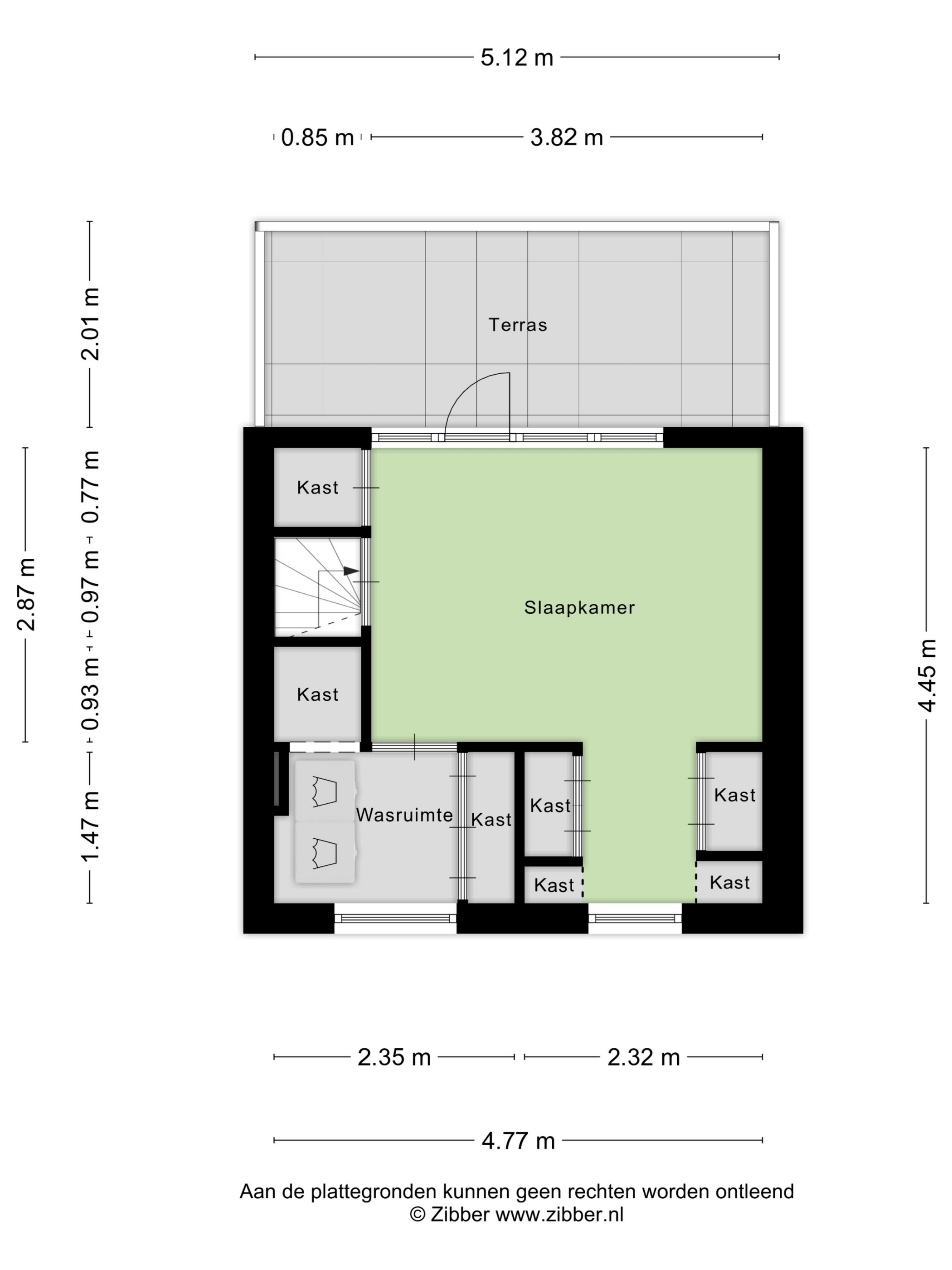 We lopen met de trap naar de tweede verdieping. Een prachtige opbouw waar een riante slaapkamer is gebouwd die in de zomer wel wat verkoeling kan gebruiken, vandaar de airco. Een hele fijne rustgevende kamer met een grote pui aan de achterzijde om op het dakterras te komen. Een mooie plek voor een kop koffie in de ochtend, in de middag heerlijk even ongestoord in de zon te liggen, maar ook een mooie plek om je was in no-time droog te krijgen.