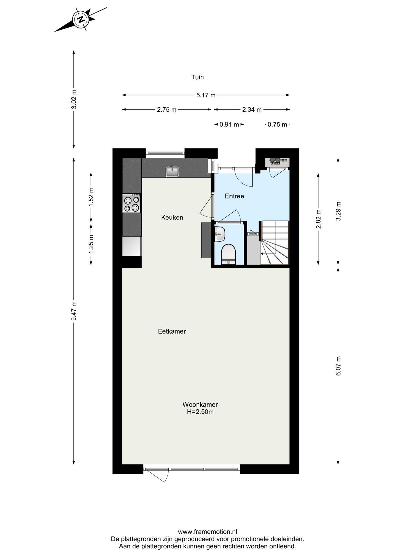 Entree in de hal met meterkast, trapopgang naar de eerste verdieping en praktische trapkast. De toiletruimte is volledig betegeld en voorzien van een duoblok toilet en fonteintje.
