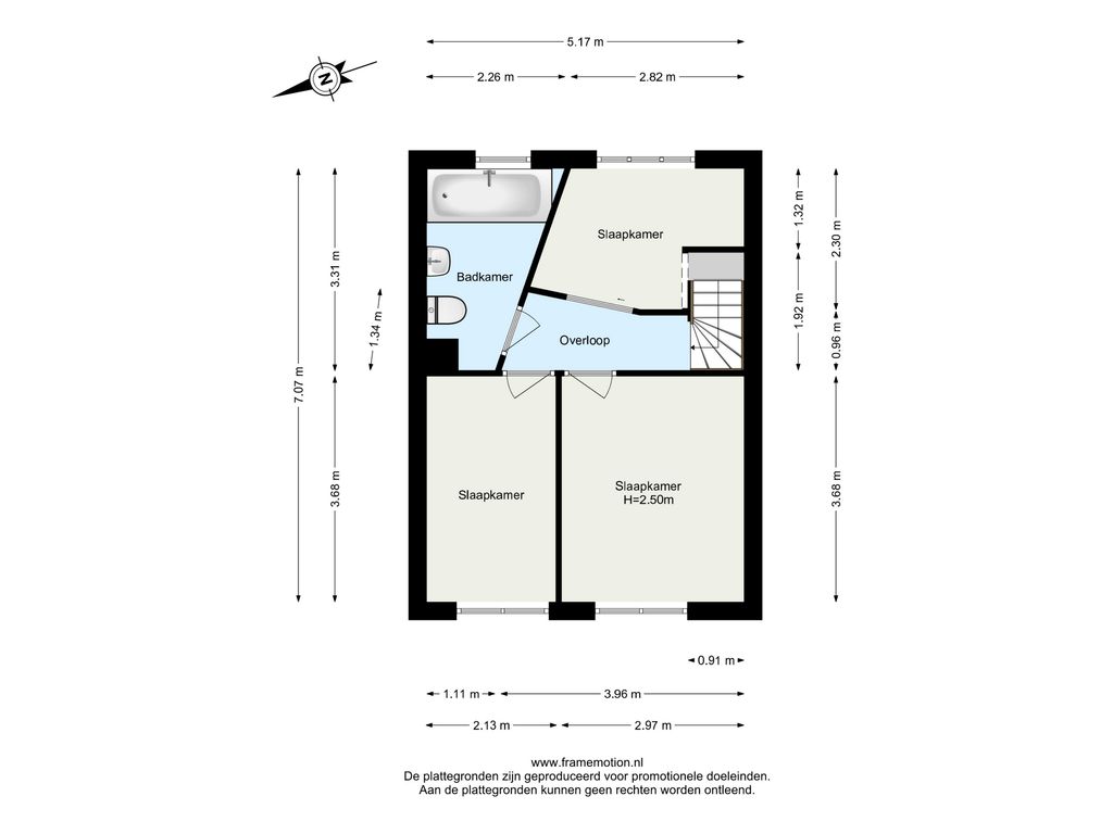 Overloop met toegang tot de (slaap)kamers en de badkamer.