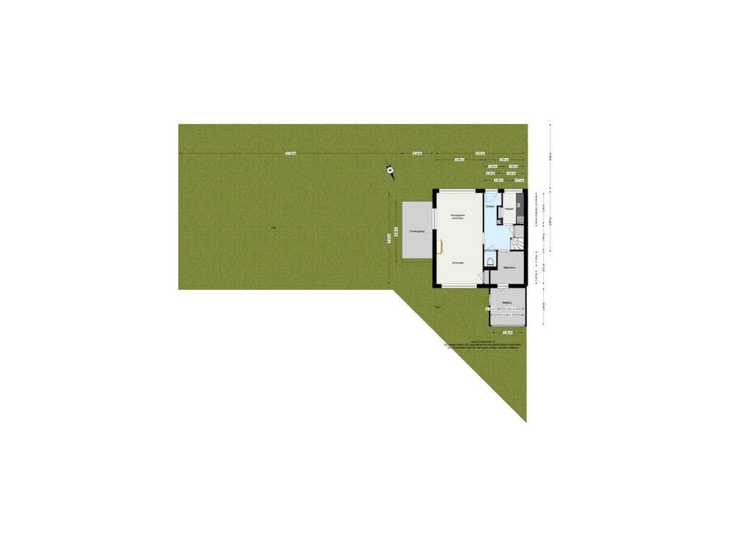 Via de hal komt u in de bijkeuken, met extra bergruimte en ruimte voor bijvoorbeeld een tweede koelkast. Vanuit hier bereikt u de aangebouwde berging, ideaal voor fietsen, tuinmeubilair of gereedschap, en via de berging loopt u zo de achtertuin in.