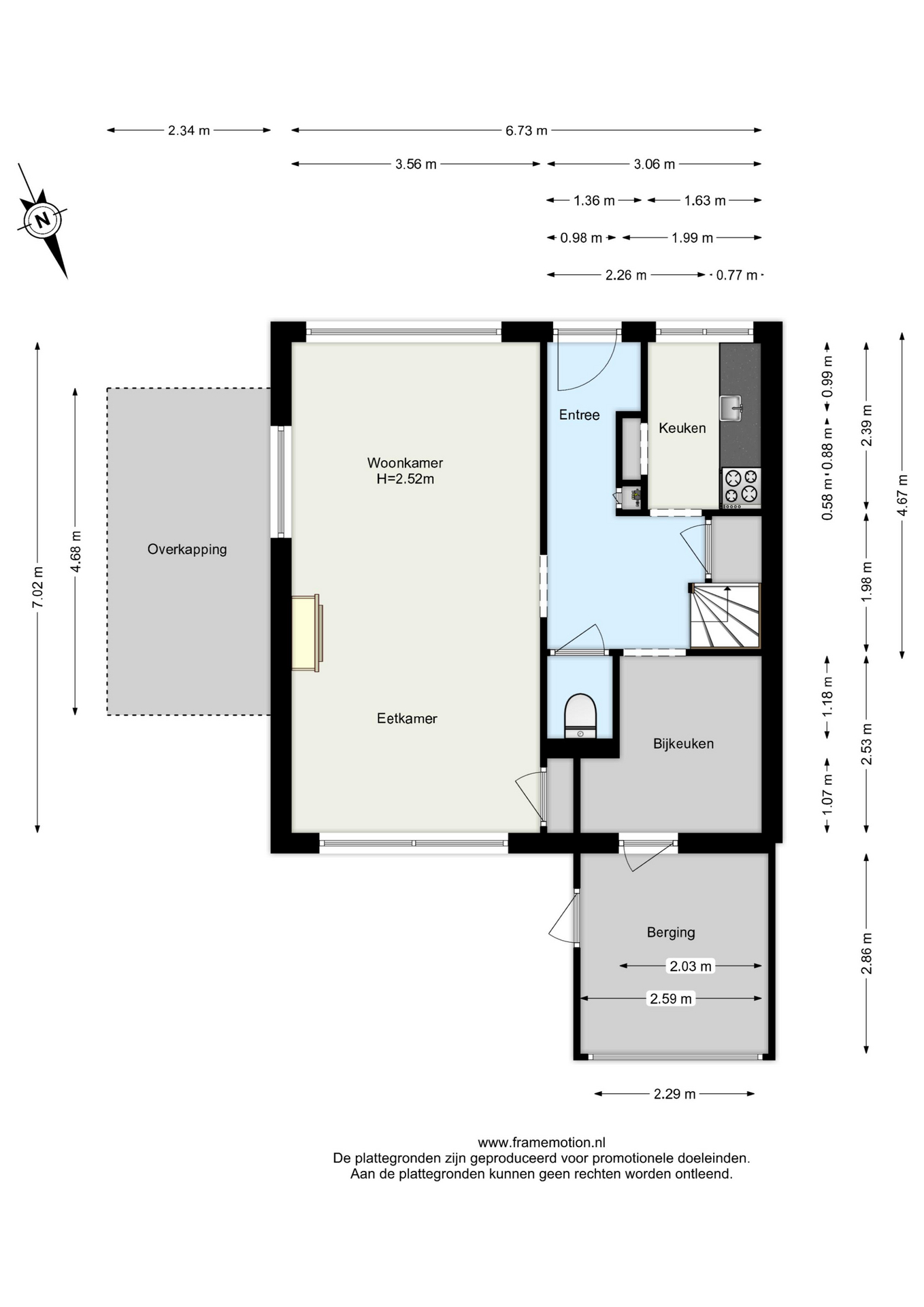 U betreedt de woning via de entreehal, waar zich de meterkast, trapkast, lichte toiletruimte met hangend toilet en de trap naar de eerste verdieping bevinden. Vanuit de hal heeft u toegang tot de woonkamer, keuken en bijkeuken.