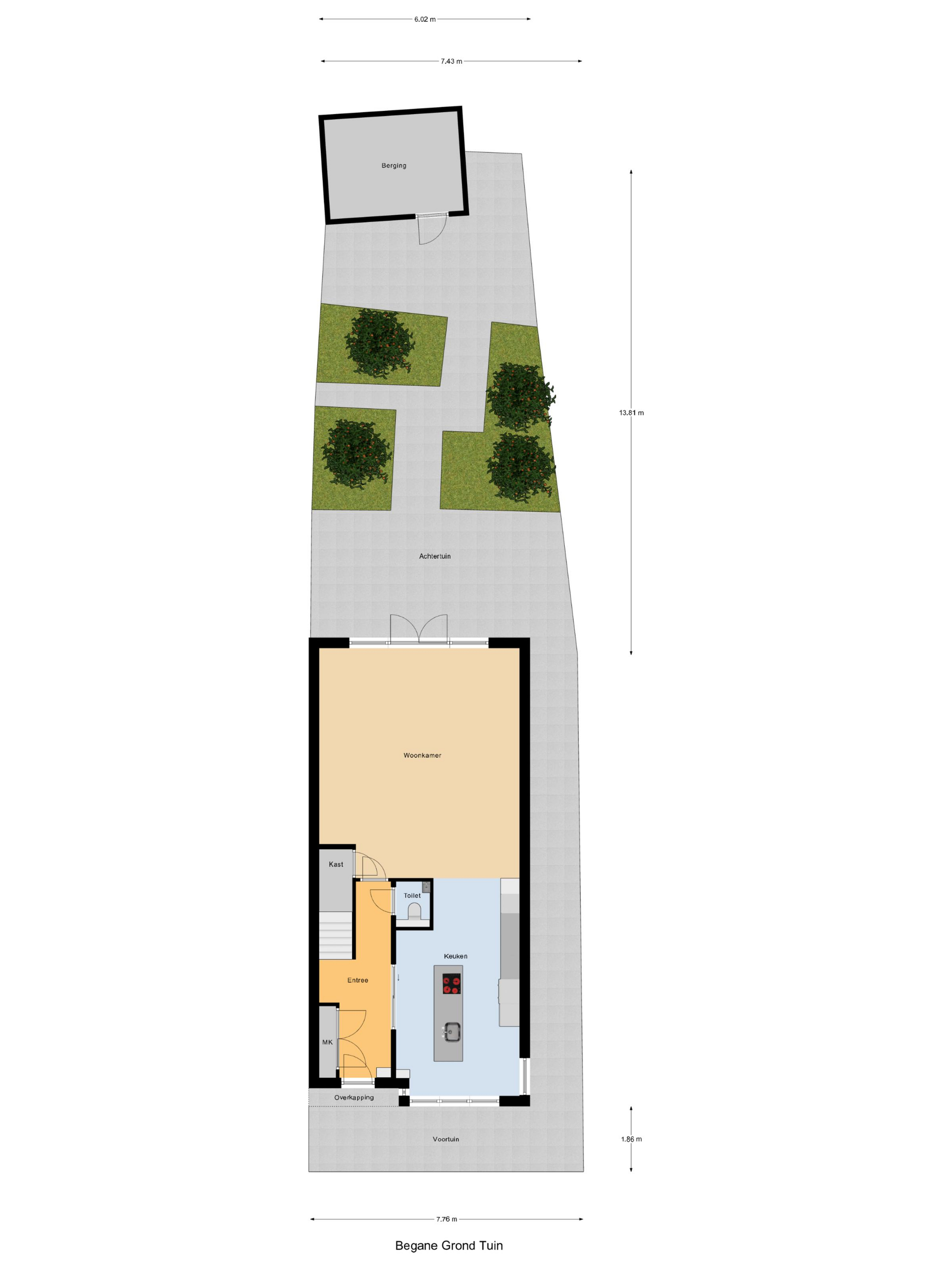 • Ruime achtertuin van ca. 96 m2 op het zuiden