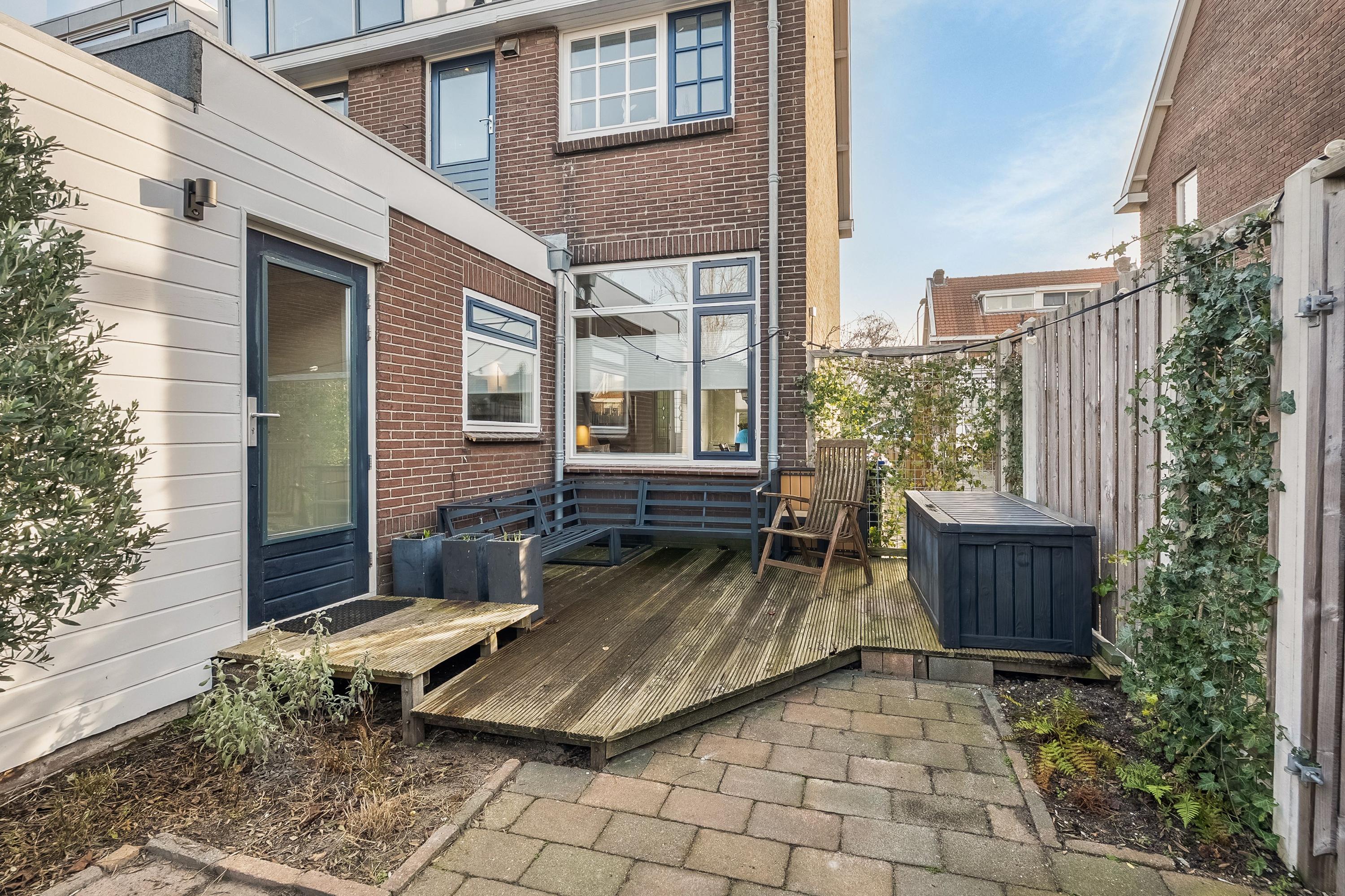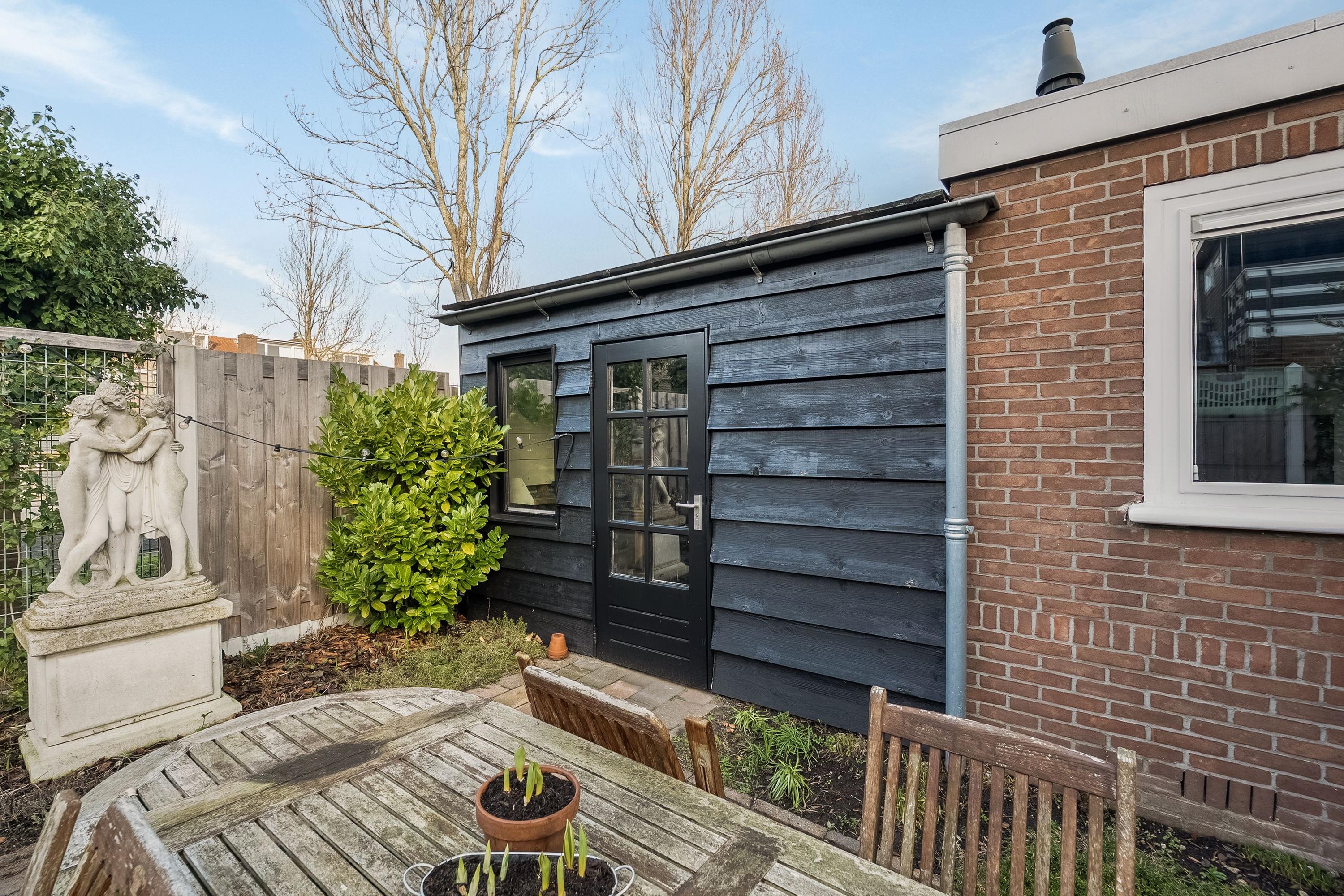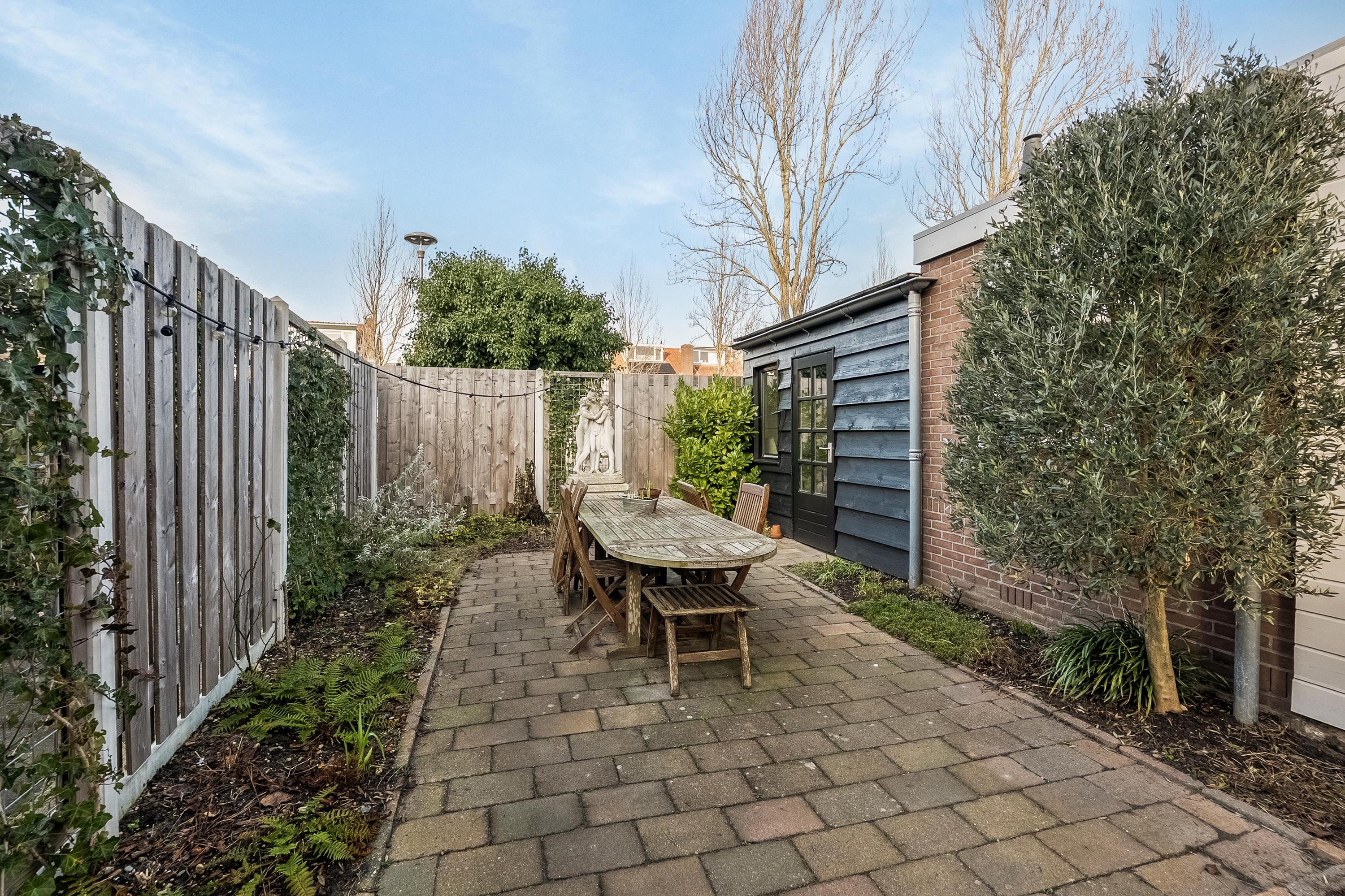 De achtertuin is gelegen op het noordwesten en sfeervol aangelegd met bestrating. Dankzij de schuttingen is er veel privacy. Door de hoekligging is er de gehele dag zon in de tuin. Via de zijdeur is er toegang tot het naastgelegen pad, dat leidt naar het achtergelegen speelpleintje. Dit speeltuintje is volledig omheind en daarmee een veilige en fijne plek voor kinderen om te spelen.