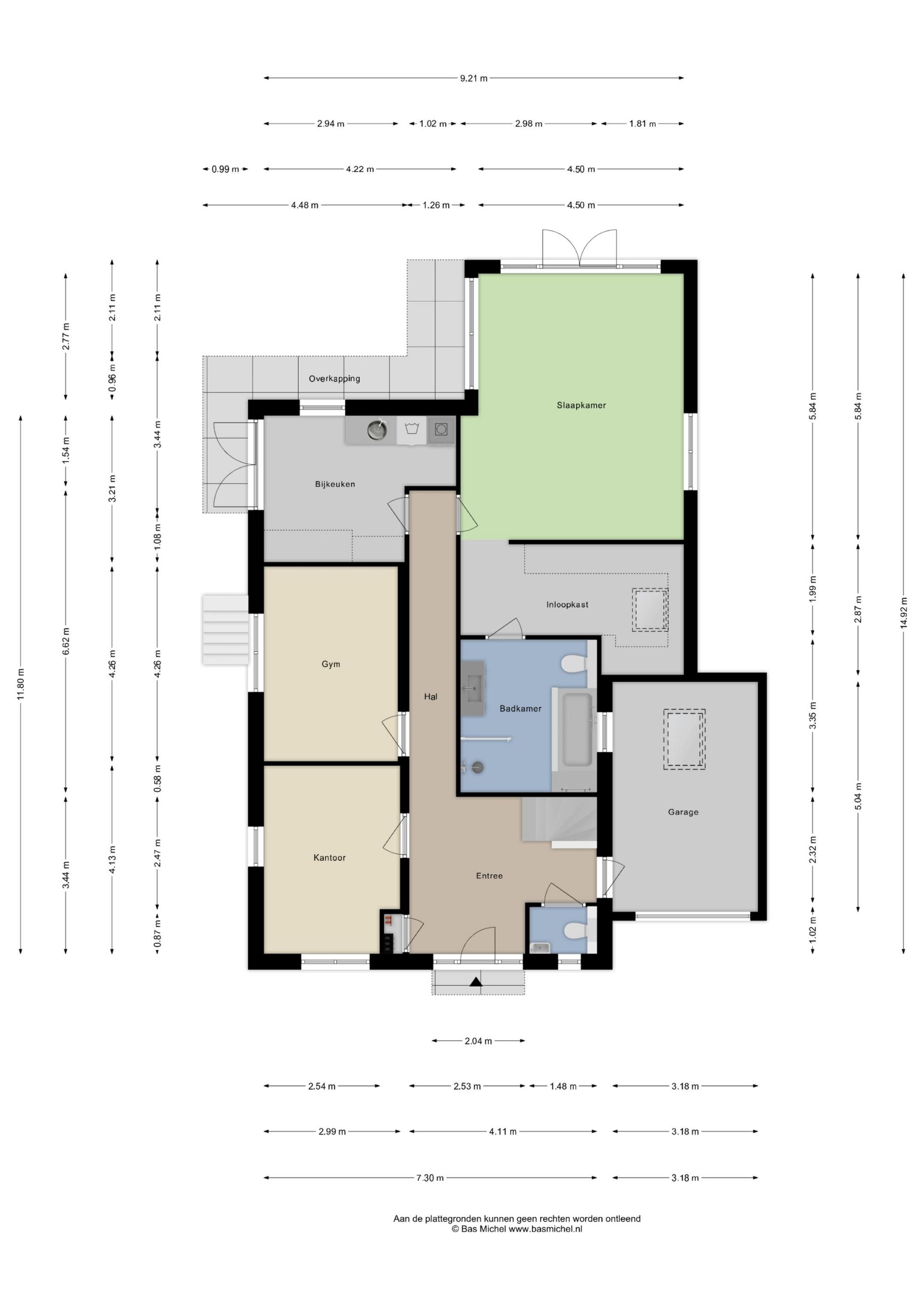 Slaapkamer 2/gym (ca. 13 m2) is gelegen aan de zijkant van de woning.
