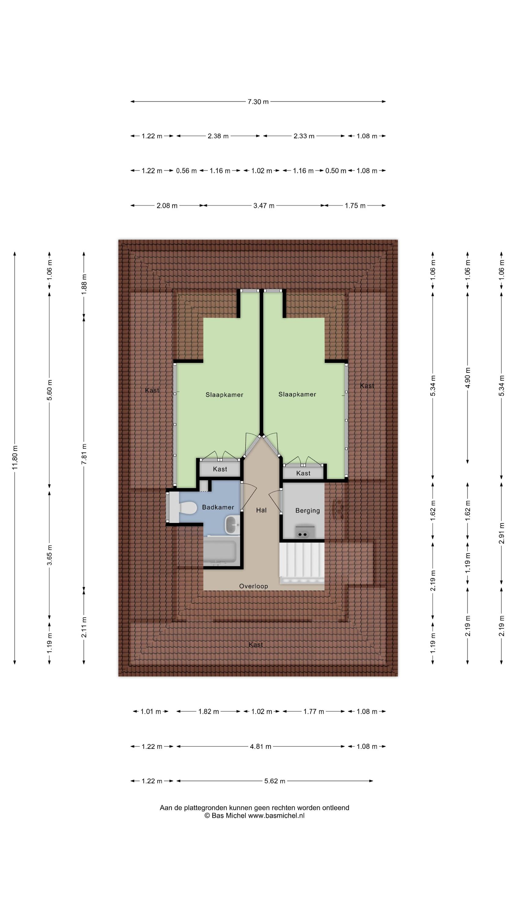 De slaapkamers op deze verdieping zijn afgewerkt met vloerbedekking.