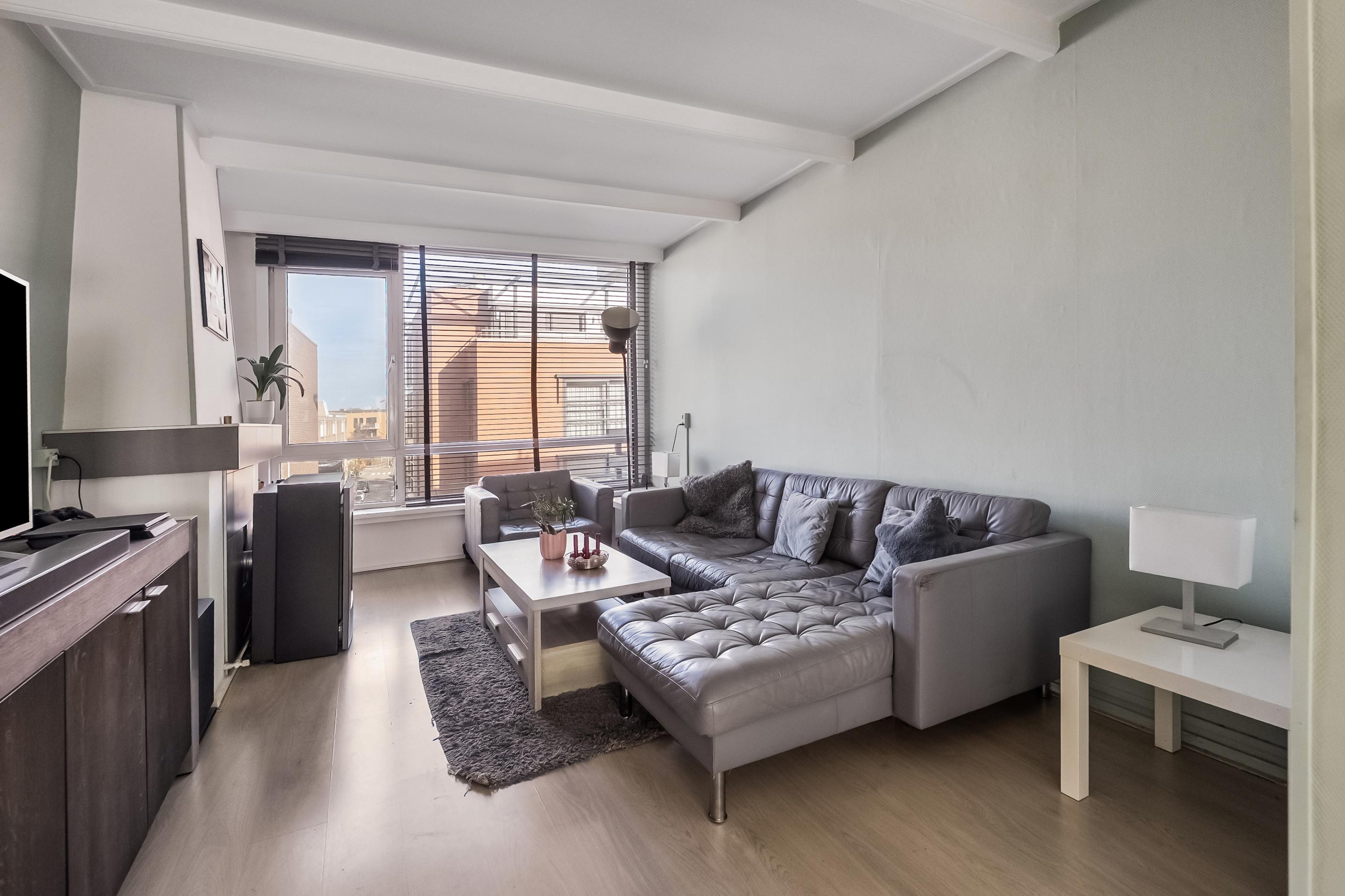 Lichte woonkamer (ca. 28 m2) gelegen aan de voorzijde van het complex en voorzien van een laminaatvloer en een gaskachel. De grote raampartij zorgt voor volop aangenaam daglicht. De woonkamer biedt verder voldoende ruimte om een eethoek te creëren.