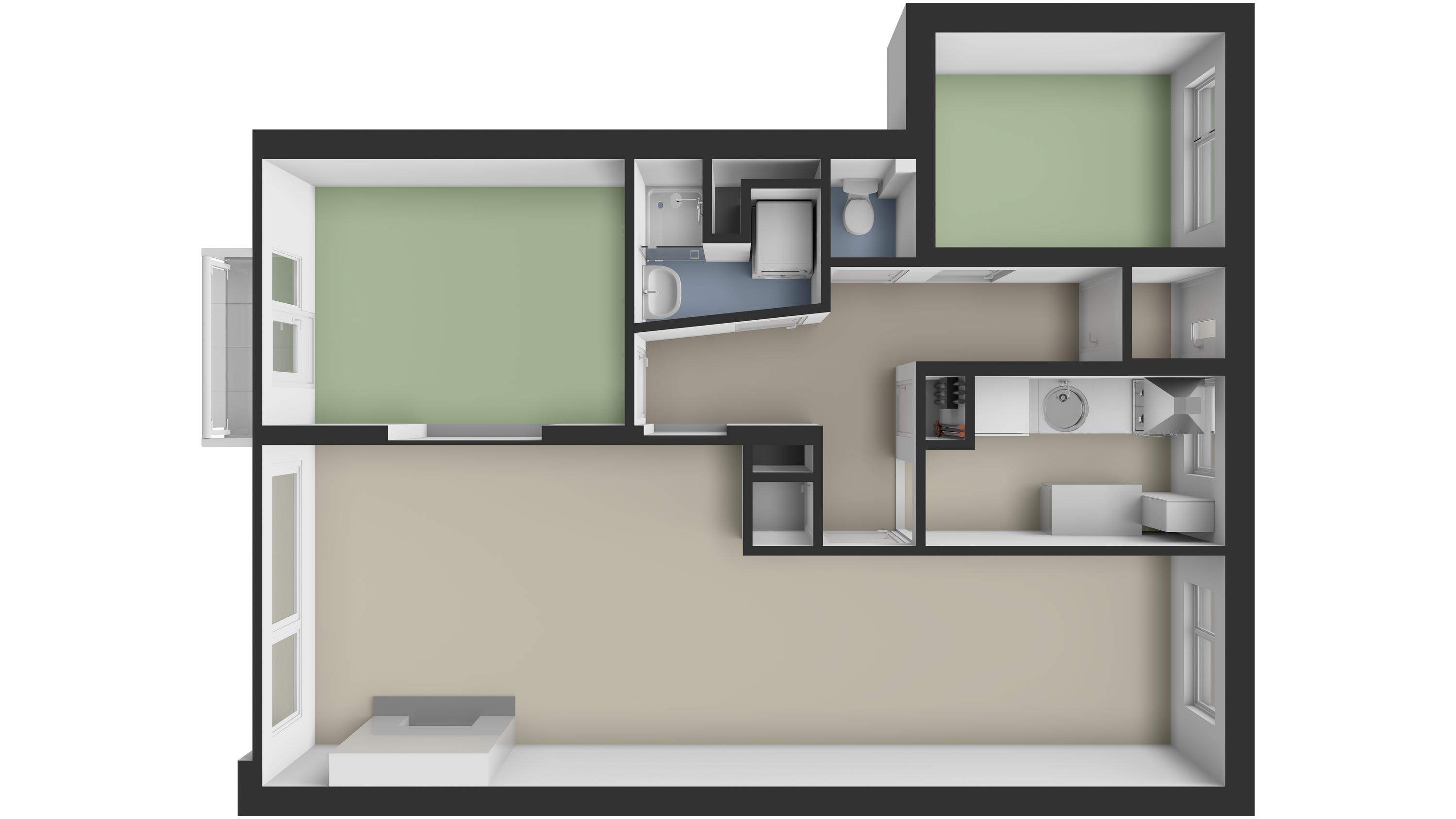 - 3-kamerappartement op de 2e verdieping;