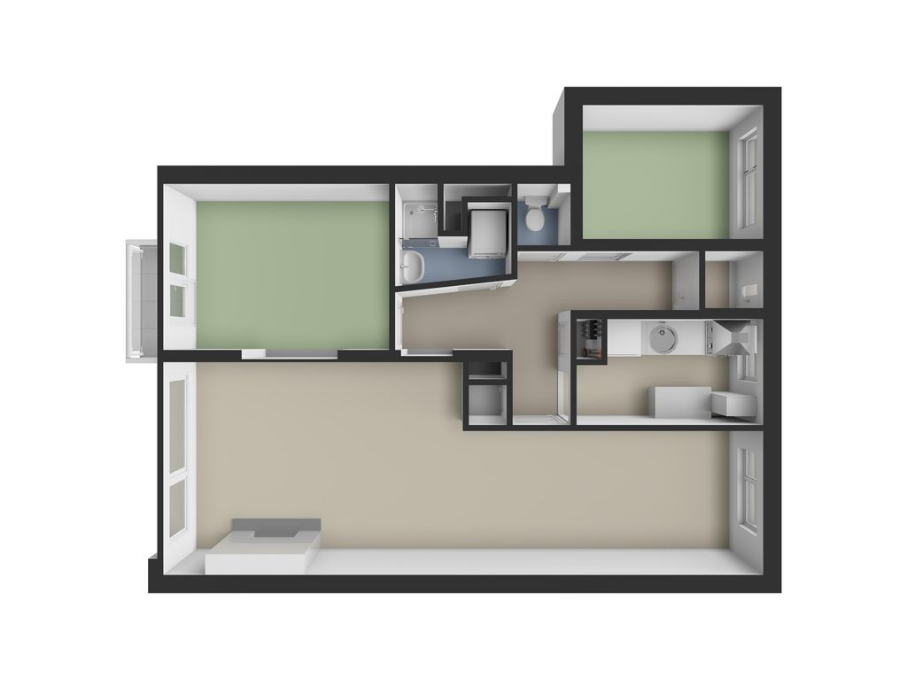 - Het appartementencomplex is voorzien van kunststof kozijnen met isolerende beglazing;