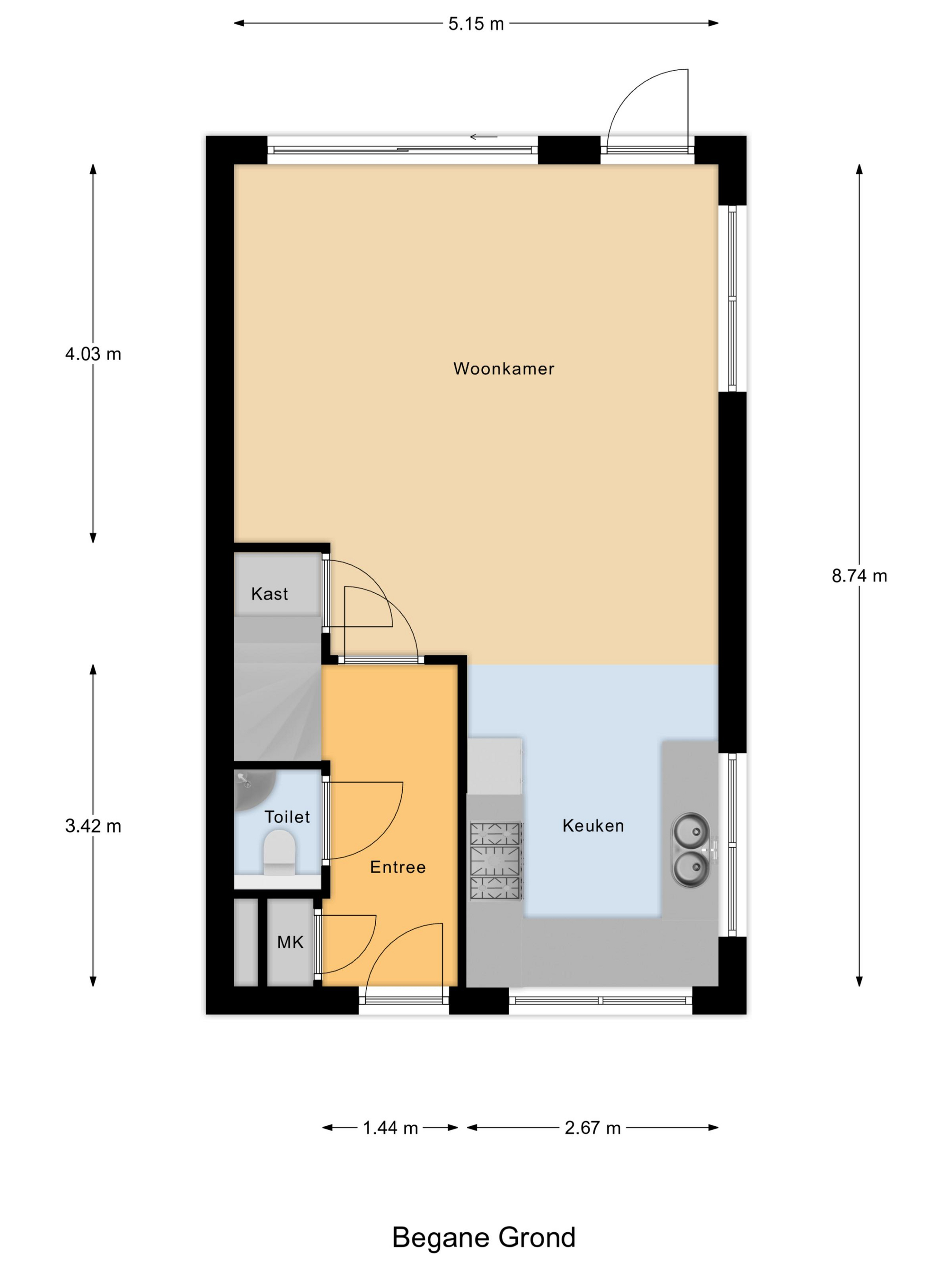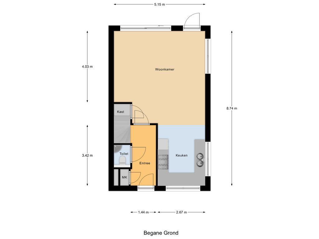 Via de voortuin stap je achter de voordeur binnen in de uitnodigende hal met toegang tot de meterkast en de moderne toiletruimte. Vanuit de hal loop je door naar de royale, tuingerichte woonkamer. Door de hoekligging en de grote raampartijen valt het daglicht hier prachtig naar binnen. Je voelt direct de rust en de ruimte. De begane grond is voorzien van comfortabele vloerverwarming. Aan de tuinzijde is voldoende ruimte voor een gezellige zithoek.