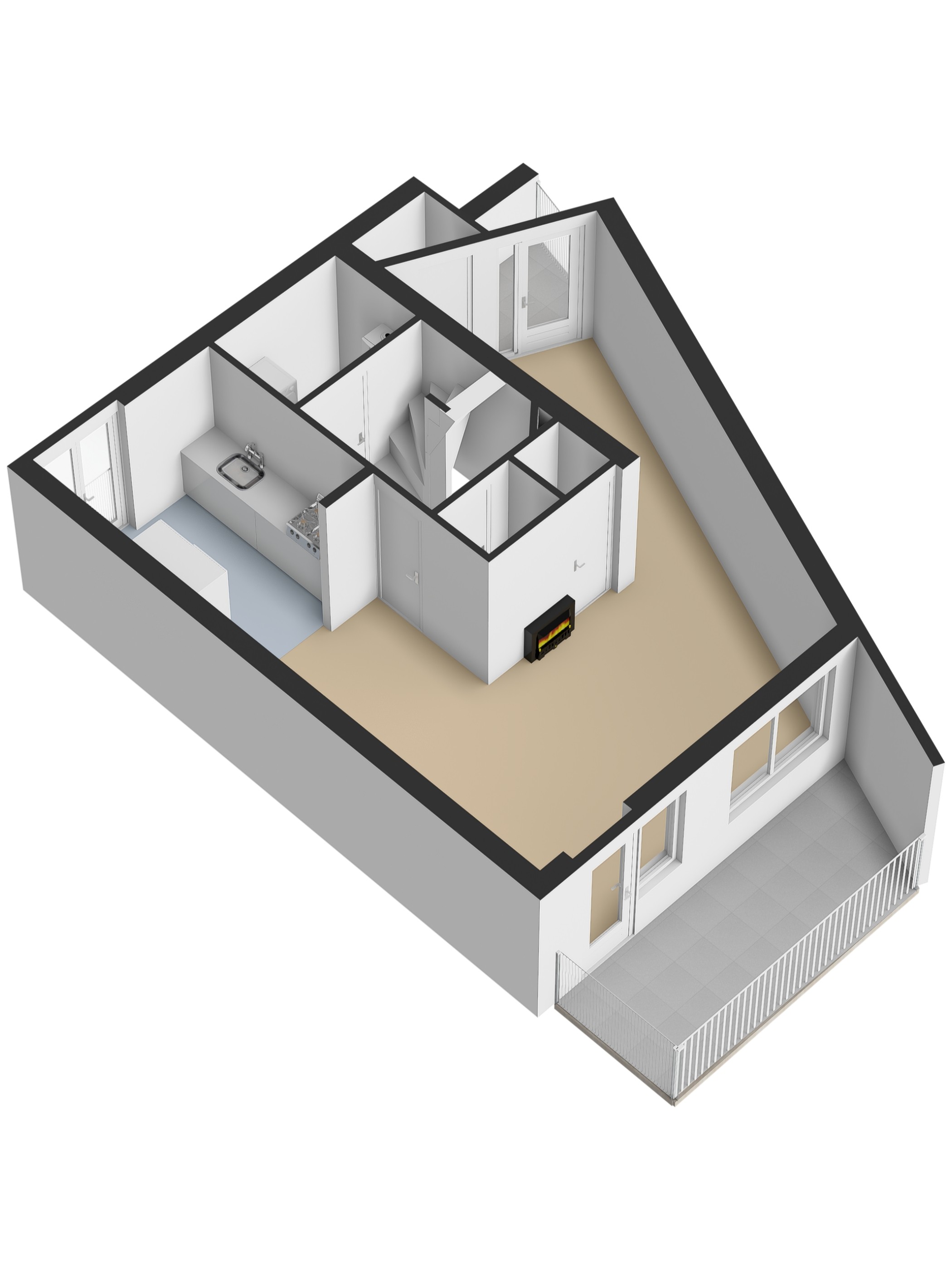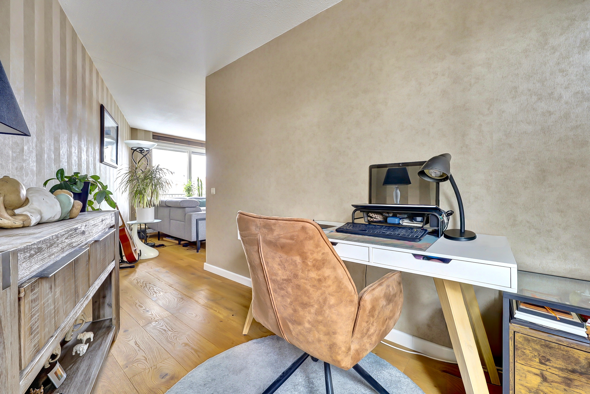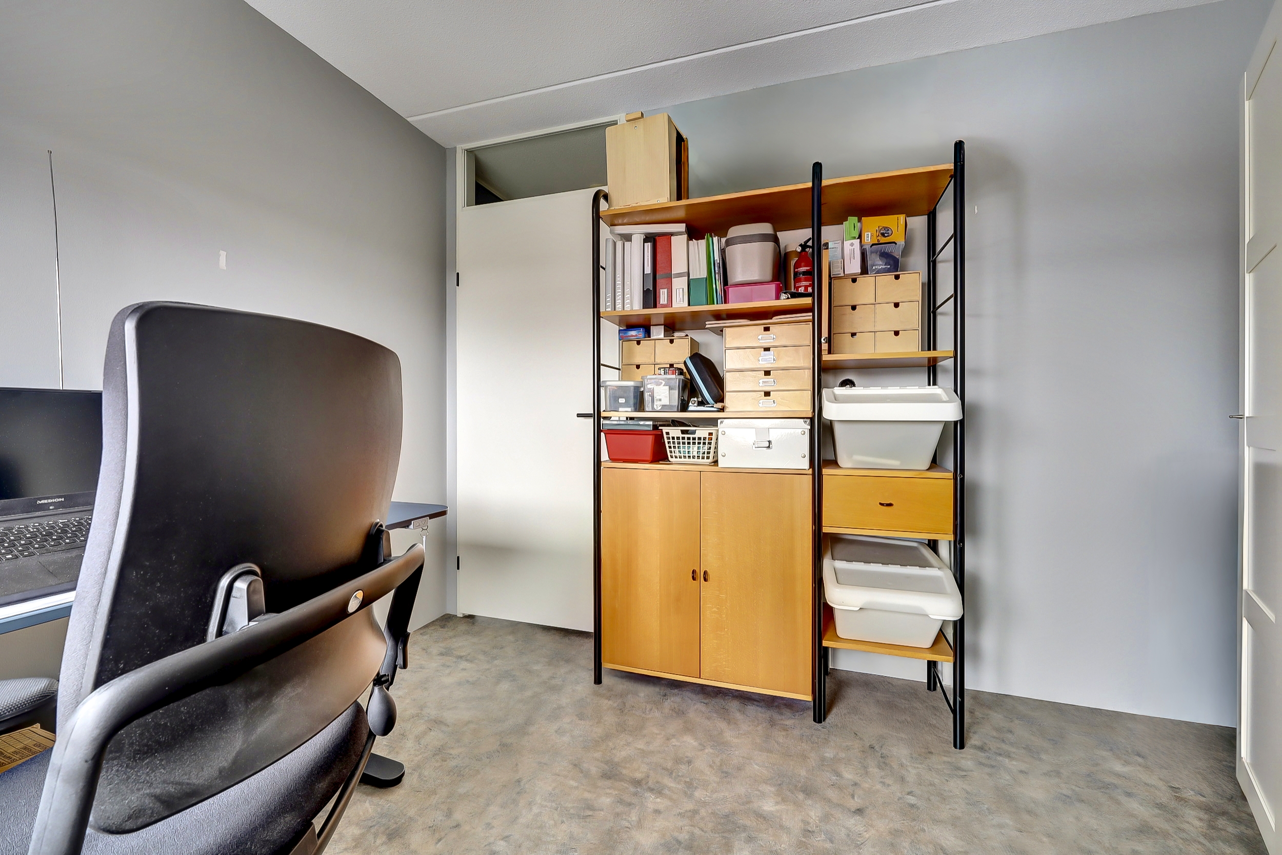 Aansluitend aan het woongedeelte bevindt zich een open hobby- of werkruimte. Deze ruimte is flexibel in te delen en leent zich uitstekend voor thuiswerken, studeren of een creatieve invulling. Ook hier is een vaste inbouwkast aanwezig, wat zorgt voor extra bergruimte. Vanuit deze open ruimte is eveneens toegang tot een balkon gelegen op het noordoosten. Hier is ruimte voor bijvoorbeeld een bistroset voor een lekkere koffie in de ochtendzon.