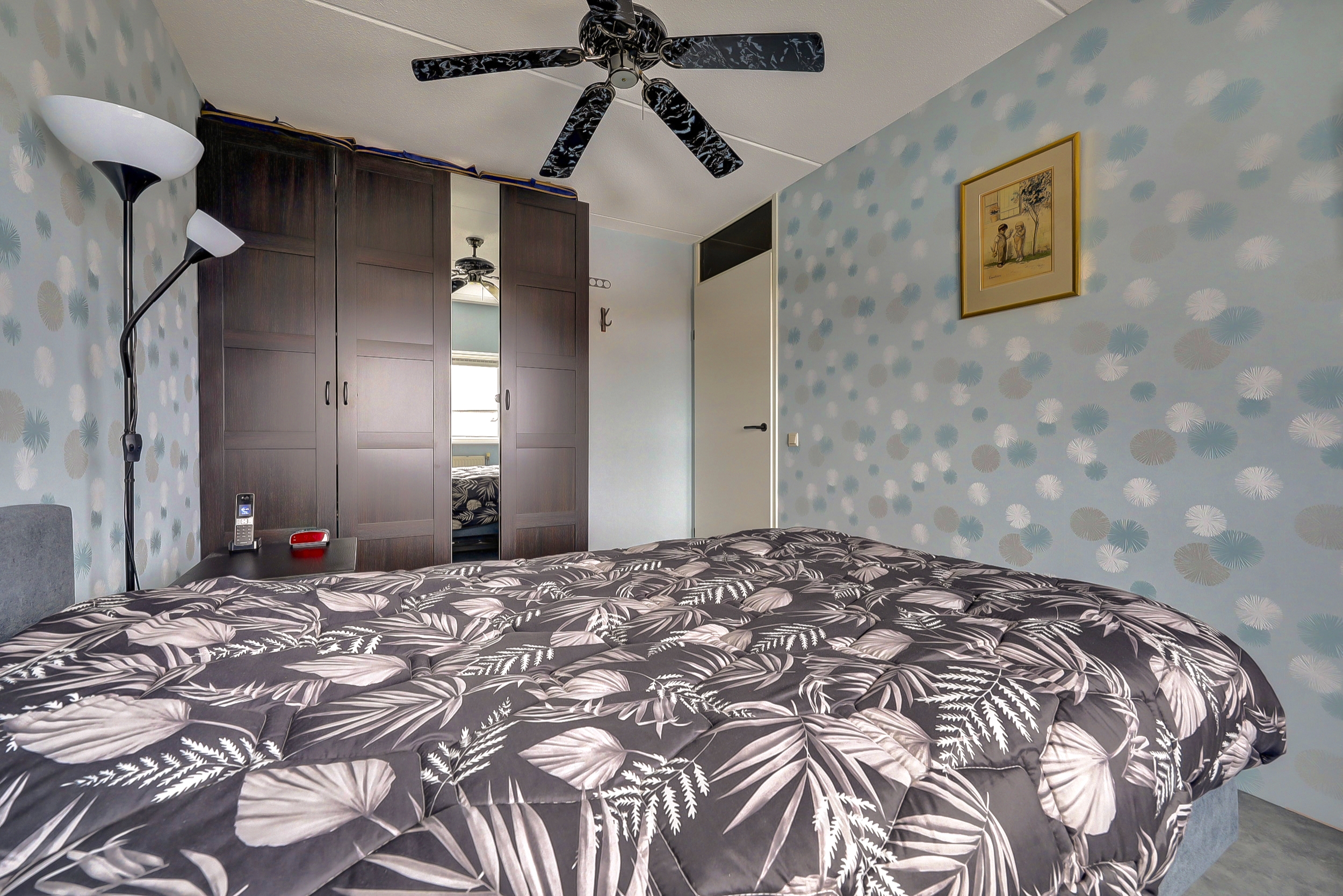 Aan de achterzijde bevindt zich de ruim bemeten hoofdslaapkamer, waarin voldoende ruimte is voor ruim tweepersoonsbed en een kledingkast. Ook deze slaapkamer heeft een elektrisch bediend rolluik Een comfortabele kamer met een rustige en fijne sfeer.