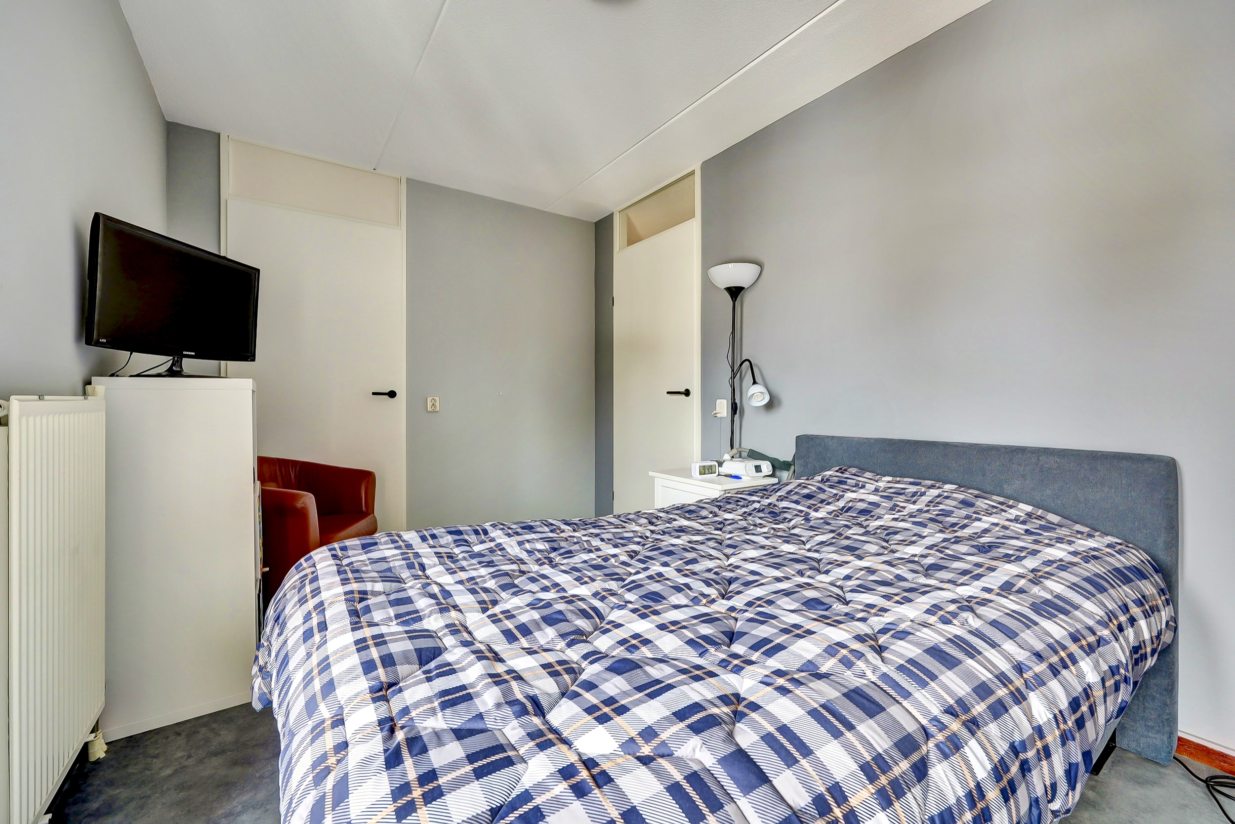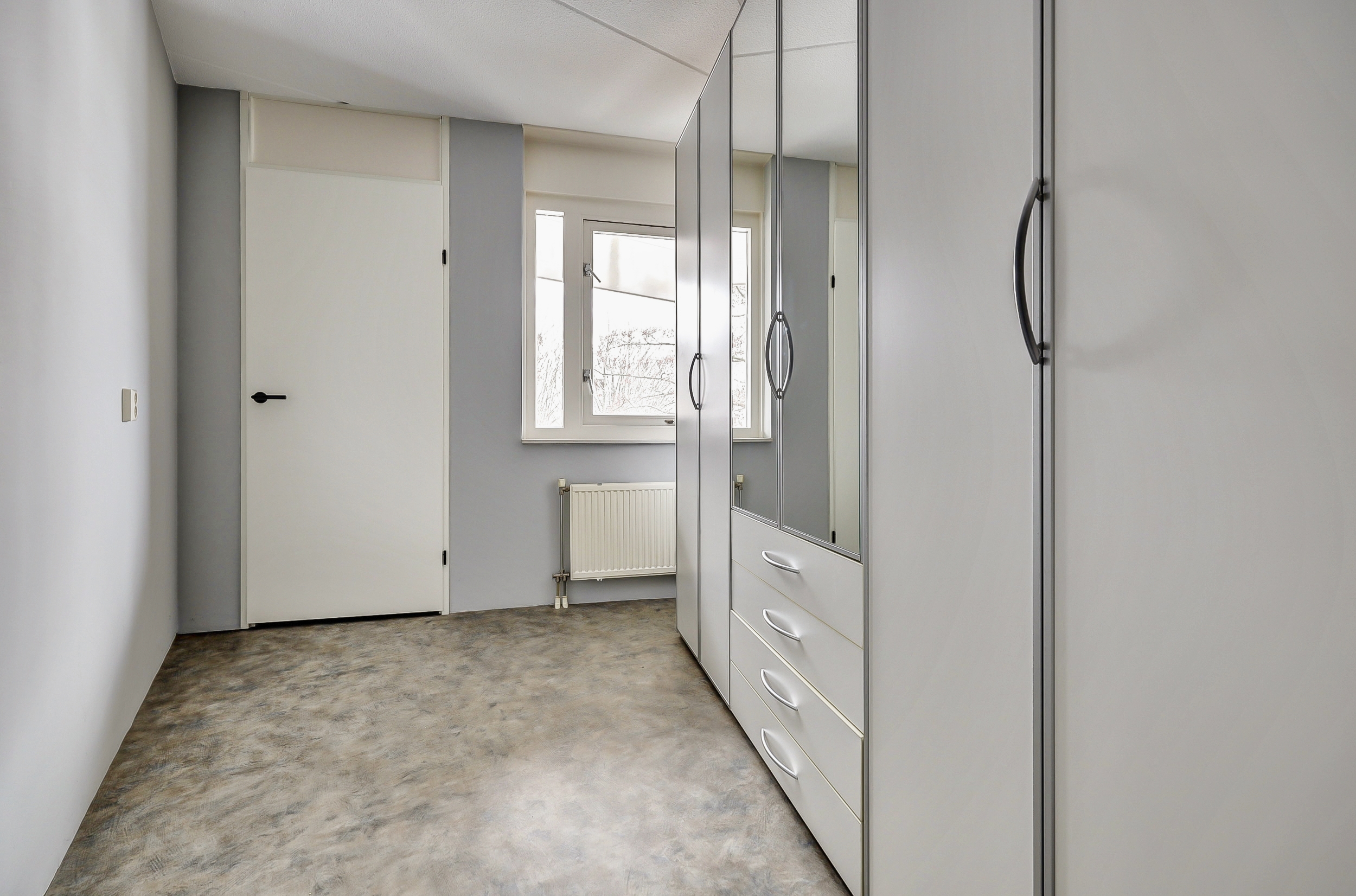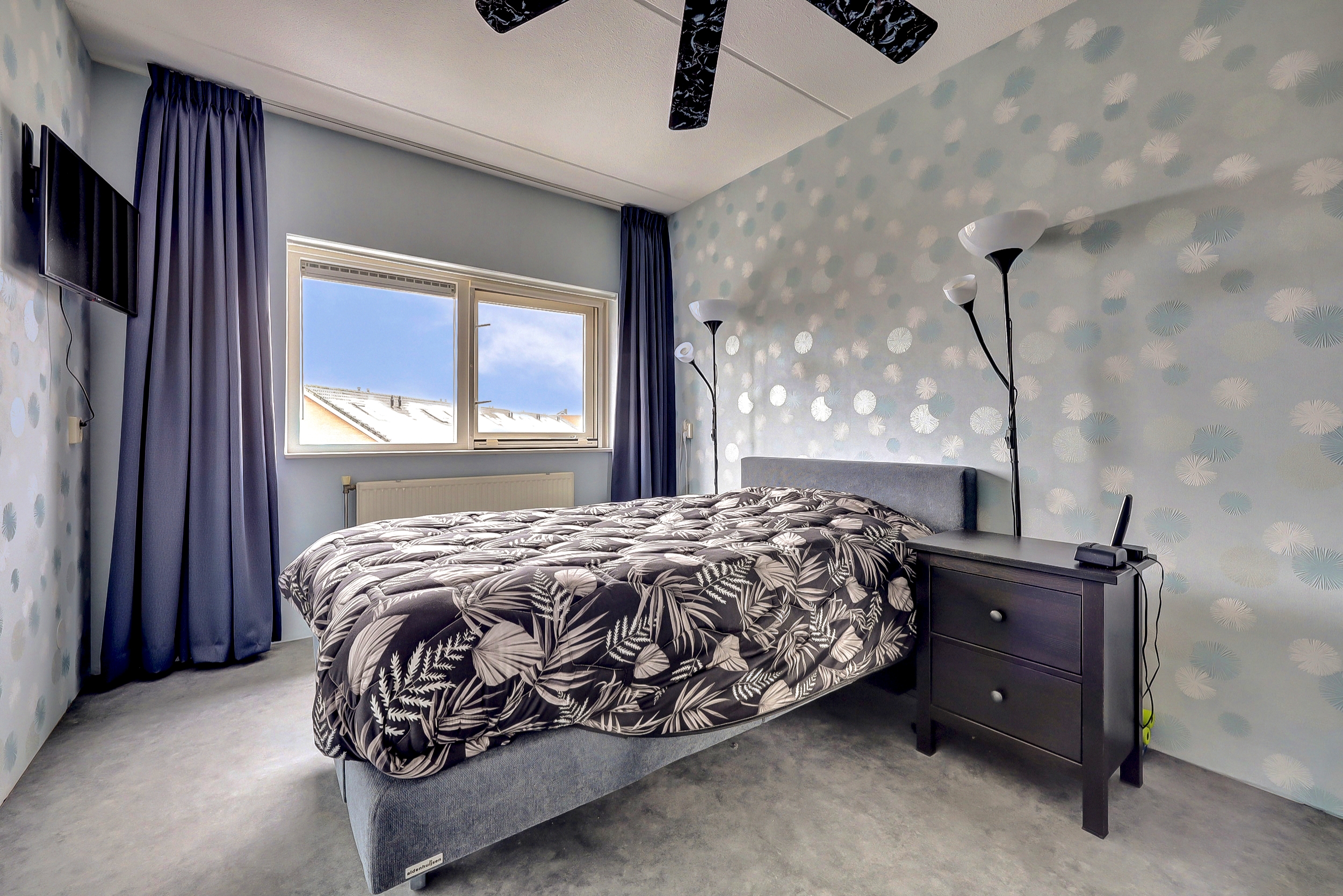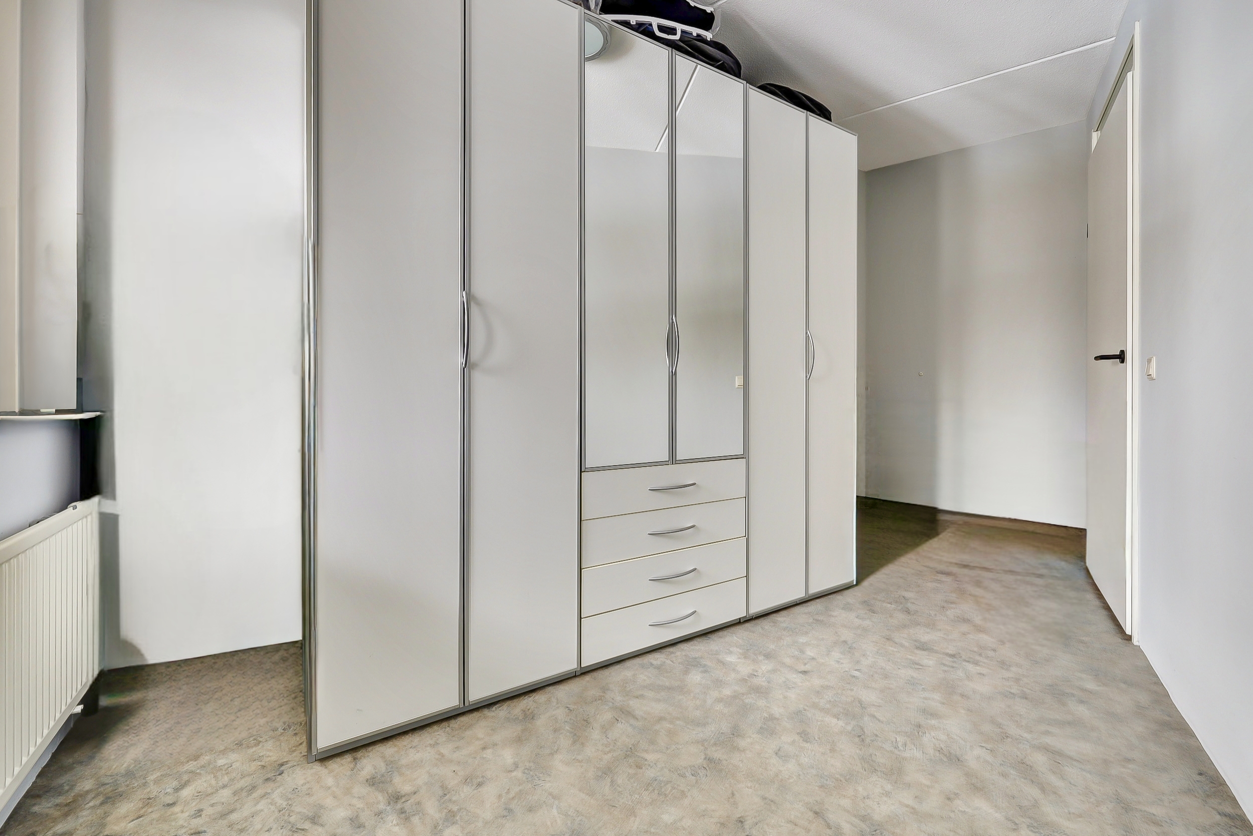 Een van de slaapkamers is royaal van opzet en voorzien van een vaste inbouwkast en openslaande deuren naar een Frans balkon. Door de prettige afmetingen is hier met gemak plaats voor een groot bed en een bureau, wat deze kamer zeer geschikt maakt als bijvoorbeeld een tienerslaapkamer. Hier is ook een elektrisch bediend rolluik.