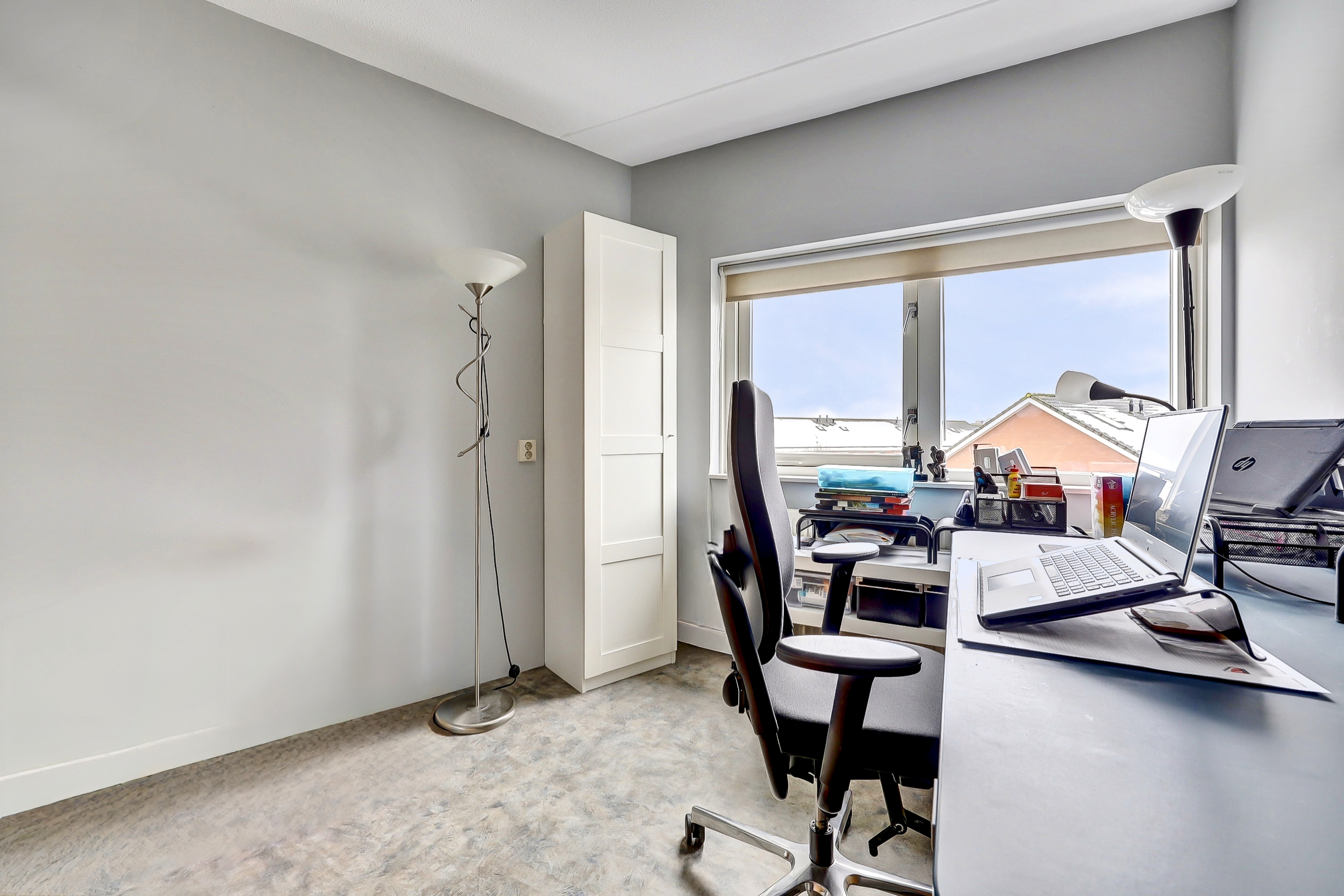 Een derde slaapkamer wordt momenteel gebruikt als kantoorruimte en is ideaal voor thuiswerken. Deze kamer kan uiteraard ook worden ingericht als slaap-, logeer- of hobbykamer. De vierde slaapkamer is eveneens ruim van formaat, beschikt over een vaste inbouwkast en loopt speels en breed uit, wat zorgt voor extra ruimte en een prettige indeling. Deze kamer wordt nu gebruikt als kleedkamer.