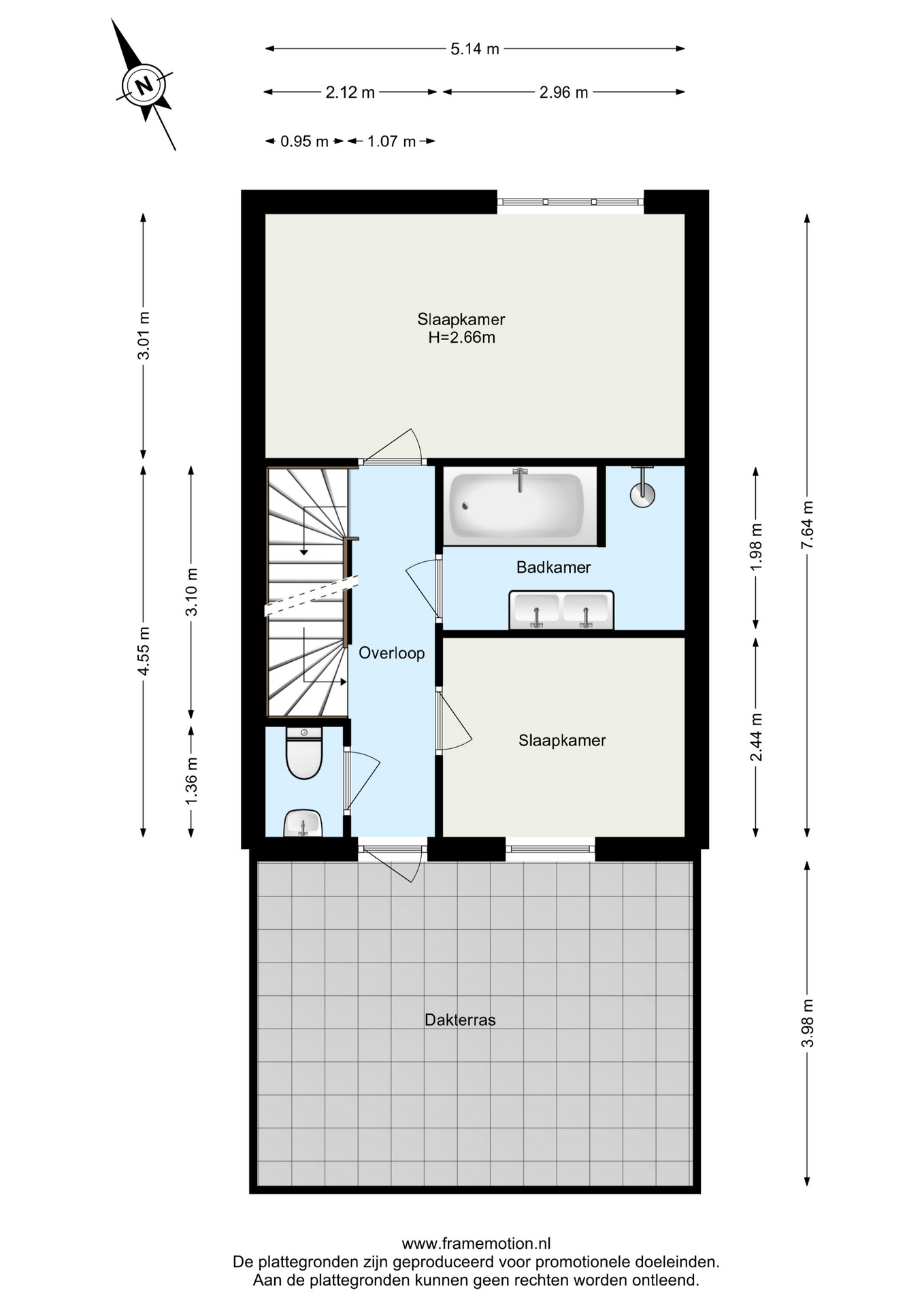Daarnaast is er op deze verdieping een aparte toiletruimte met duoblok toilet en fonteintje (beige betegeling).