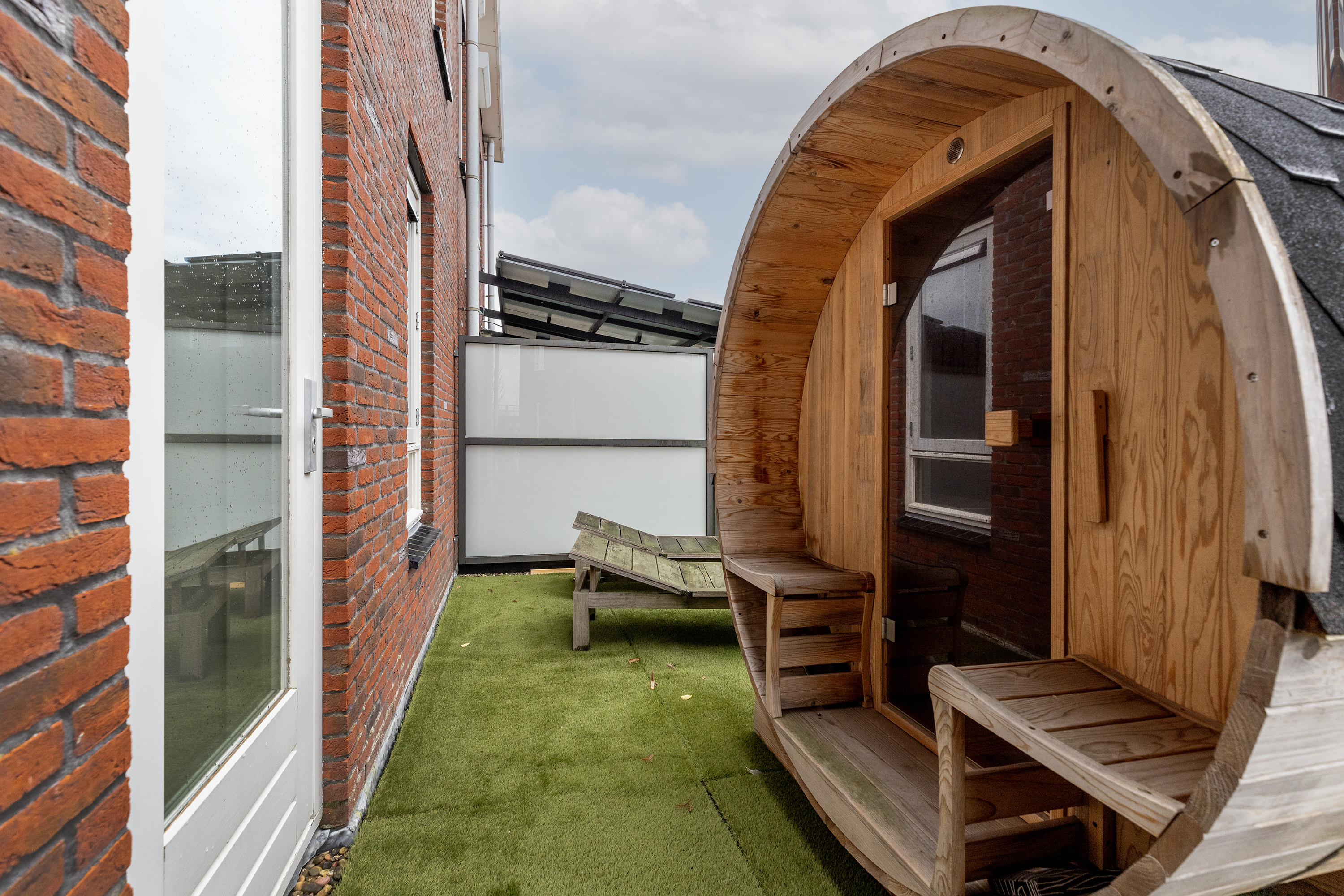- Groot dakterras met vrijstaande sauna (ter overname)
