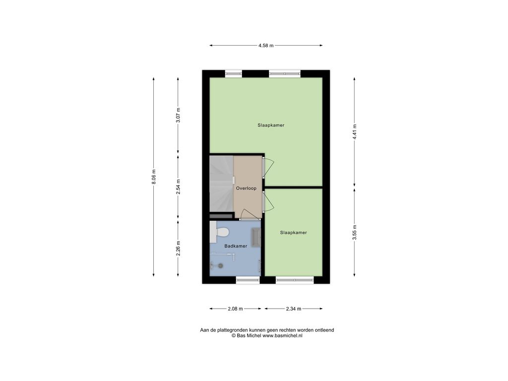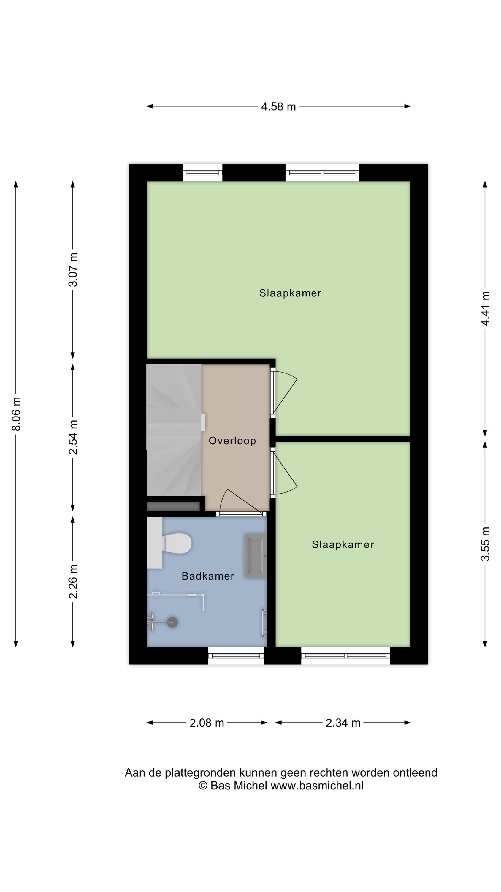 Hier bevinden zich twee ruime slaapkamers, waarvan de slaapkamer aan de achterzijde eenvoudig kan worden opgesplitst in twee afzonderlijke kamers. Ook deze verdieping beschikt over een nette laminaatvloer.