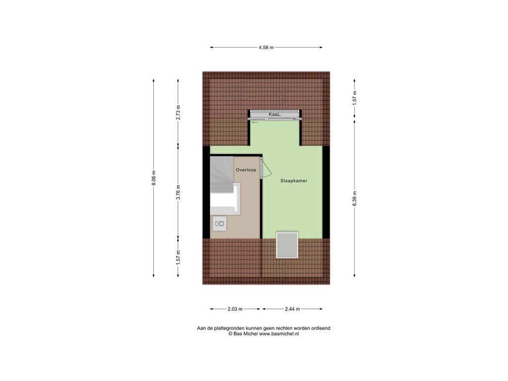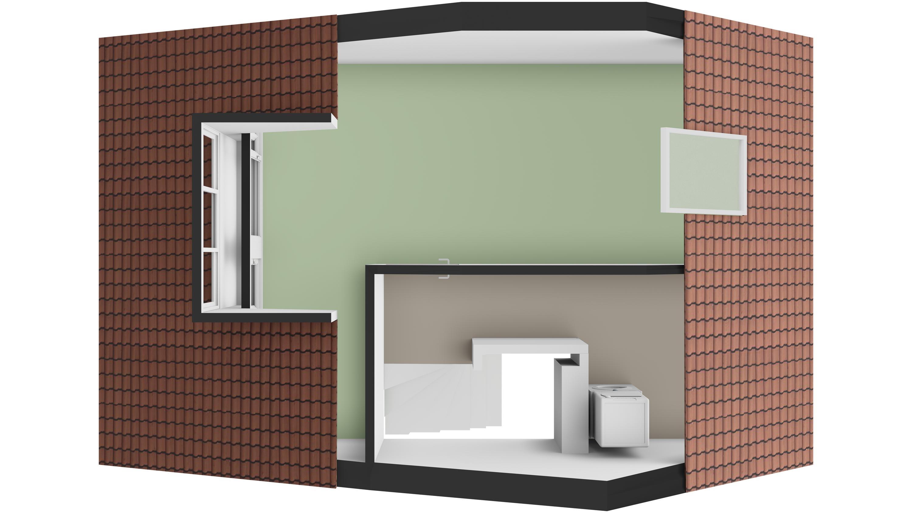 Via een vaste trap kom je op de ruime zolderverdieping. Hier vindt je de overloop met opstelling voor de wasmachine en droger. De derde slaapkamer strekt zich uit over de gehele lengte van de woning en is uitgerust met een dakraam aan de voorzijde én een dakkapel aan de achterzijde. Ook hier liggen laminaatvloeren en zijn inbouwspots in het plafond aanwezig.