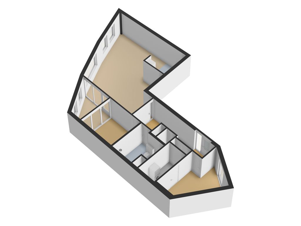 Terug in de hal lopen we naar de tweede slaapkamer: een ruime kamer van ca. 8 m². Ruimte genoeg voor een tweepersoonsbed en een kledingkast. Deze kamer biedt ook toegang tot de interne berging, waar de aansluitingen voor de wasmachine en droger zijn. Tevens is dit een grote ruimte waar je ook koffers, stofzuiger en andere spullen kwijt kunt. Door het grote raam is het een fijne, lichte kamer.