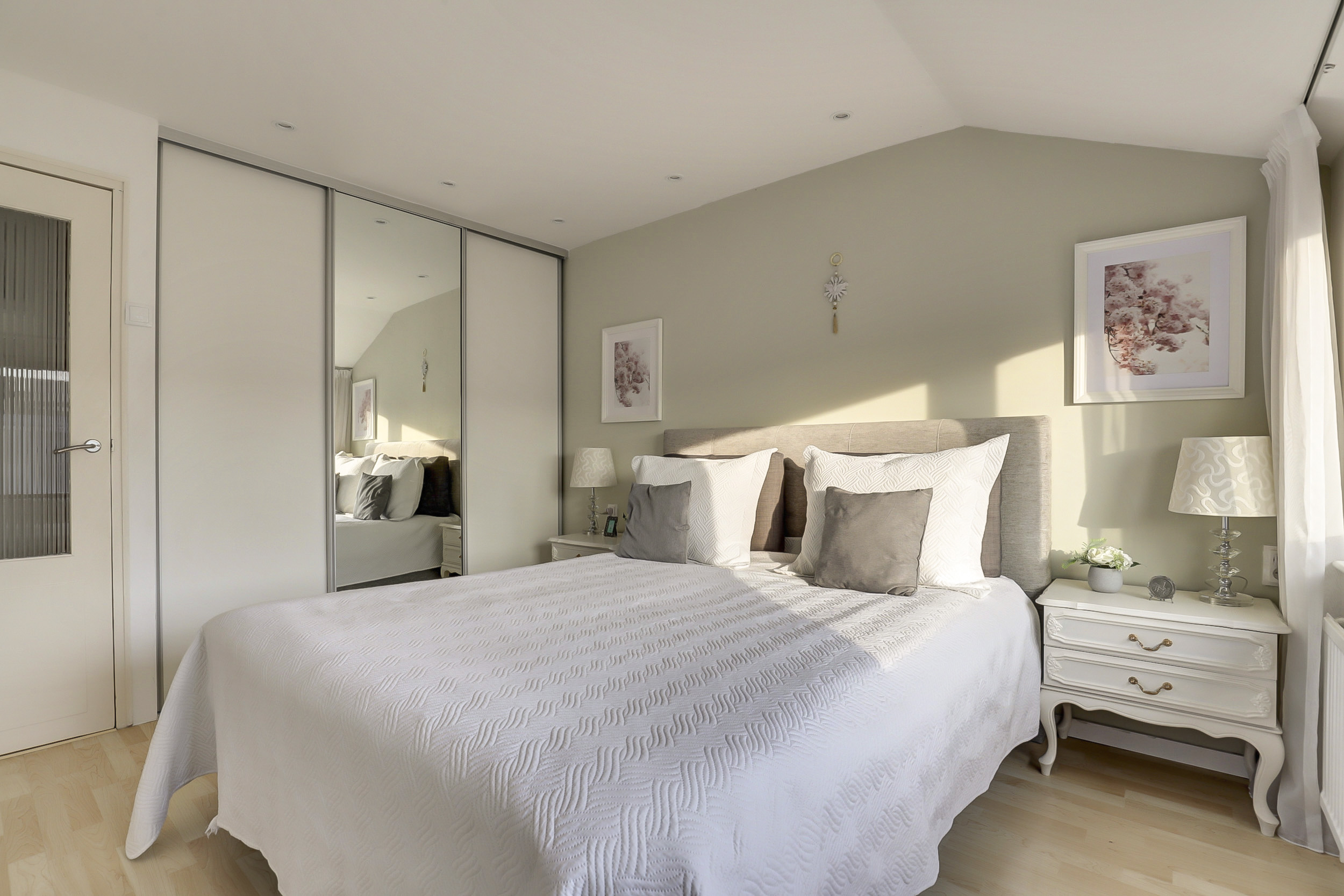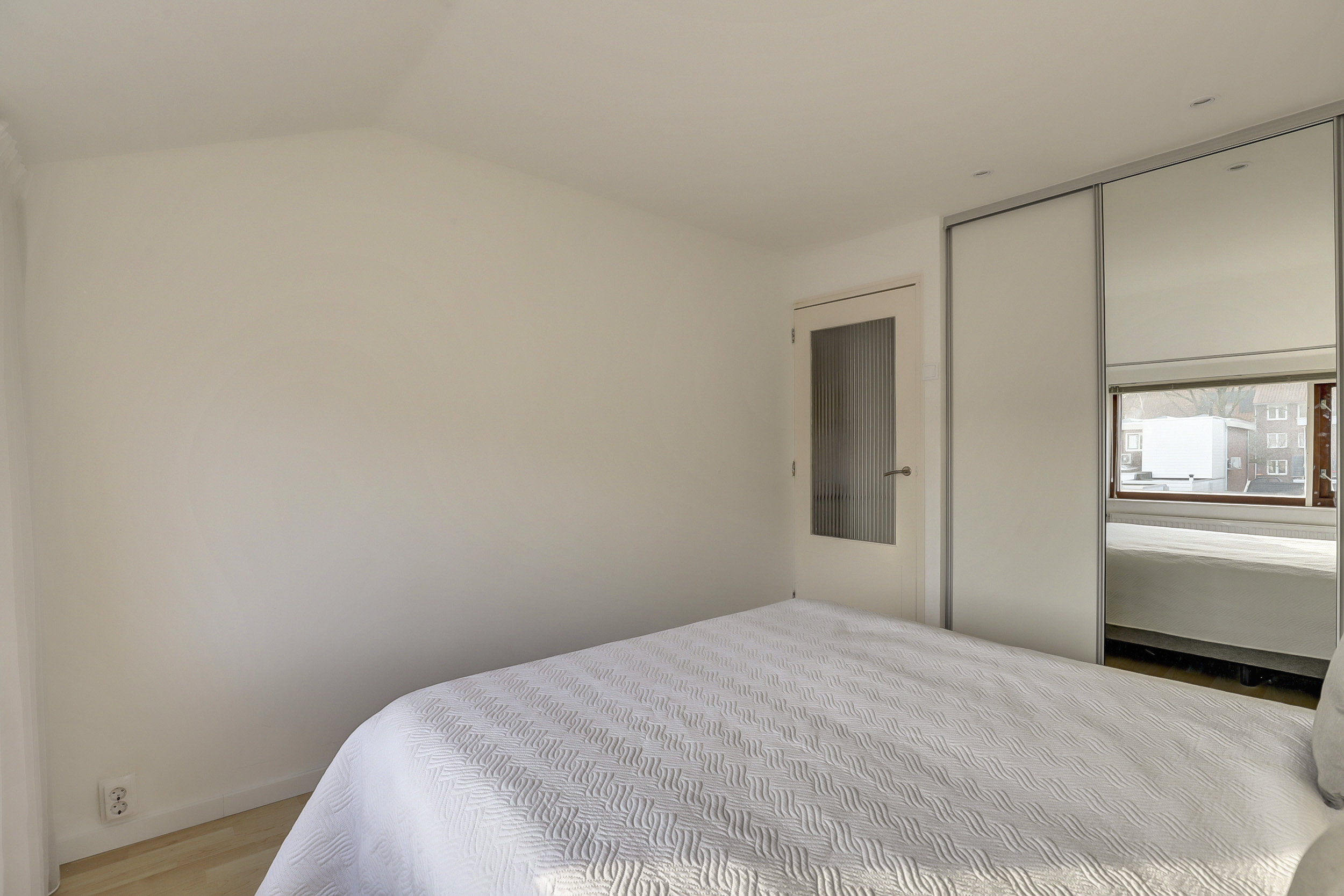 Aan de voorzijde van de woning bevindt zich een slaapkamer met een inbouwkast. Aan de achterzijde ligt de tweede slaapkamer, die beschikt over een ingebouwde schuifwandkast, wat zorgt voor praktische en royale bergruimte.