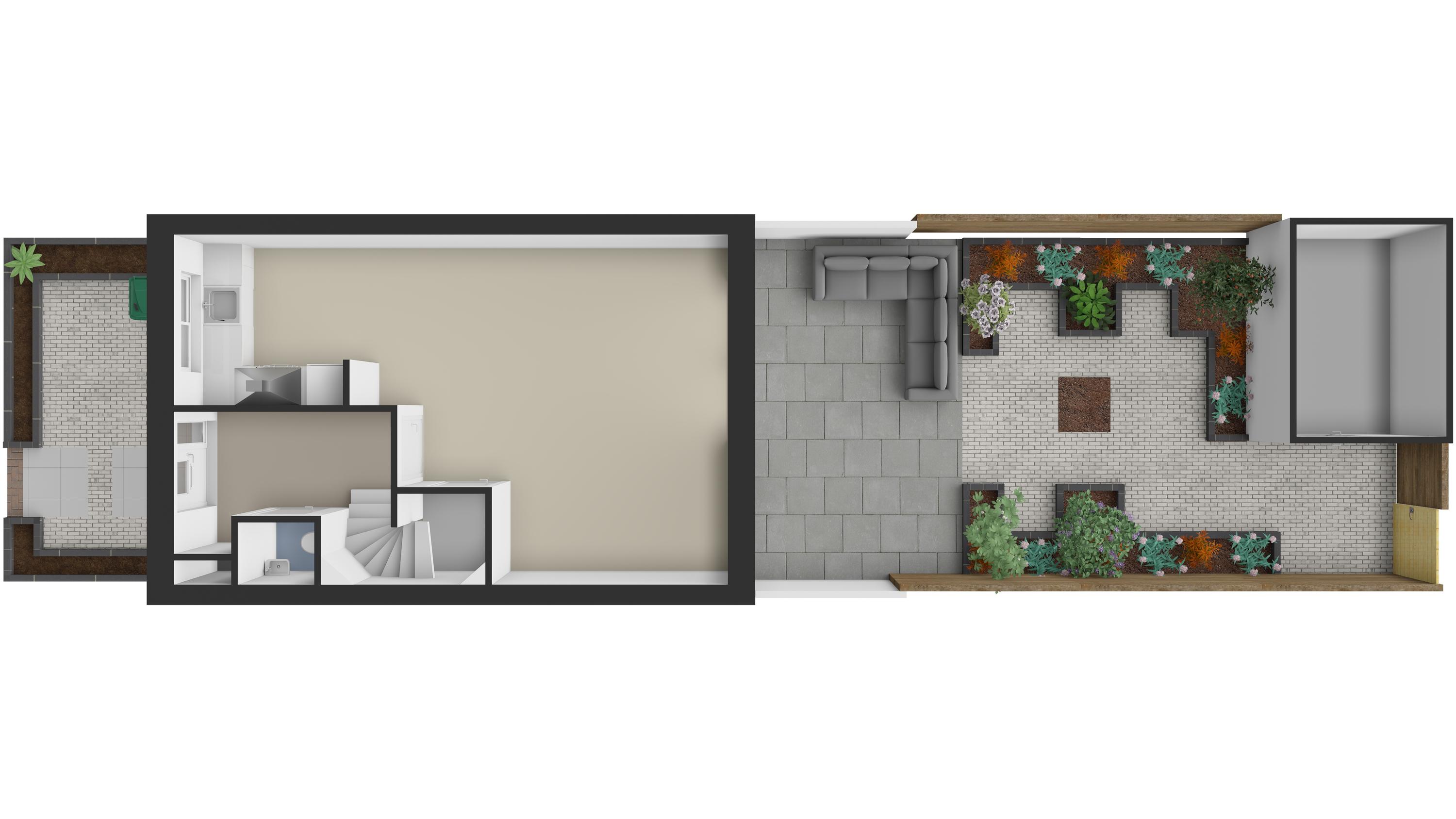 - Onderhoudsvriendelijke tuin met berging en achterom