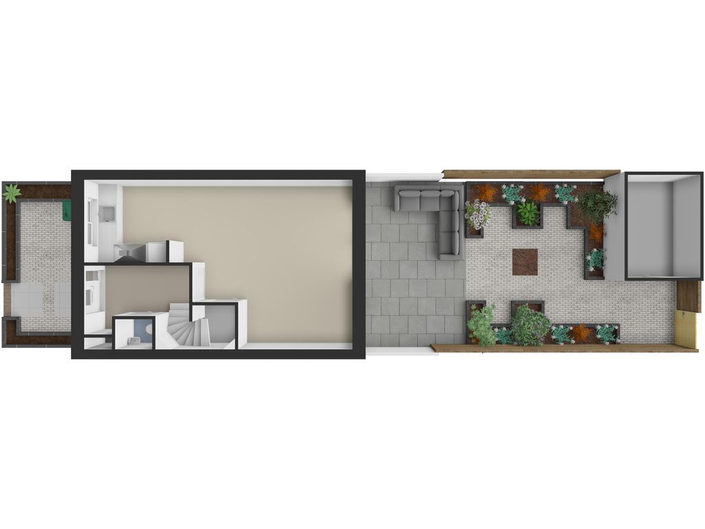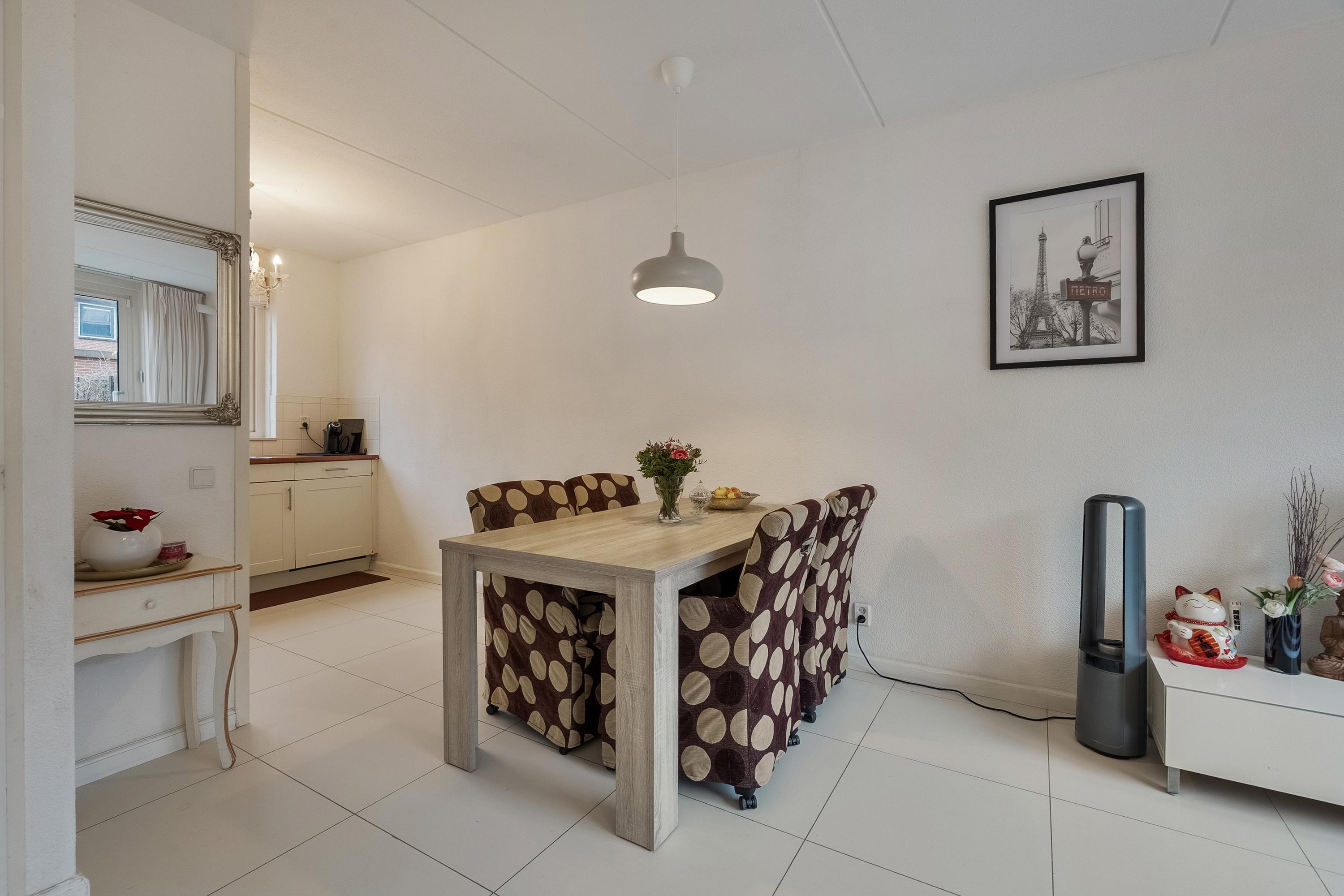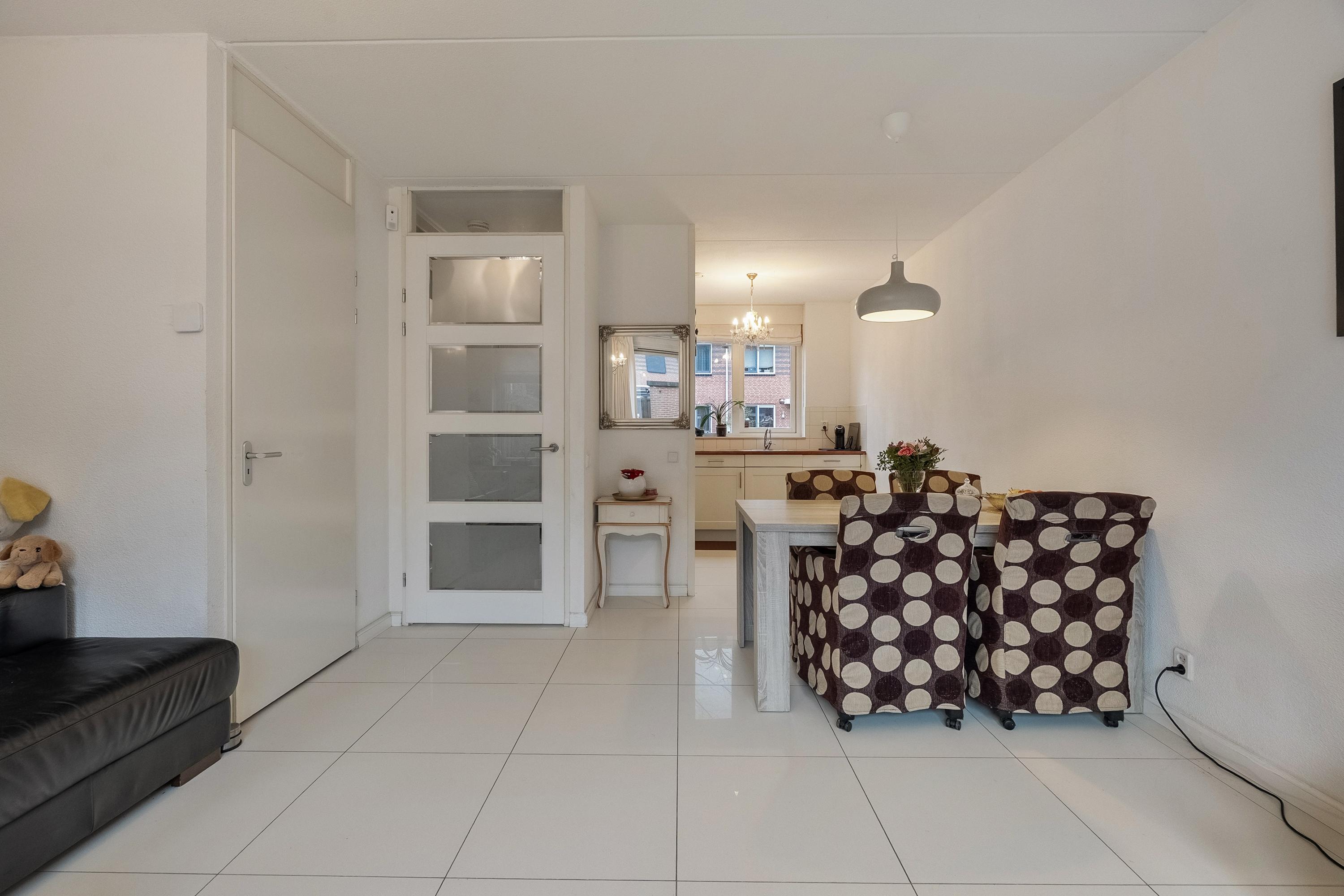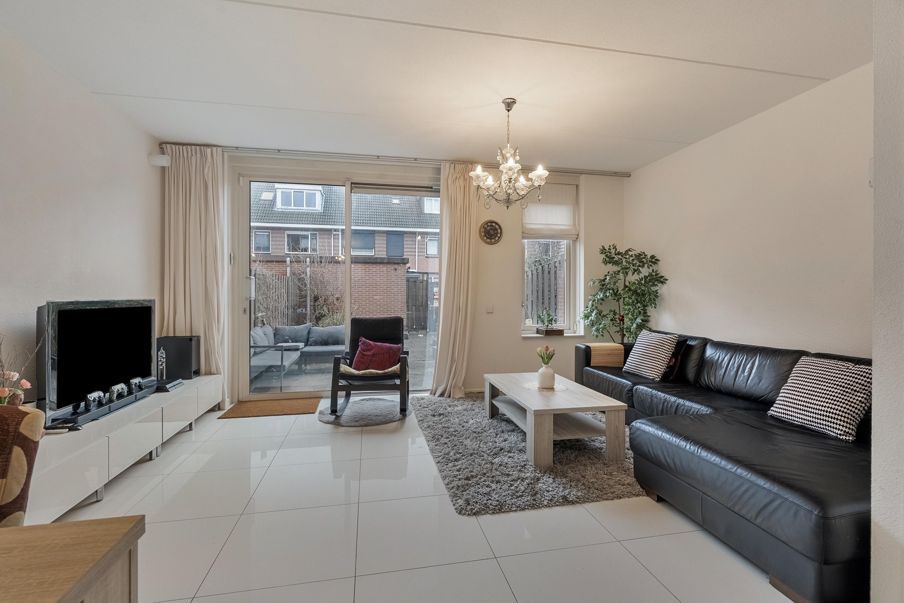 De lichte en sfeervolle woonkamer is tuingericht en beschikt over een praktische trapkast. Via de schuifpui heeft u directe toegang tot de achtertuin. Daarnaast is de woonkamer voorzien van een elektrisch bedienbaar zonnescherm, wat extra comfort biedt tijdens zonnige dagen.