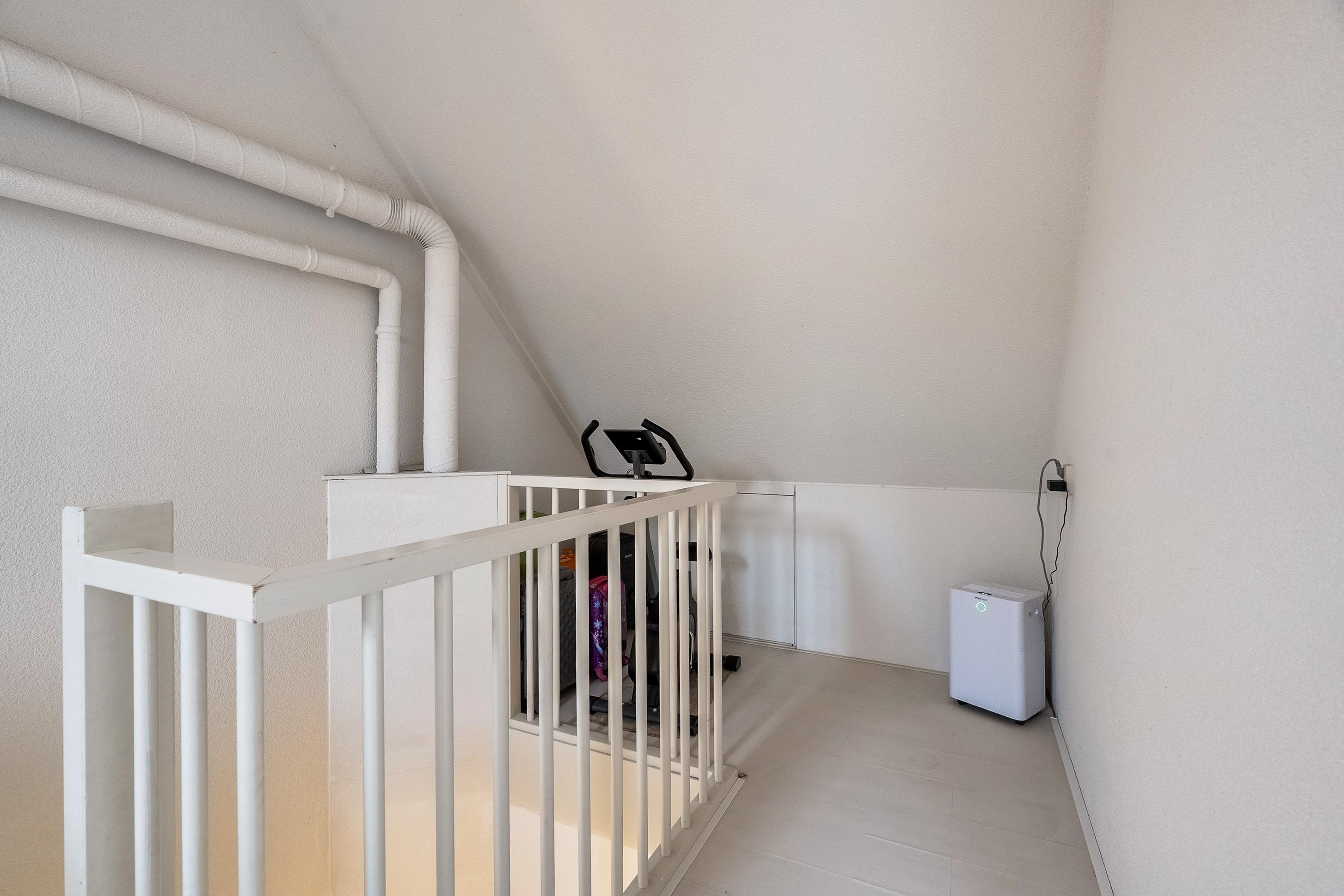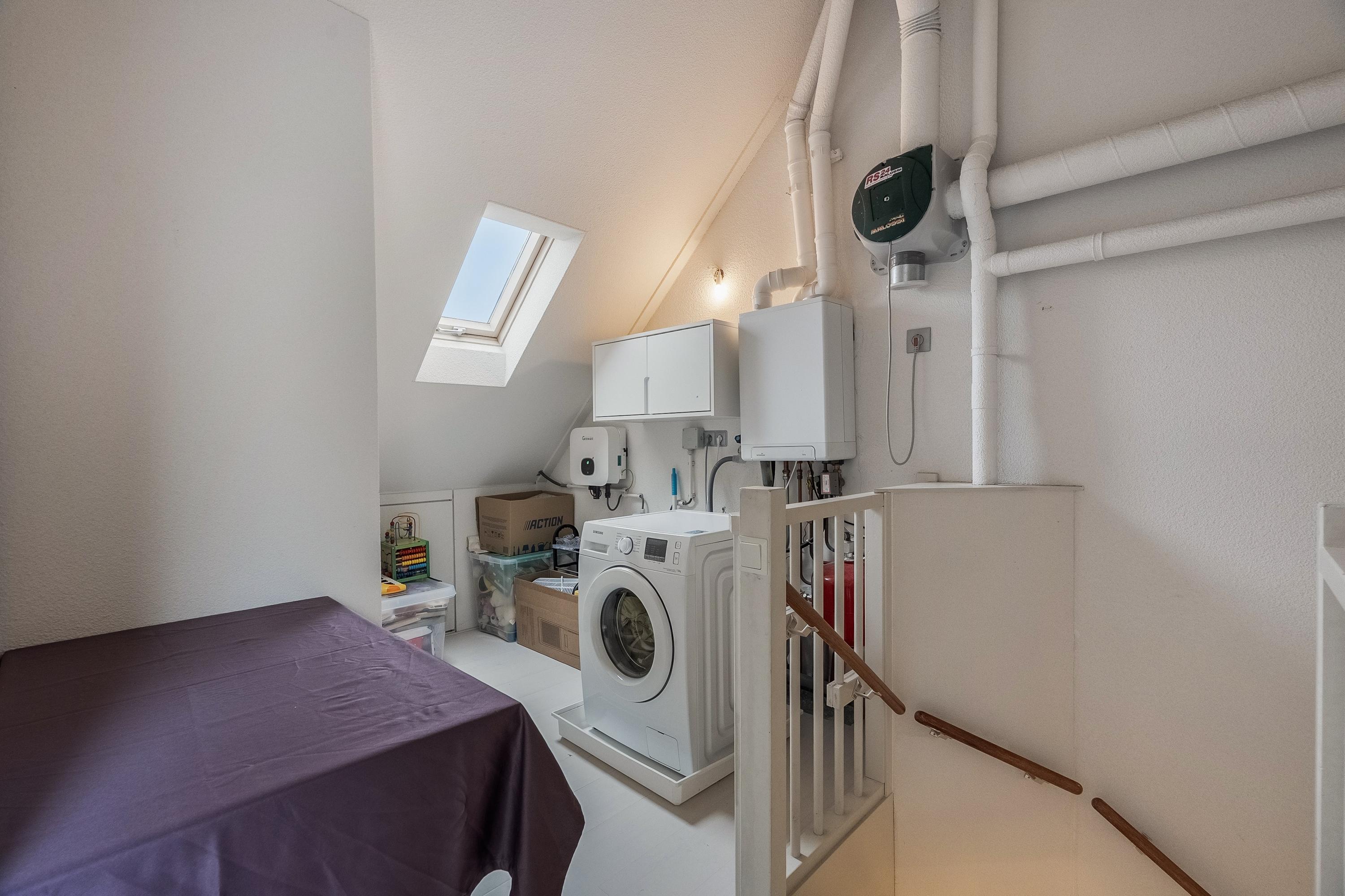 De tweede verdieping beschikt over een voorzolder met dakraam, waar zich de opstelling van de mechanische ventilatie-unit, de wasmachine- en drogeraansluiting, omvormer voor de zonnepanelen, knieschotbergruimte en de HR C.V. combiketel (2022) bevinden.