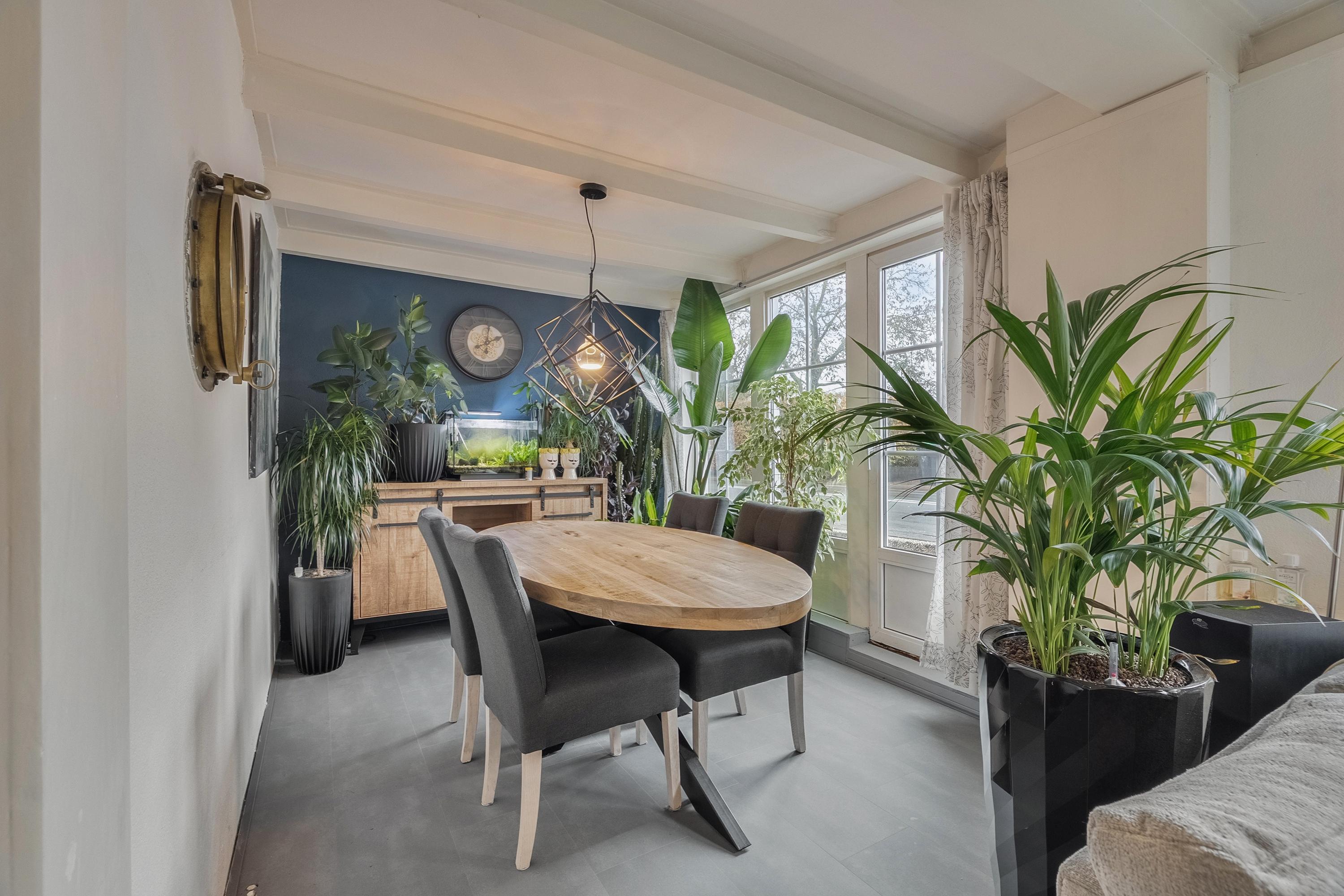 Hoewel er een fijne eethoek in de woonkamer is, is de kans groot dat je vaker in de keuken zit: dit is met recht een woonkeuken. Je kunt hier eenvoudig met de hele familie eten, maar je zit hier bijvoorbeeld ook heerlijk een paar uur thuis te werken. Echt een lichte en comfortabele plek.