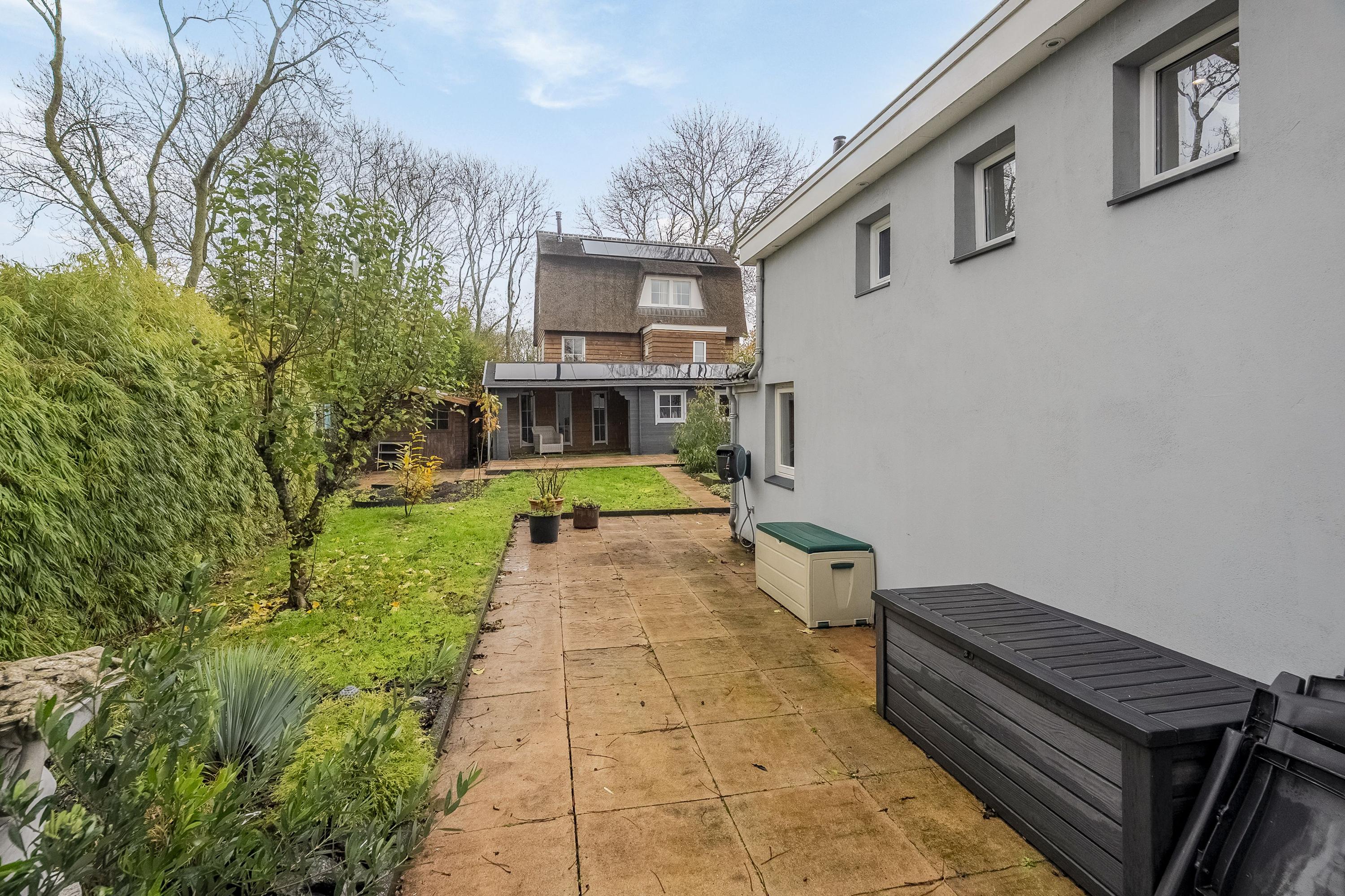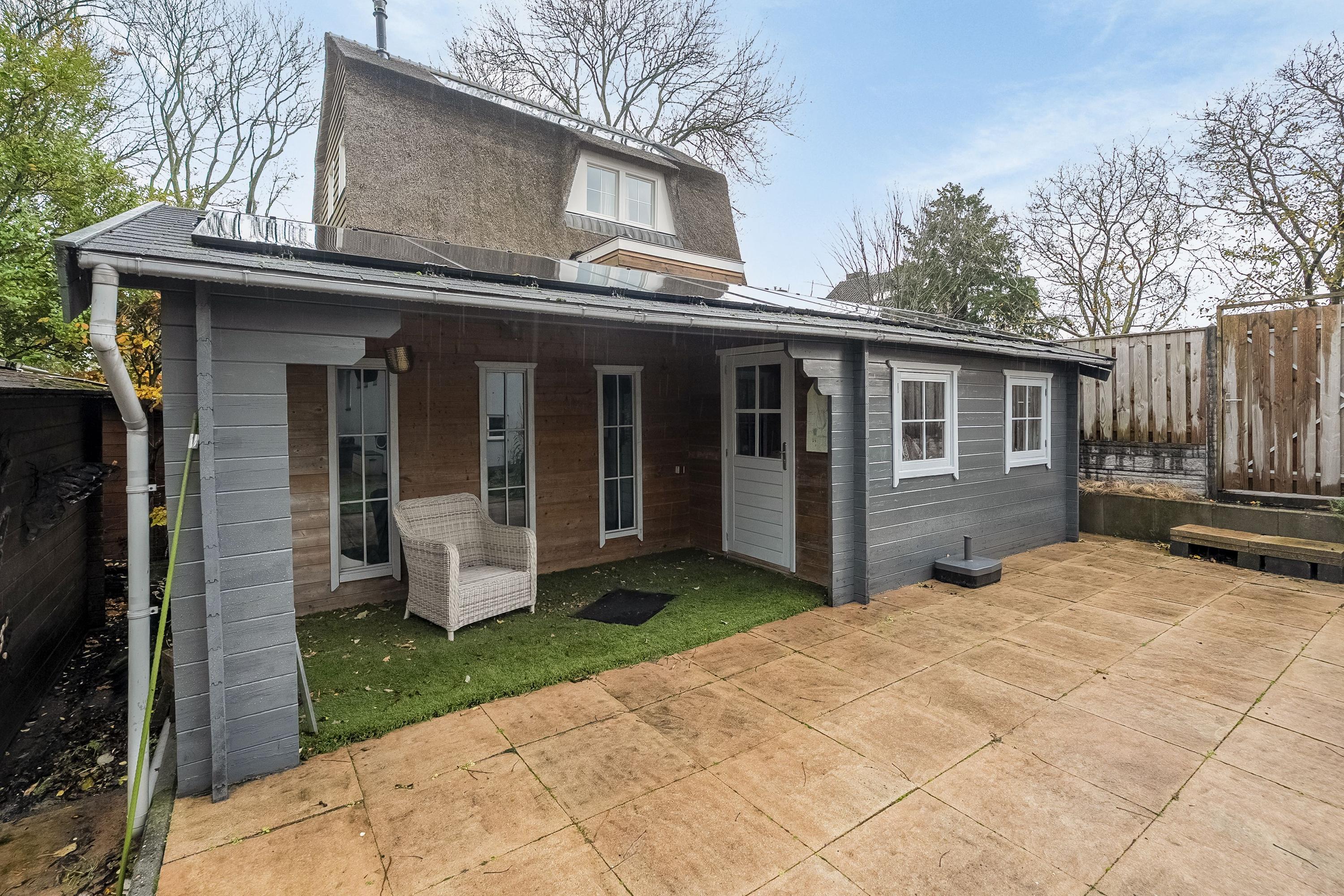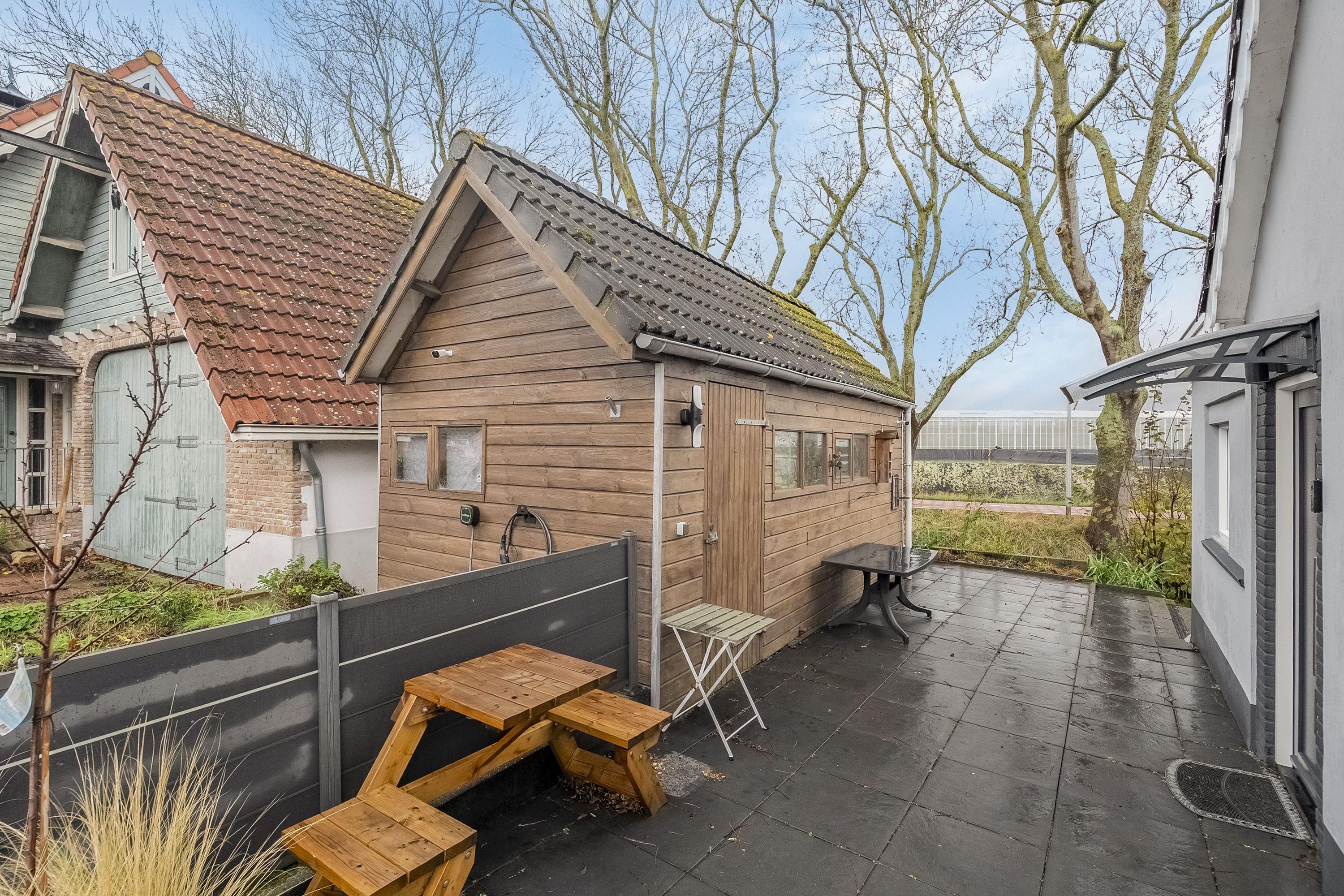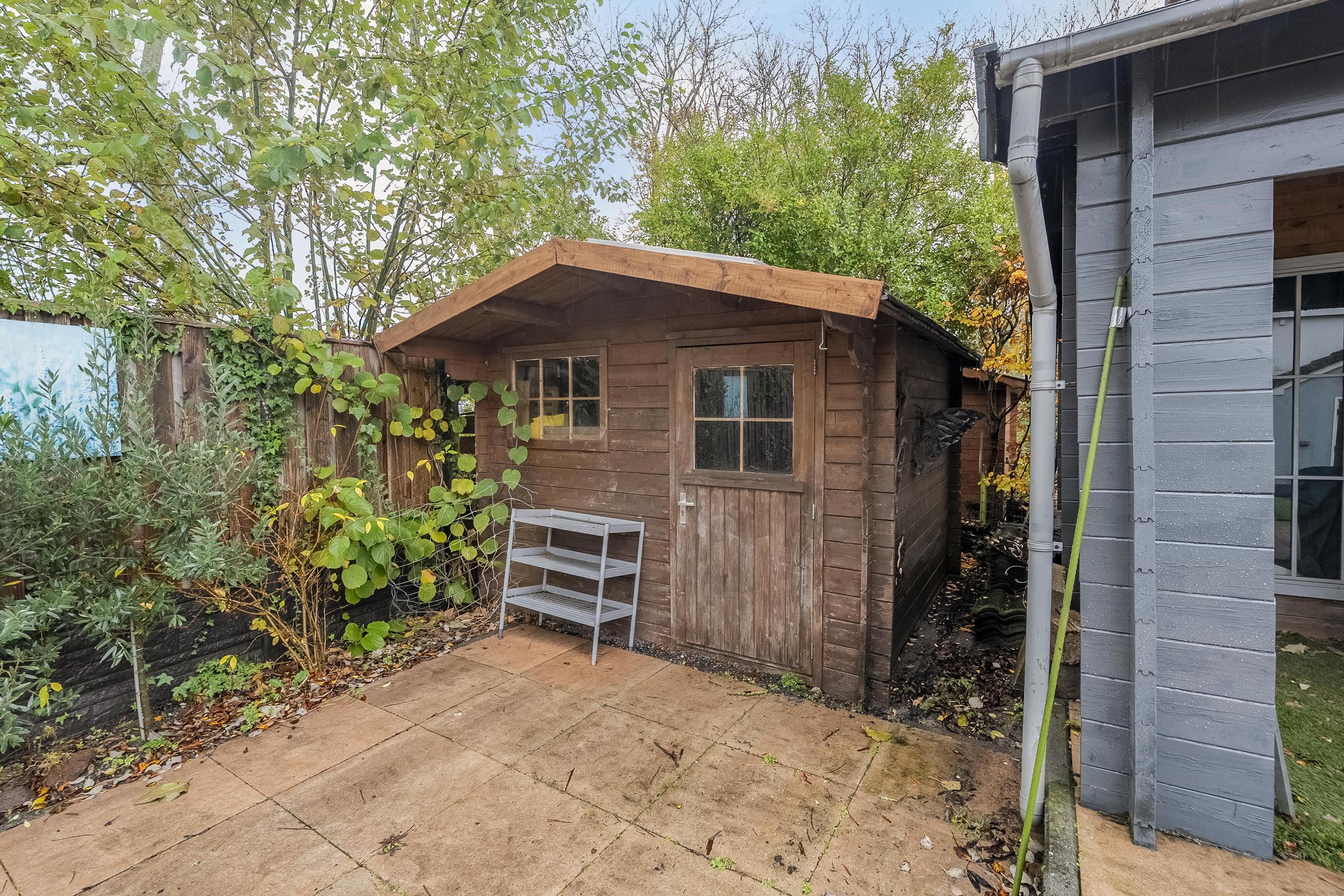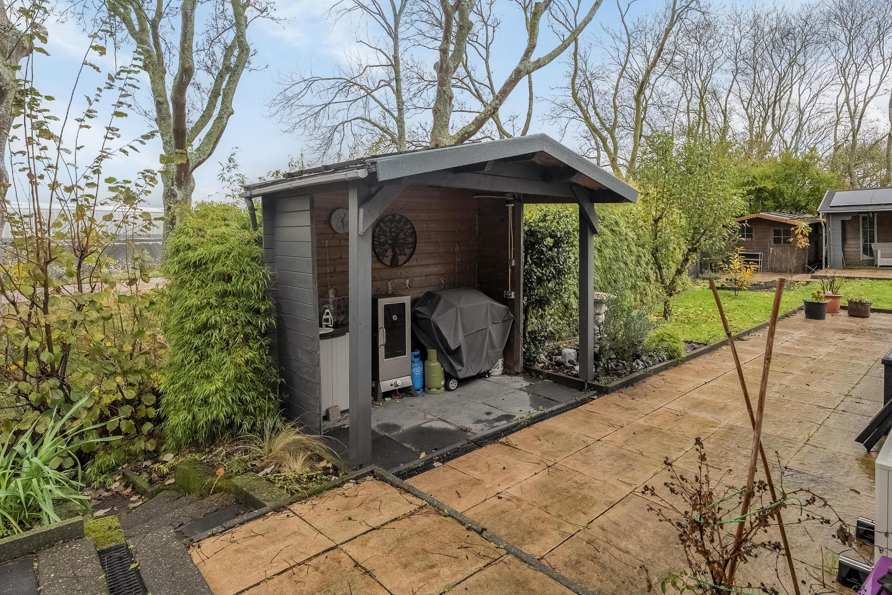 De tuin kunnen we zeker even rondstruinen – wat een ruimte! Er staan twee grote bijgebouwen: één van hout en één van steen met houten afwerking. Beide bieden ontzettend veel mogelijkheden om iets moois te creëren. Denk aan een volledig zelfvoorzienend tuinhuis waar je kunt werken én zelfs kunt slapen. Het stenen bijgebouw met vliering is riant en opvallend hoog: ideaal voor de thuisklusser die graag urenlang ongestoord wil werken. Ook zakelijk kan deze ruimte een uitkomst bieden wanneer je veel apparatuur of materiaal nodig hebt. Kom vooral kijken en laat je inspireren!