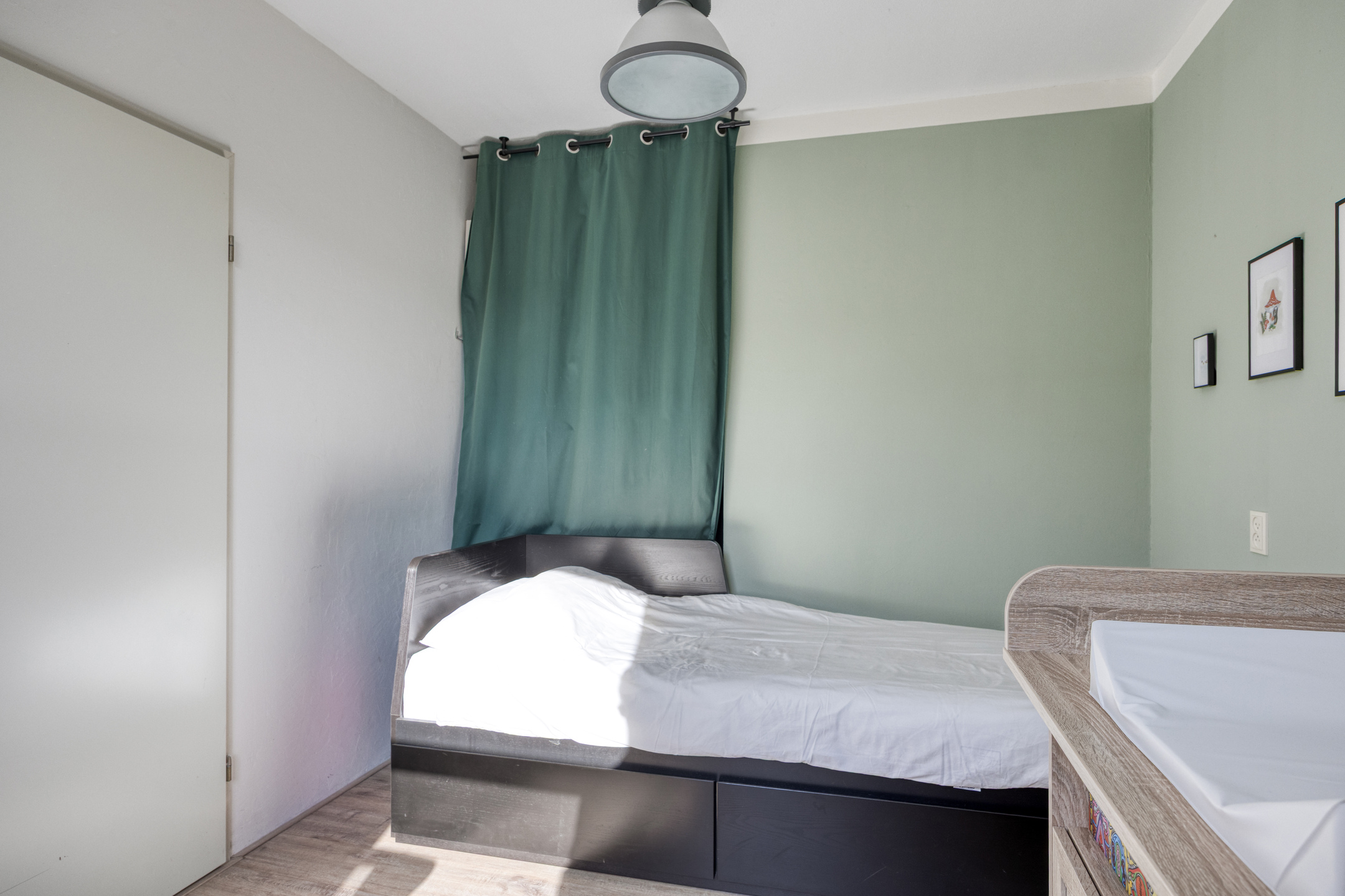 Dan lopen we terug de hal in, waar we de tweede slaapkamer treffen – perfect als kinderkamer, werkplek of logeerkamer.