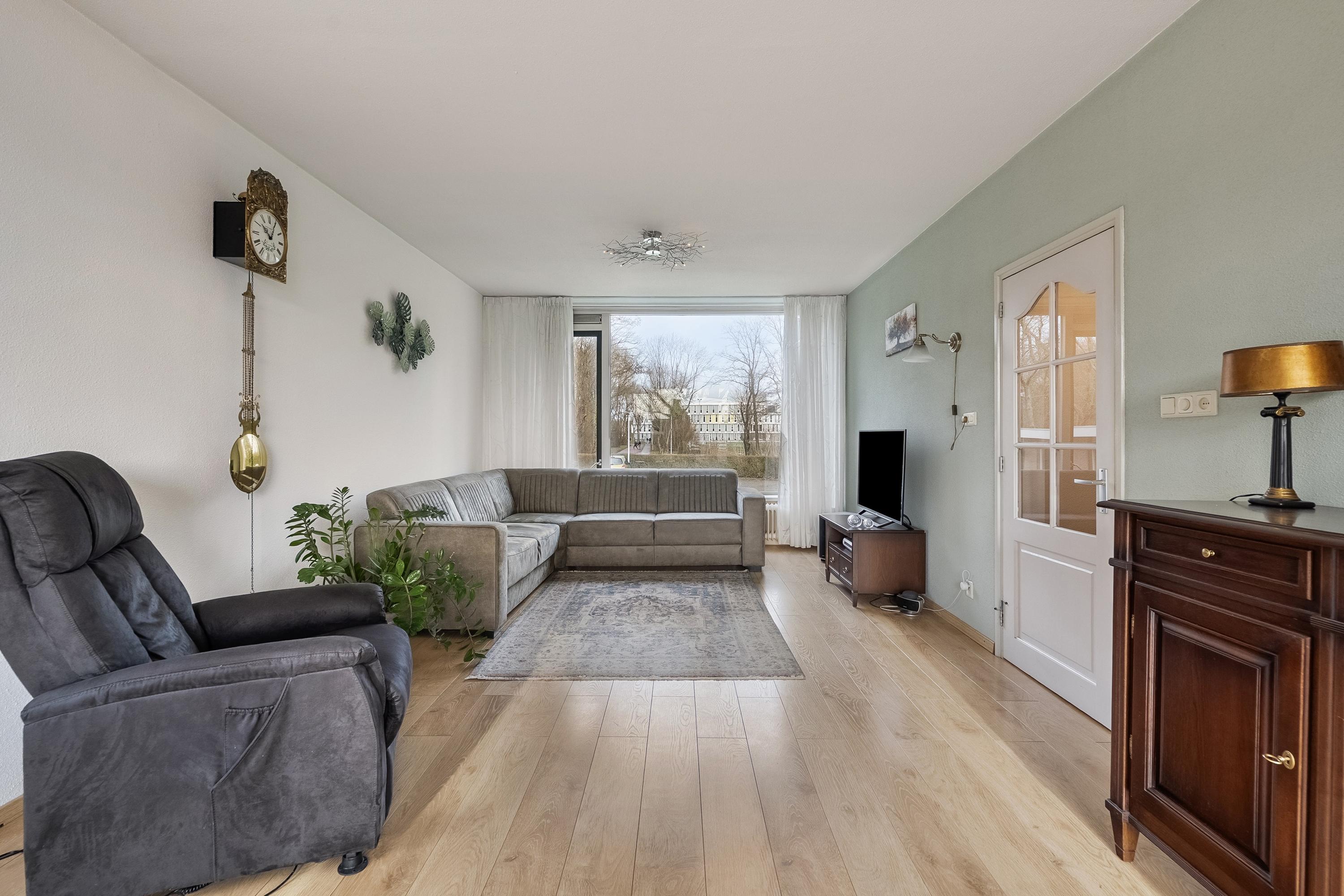Royale lichte doorzon woonkamer (ca. 37 m2) voorzien van een duurzame laminaatvloer. De grote raampartijen zorgen voor volop aangenaam daglicht. De woonkamer biedt voldoende ruimte voor een gezellige eethoek bij de keuken. De woonkamer is verder aan de achterzijde voorzien van elektrisch bedienbaar zonnescherm. Door middel van een balkondeur heeft u toegang tot het zonnige balkon.