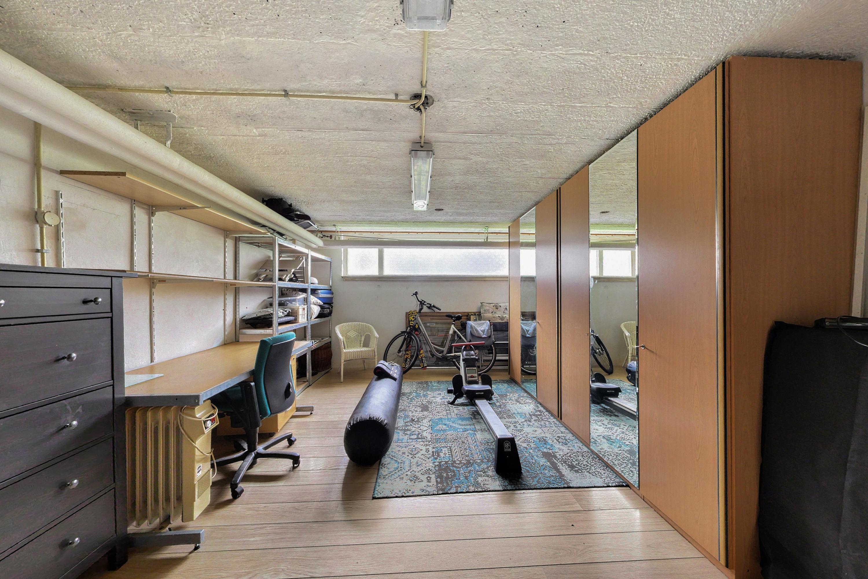 - Eigen, zeer ruime berging in de onderbouw met o.a. de wasmachine/drogeraansluiting;
