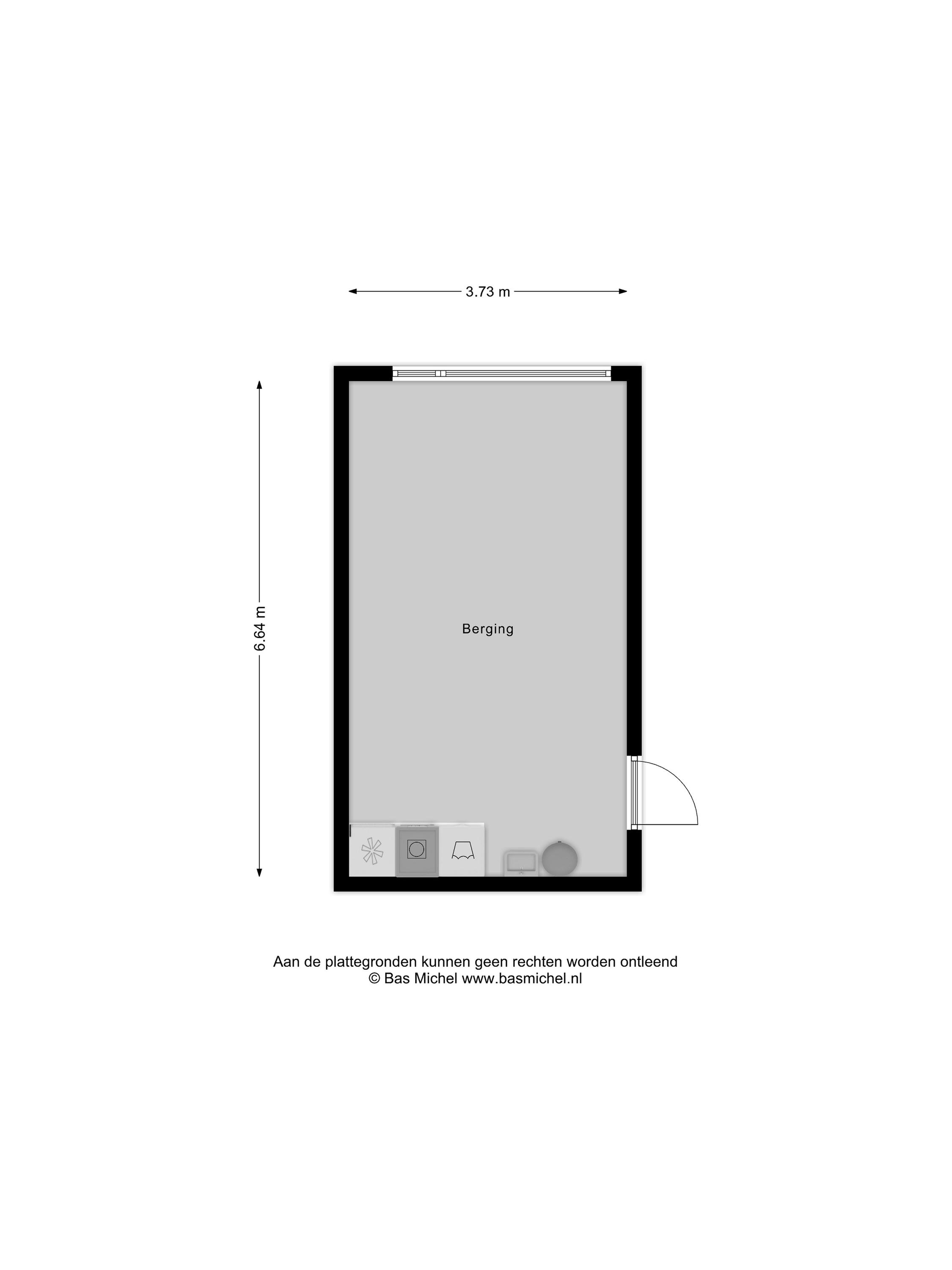 Ruime berging (ca. 25 m2) met de wasmachine- en drogeraansluiting, een boiler en een handige uitstortgootsteen met een koudwaterkraan. Deze ruimte is afgewerkt met laminaatvloer.