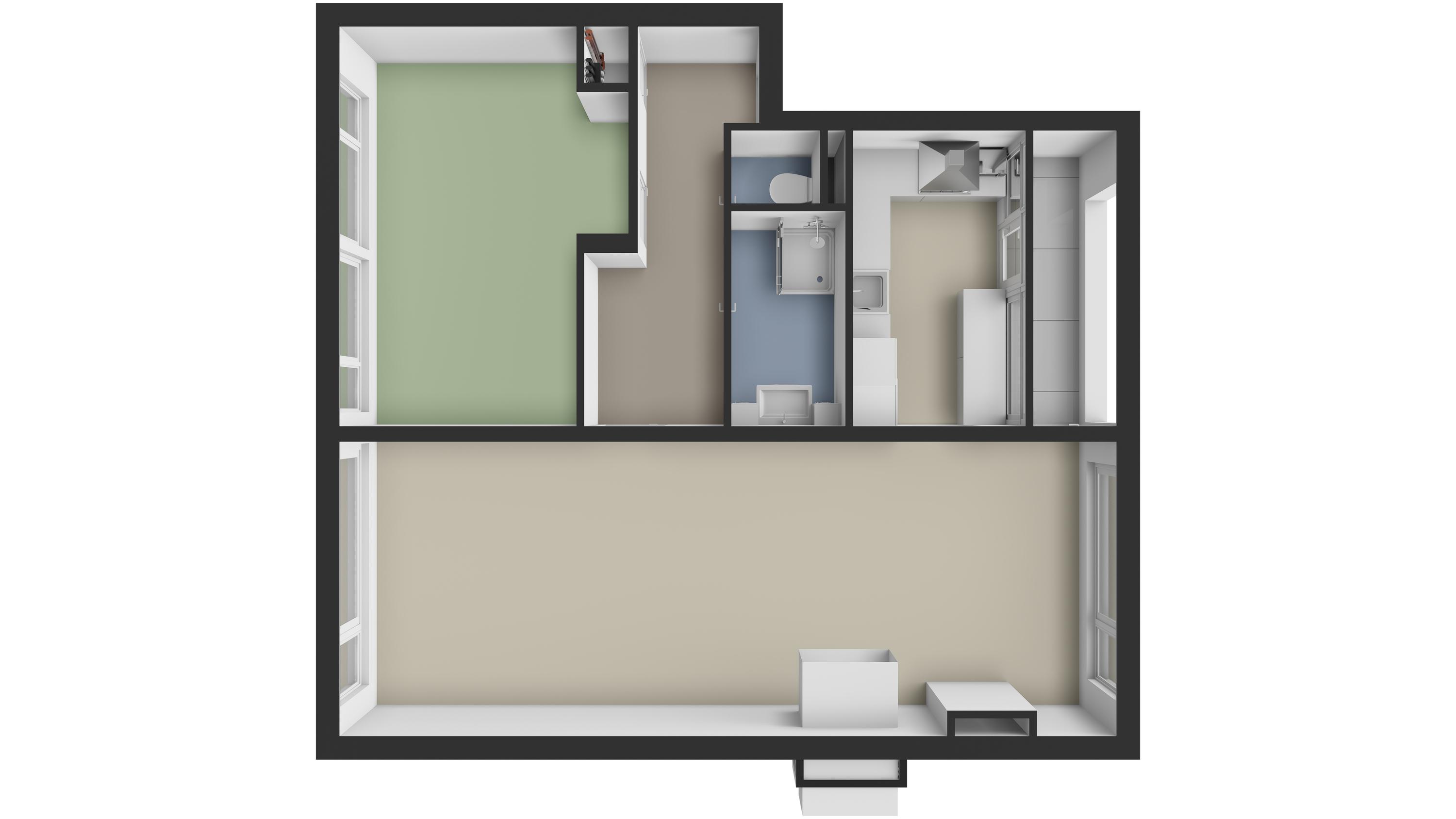 - Licht en zeer ruim 2-kamer hoekappartement op de 1e woonlaag;