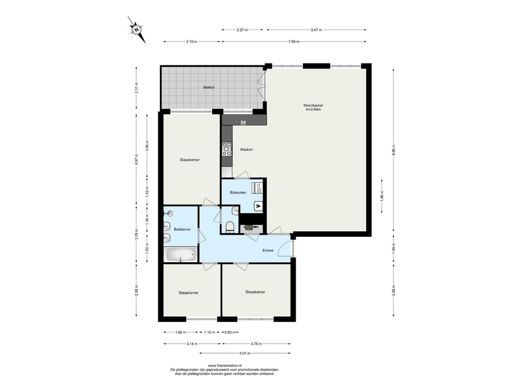 Het appartement beschikt over drie slaapkamers van verschillende formaten. De hoofdslaapkamer van circa zestien vierkante meter biedt meer dan voldoende ruimte voor een groot bed en een ruime garderobekast. De tweede slaapkamer van circa elf vierkante meter is perfect in te richten als kinderkamer of studeerkamer, terwijl de derde kamer van circa negen vierkante meter zich uitstekend leent als logeerkamer of thuiswerkplek. Zo biedt dit appartement voor ieder gezinslid of iedere woonwens een passende ruimte. Nagenoeg de gehele woning is voorzien van een duurzame laminaatvloer.