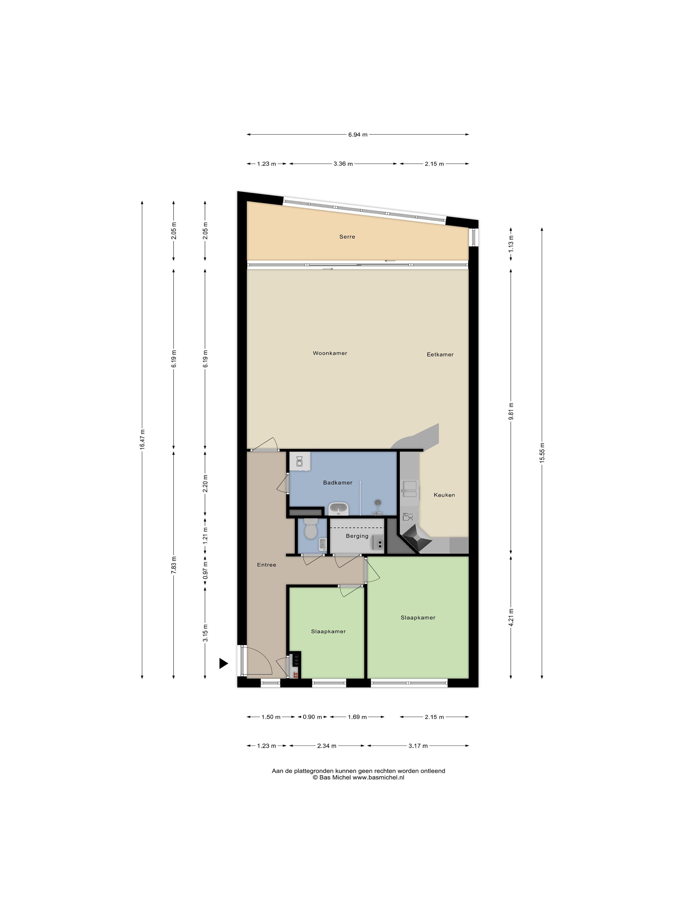 De royale en lichte woonkamer vormt het centrale leefgedeelte en staat in directe verbinding met de ruime serre. Dankzij de raampartijen over de volledige breedte en de gunstige ligging op het zonnige zuiden fungeert deze serre als een verlengstuk van de woonkamer. Hier geniet u vrijwel de hele dag van zonlicht en een vrij uitzicht over het speelveldje voor het complex. De open keuken, twee ruime slaapkamers en de comfortabele badkamer zorgen samen voor een complete en praktische indeling.