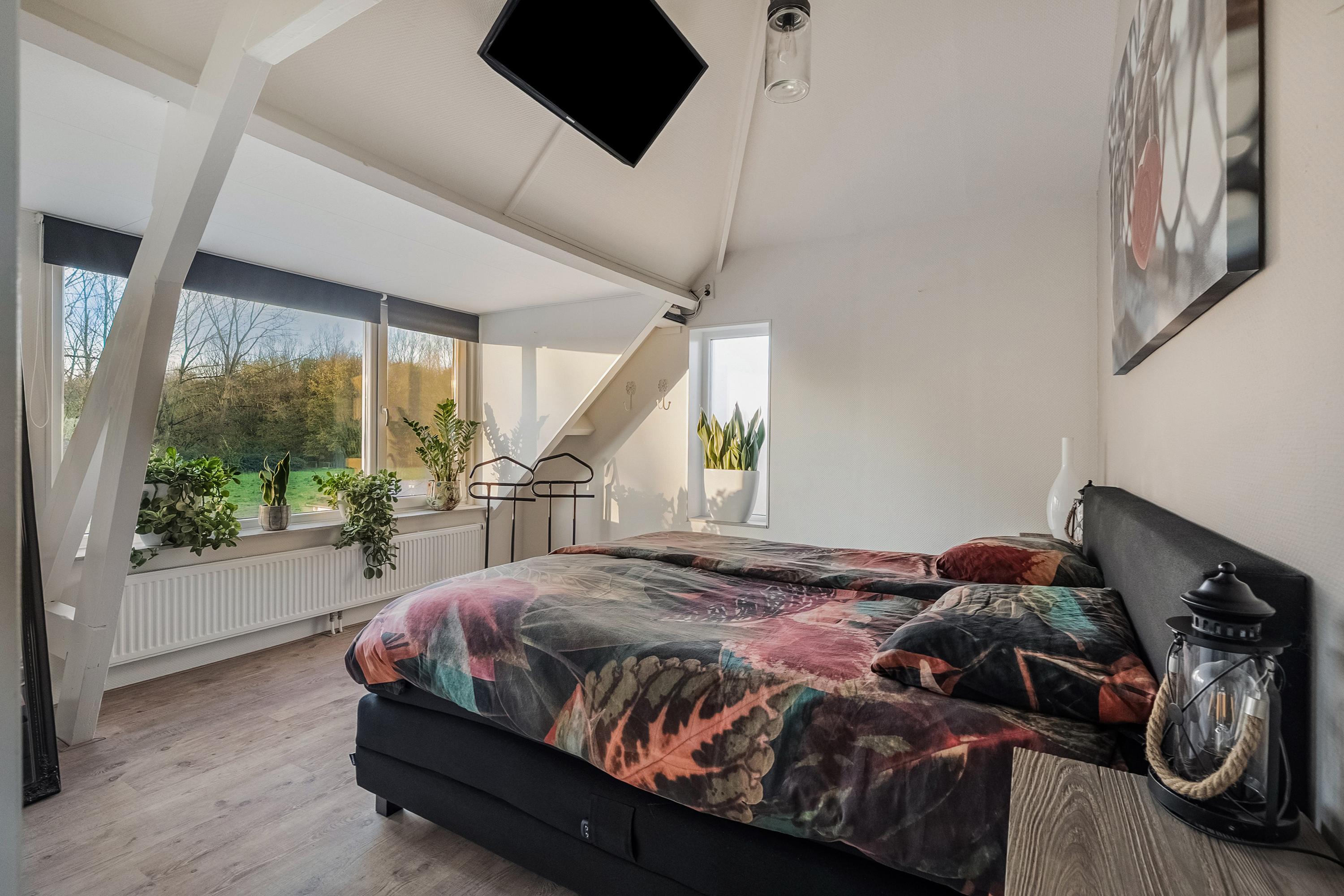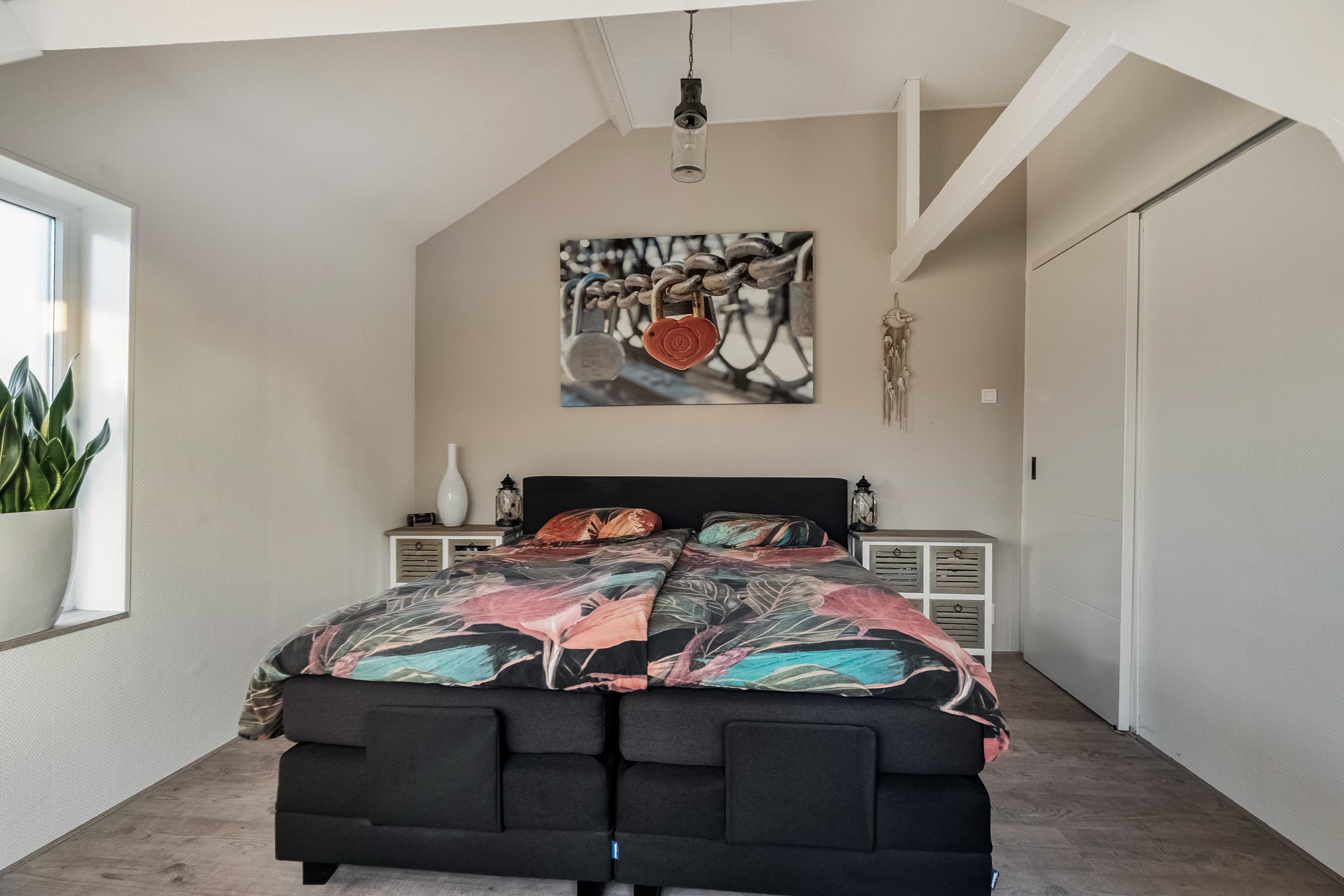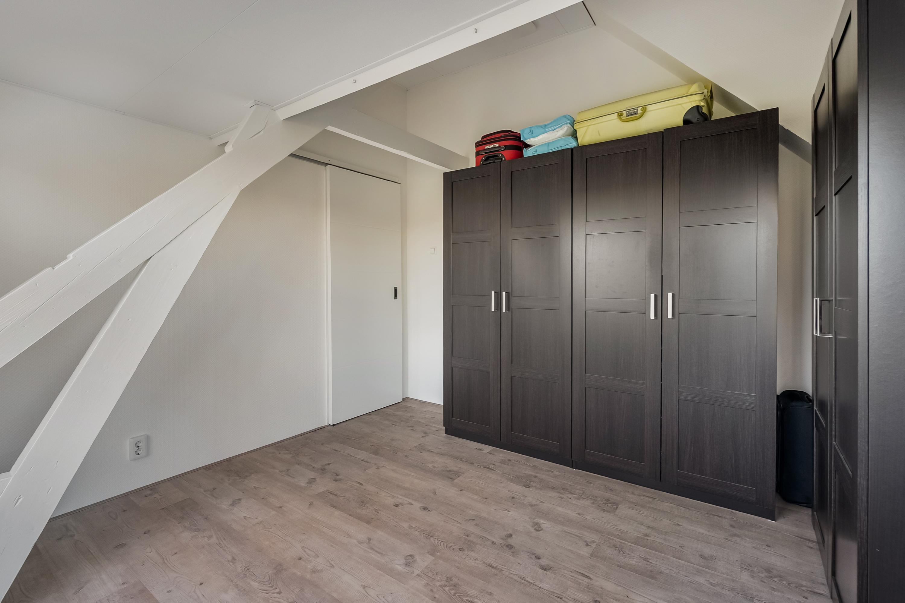 Slaapkamer 1 (ca. 14 m2) is gelegen aan de achterzijde van de woning en beschikt over een deel van de dakkapel aan de achterzijde van de woning.