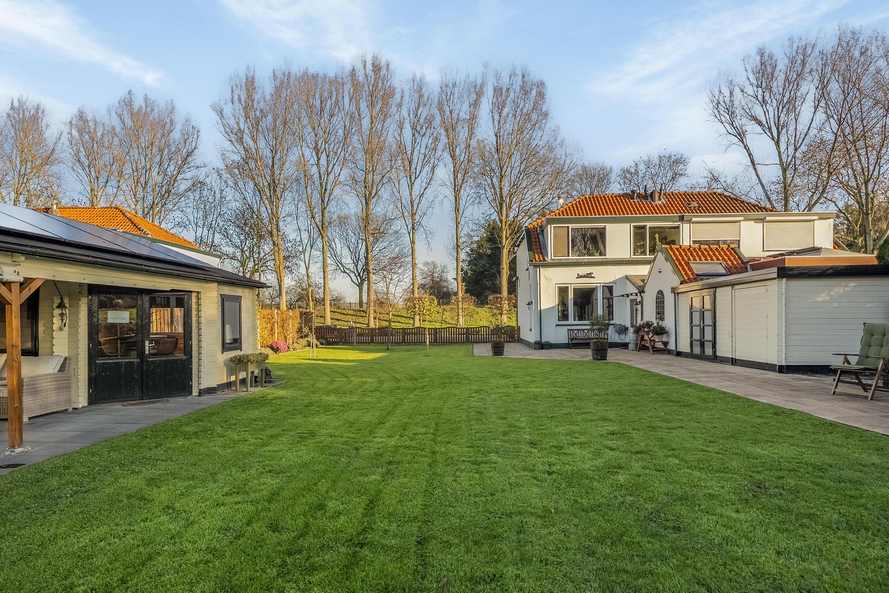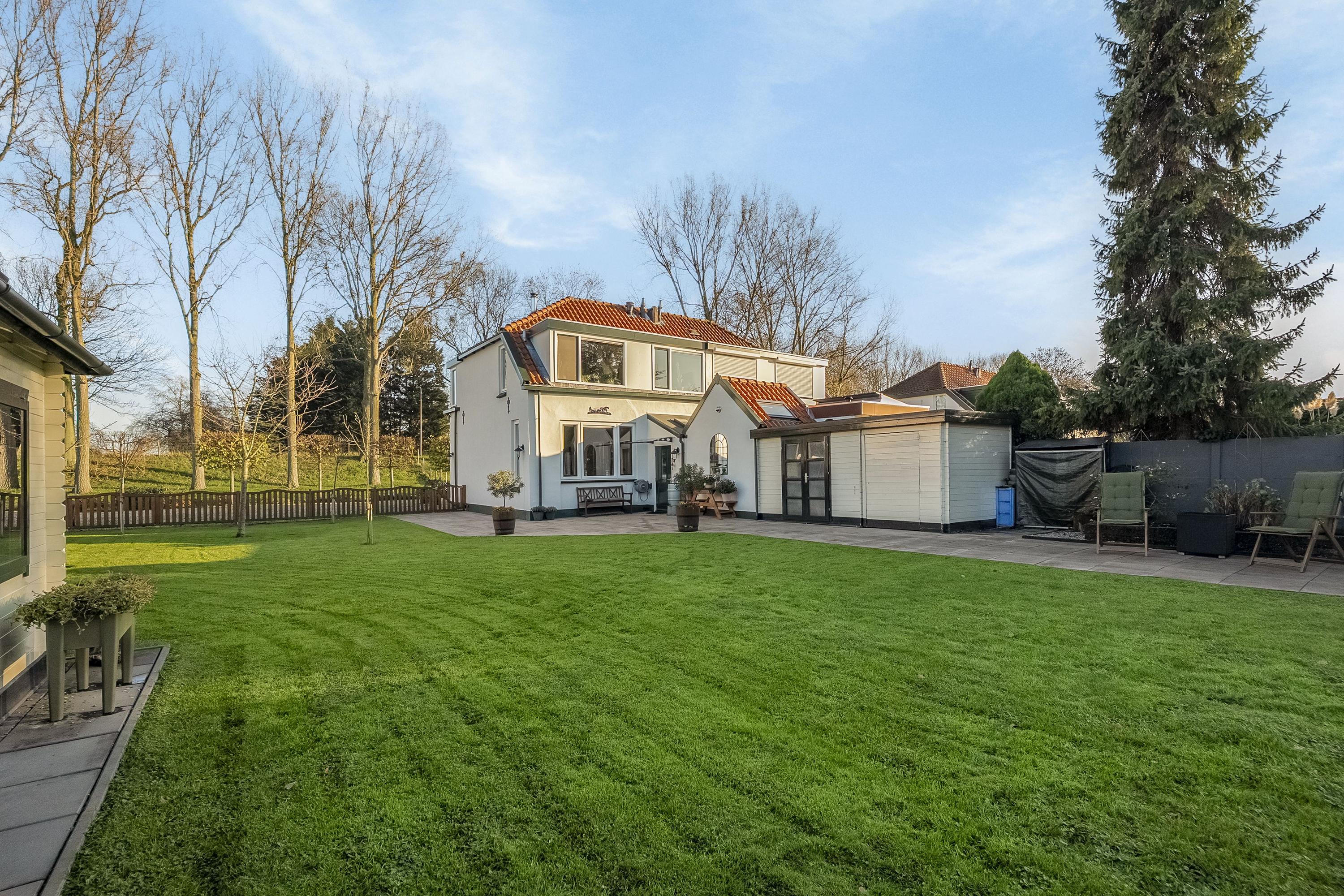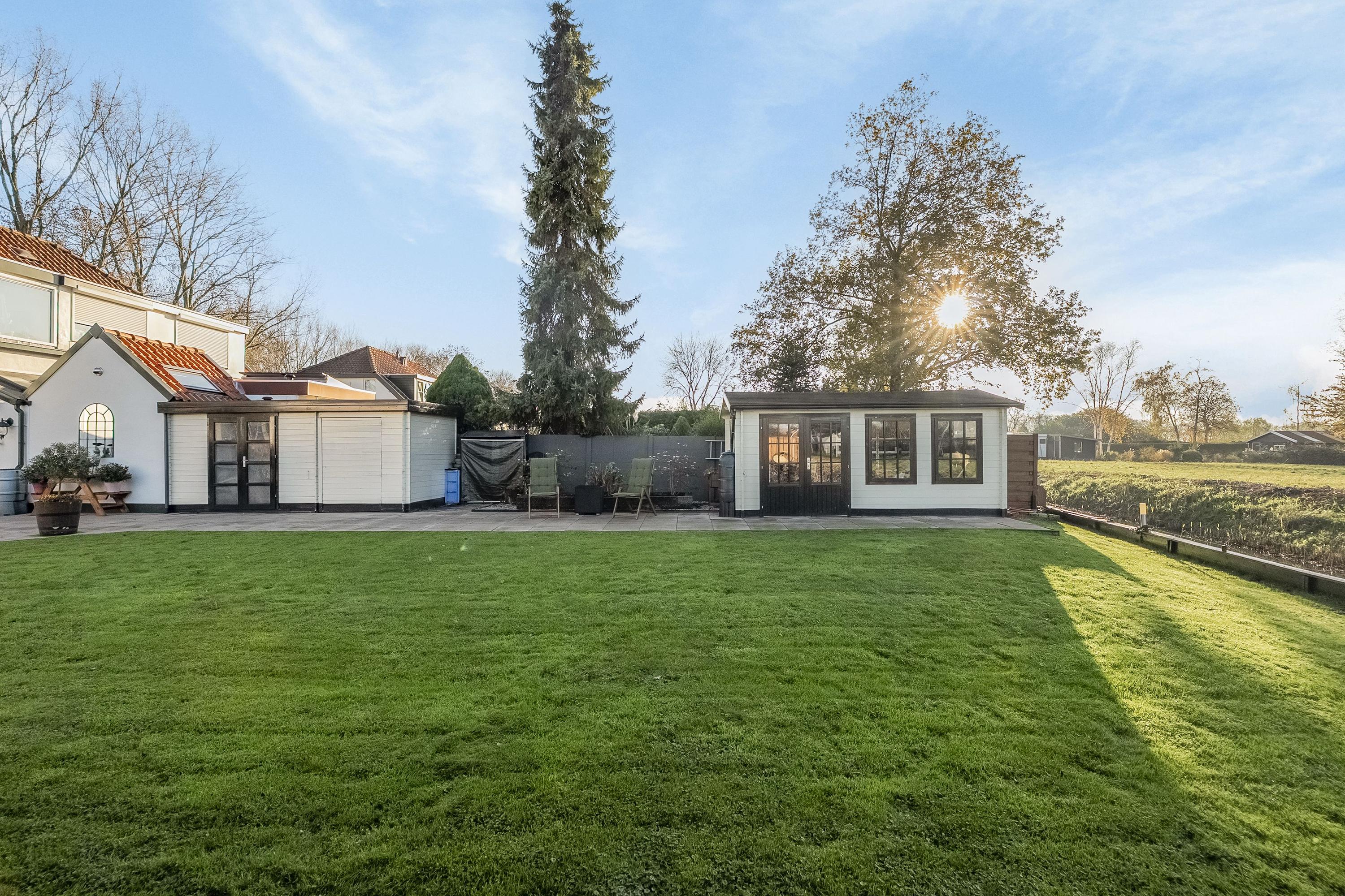 De royale tuin is gelegen op het noordwesten en is fraai aangelegd met terrassen en sierbeplanting. Verder is de tuin voorzien van grasveld, twee bergingen met elektra, een houten schuur en een tuinhuisje met overkapping en een gezellig terras.