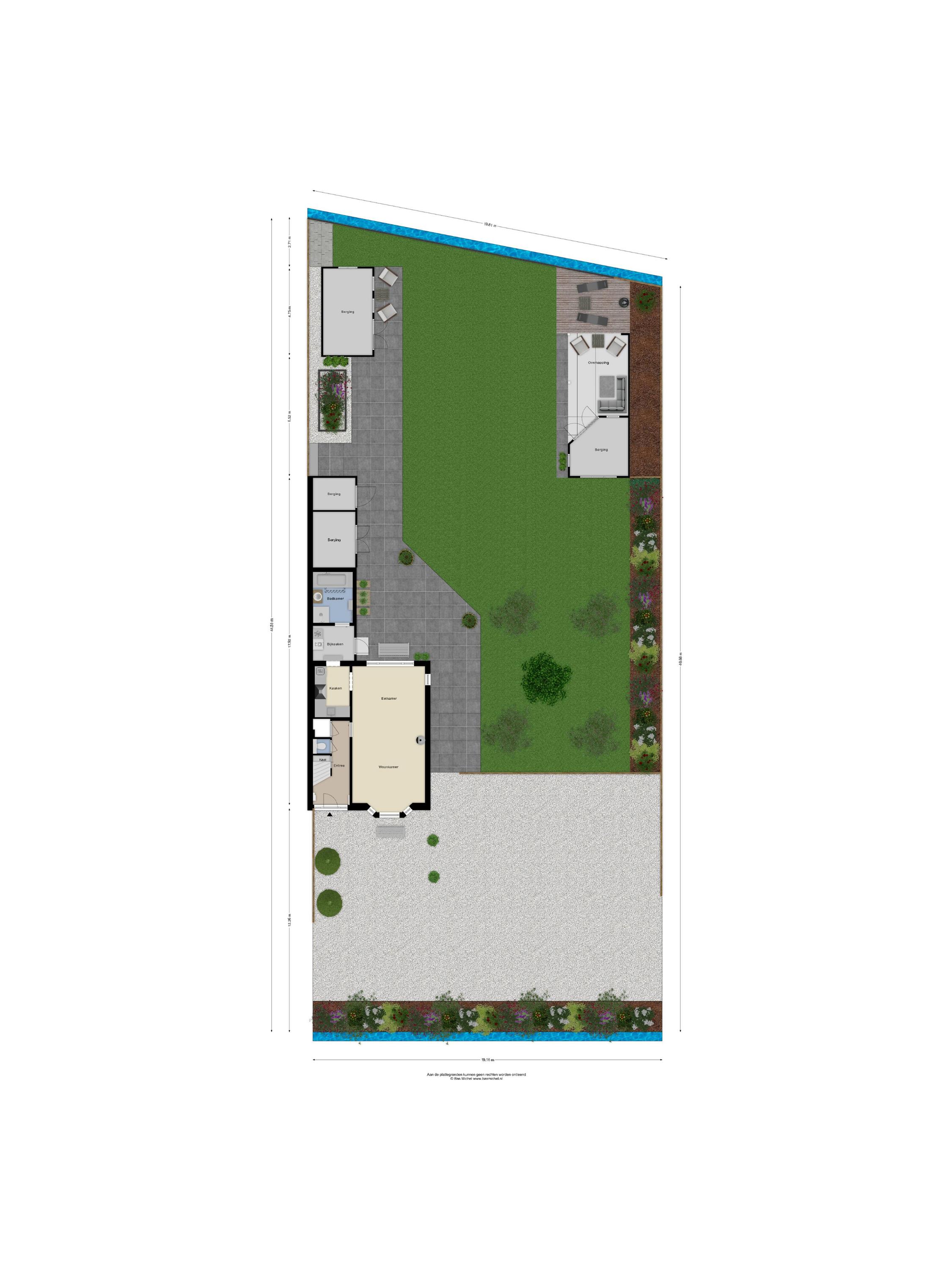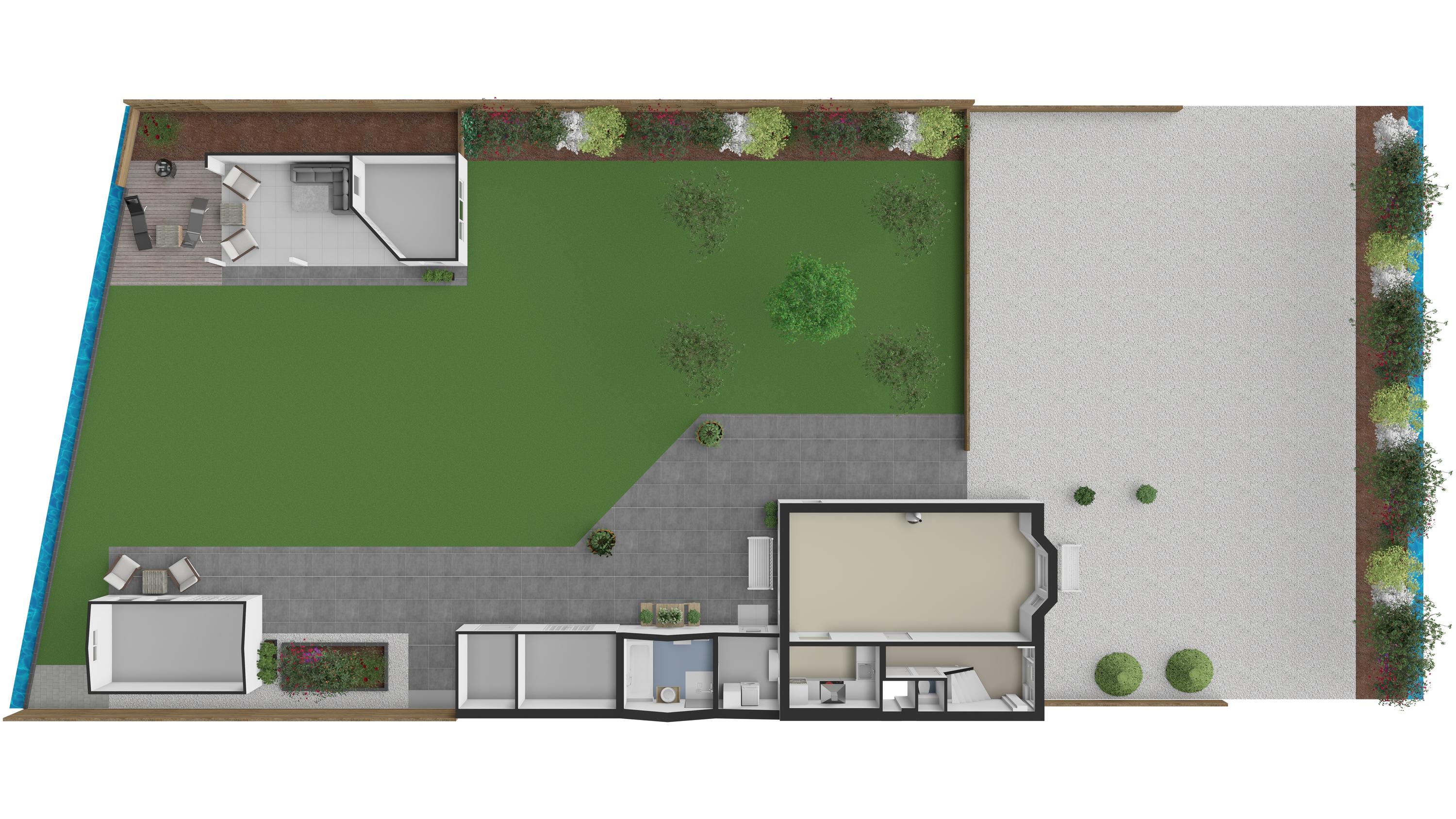 - De tuin is op het noordwesten georiënteerd met verschillende mogelijkheden van zon/schaduw;