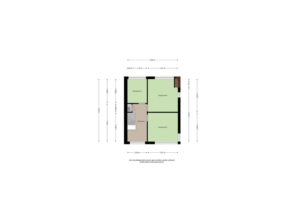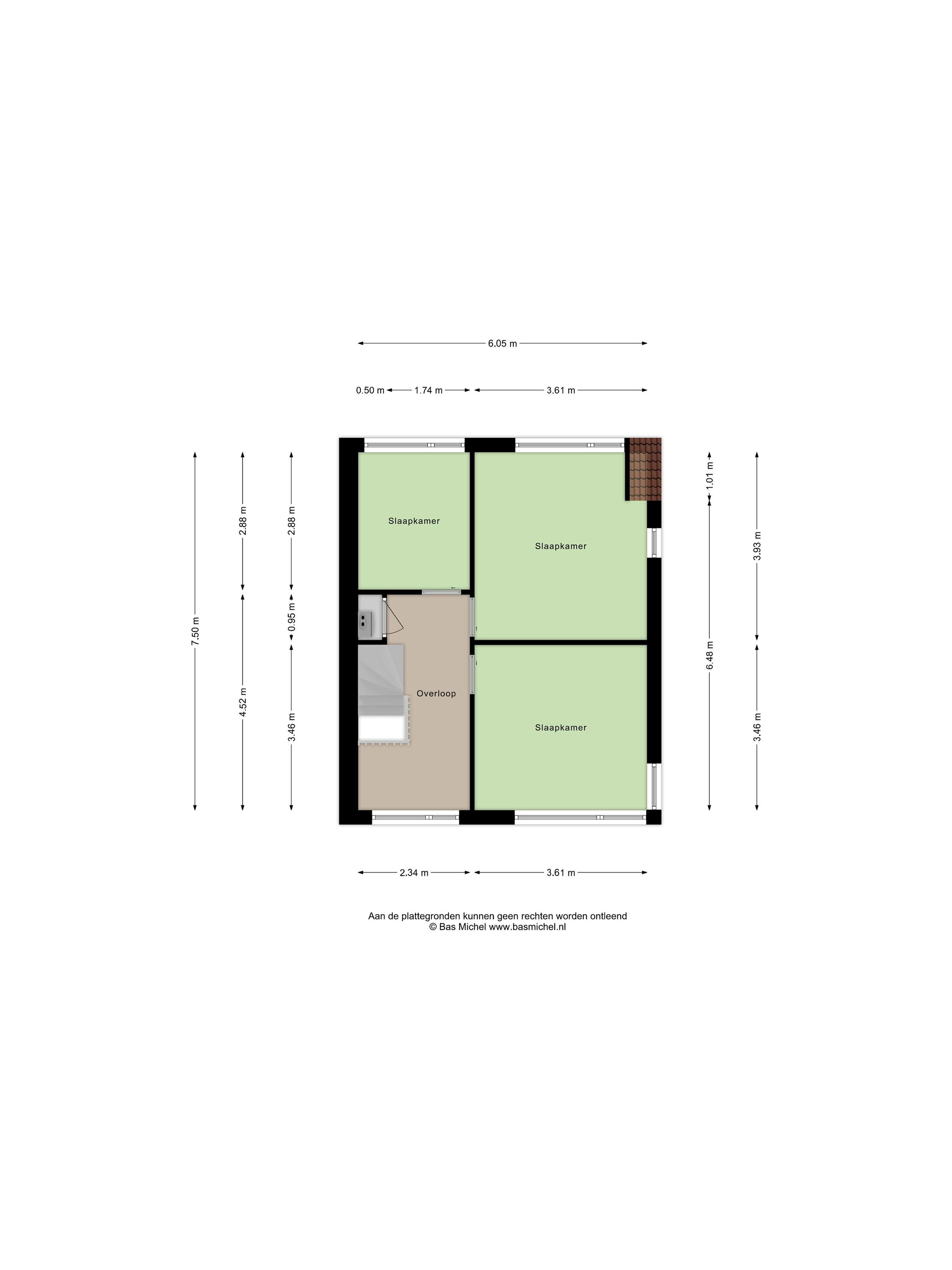 Slaapkamer 3 (ca. 8 m2) is gelegen aan de achterzijde van de woning en beschikt over een deel van de dakkapel aan de achterzijde van de woning.