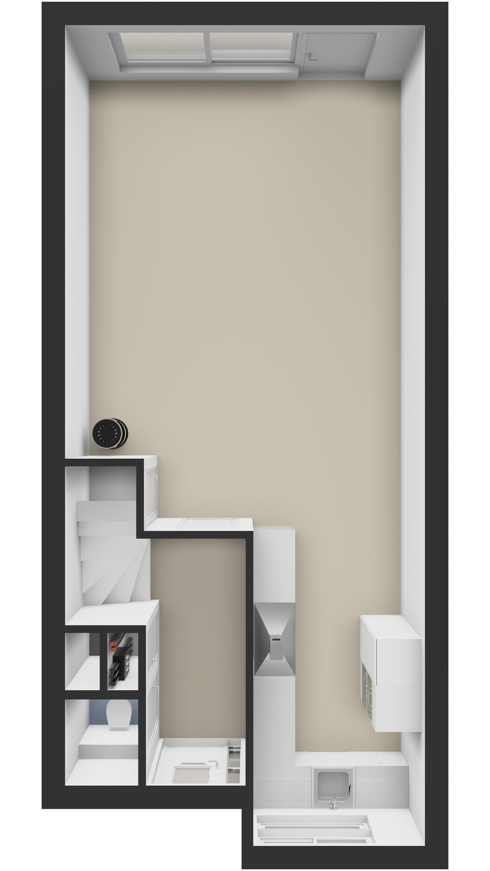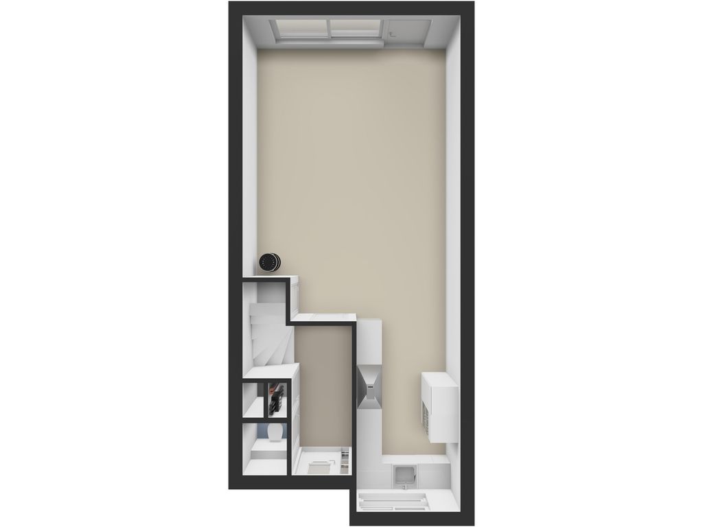 In deze kamer is tevens een aparte afgesloten kast aanwezig met de aansluitingen voor de wasmachine, droger en de cv-installatie, wat zorgt voor een nette en praktische indeling.