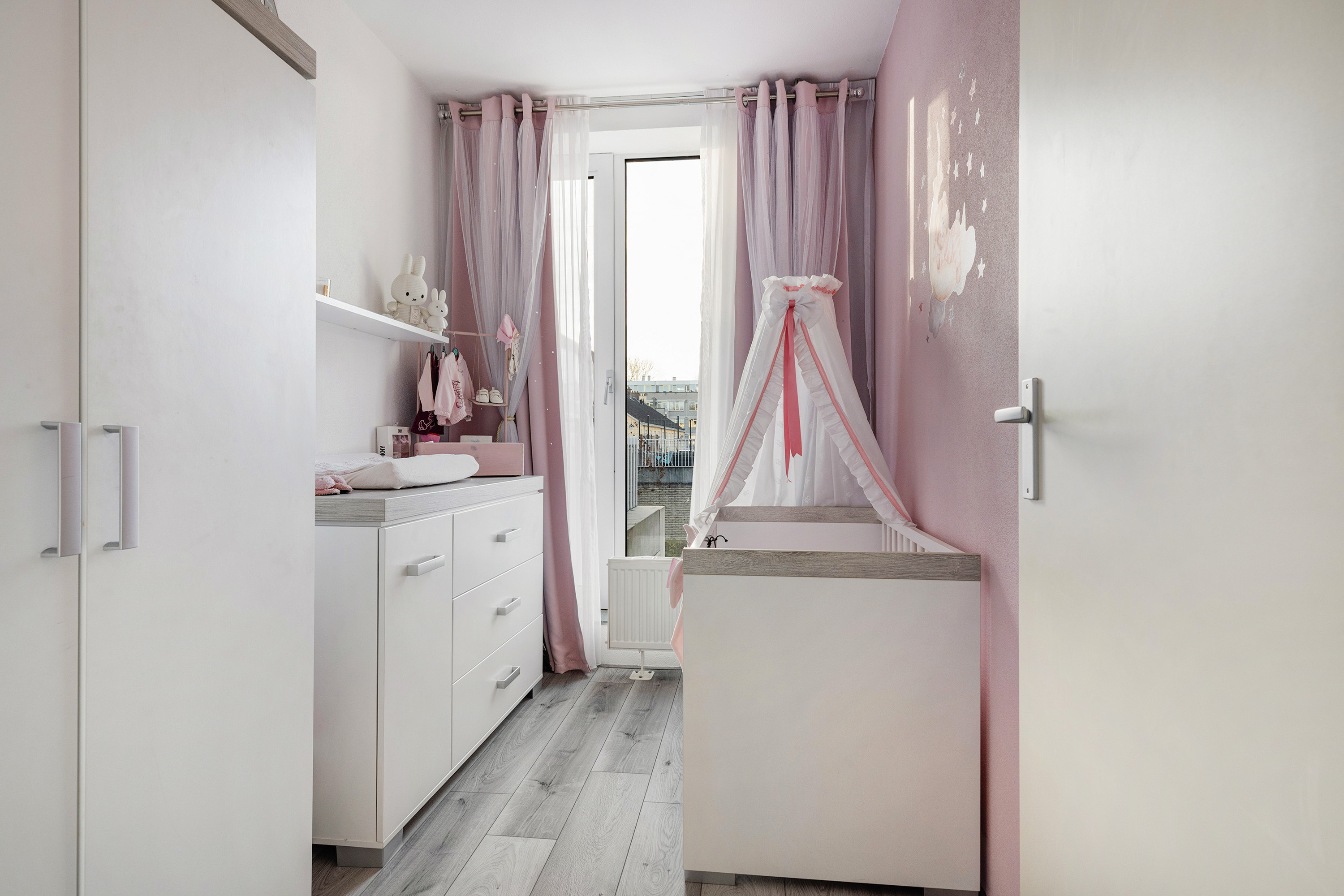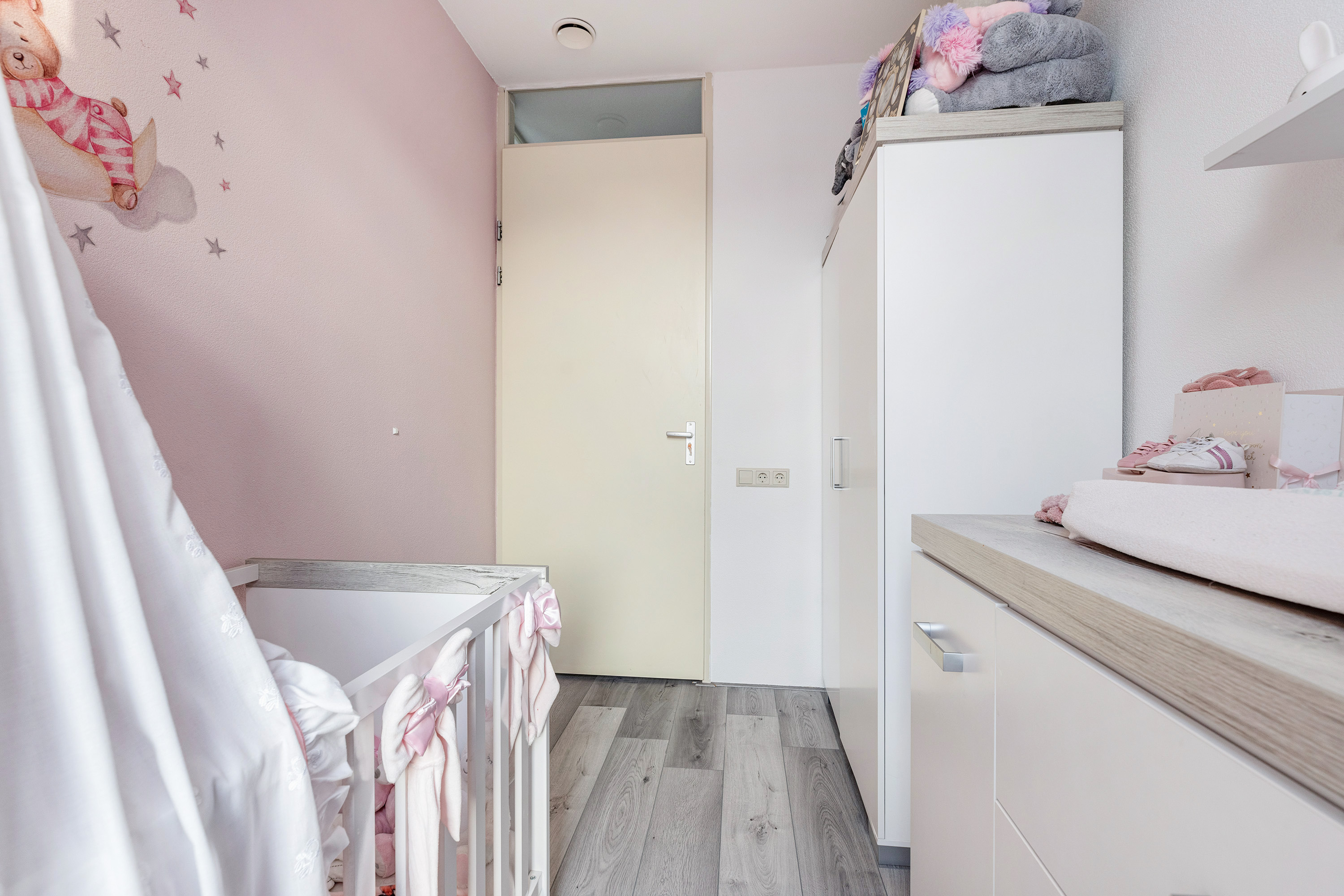 Slaapkamer 2 en 3 liggen aan de achterzijde en beschikken eveneens over een Frans balkon. Alle kamers zijn keurig afgewerkt met een laminaatvloer.